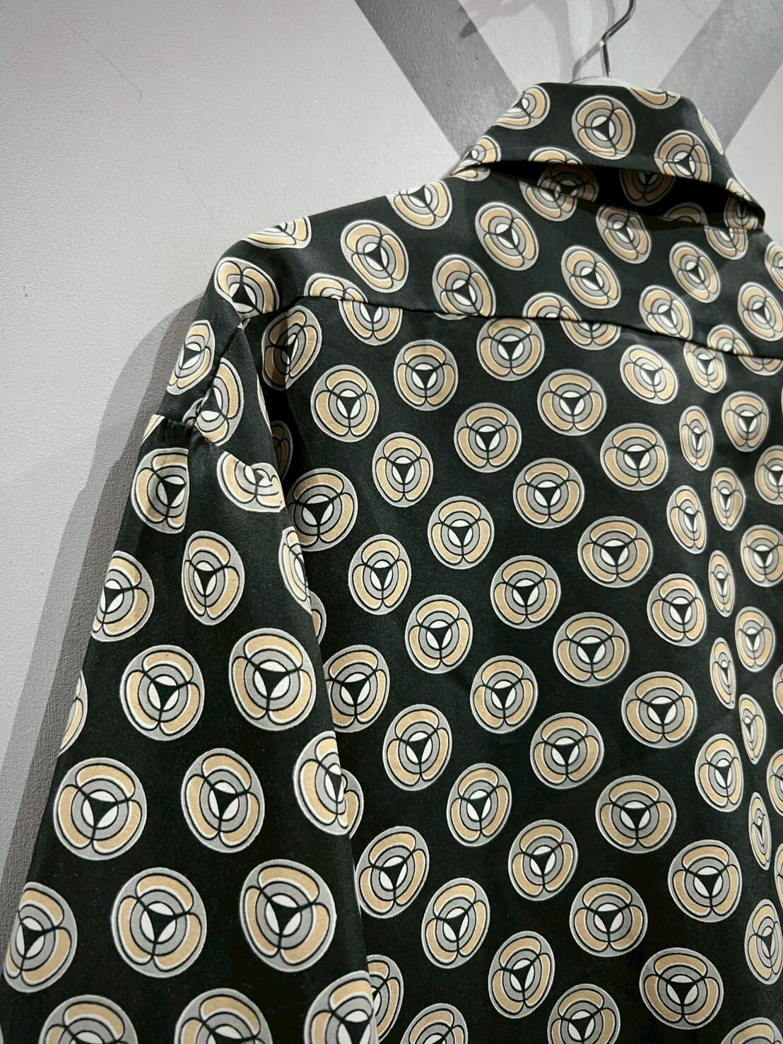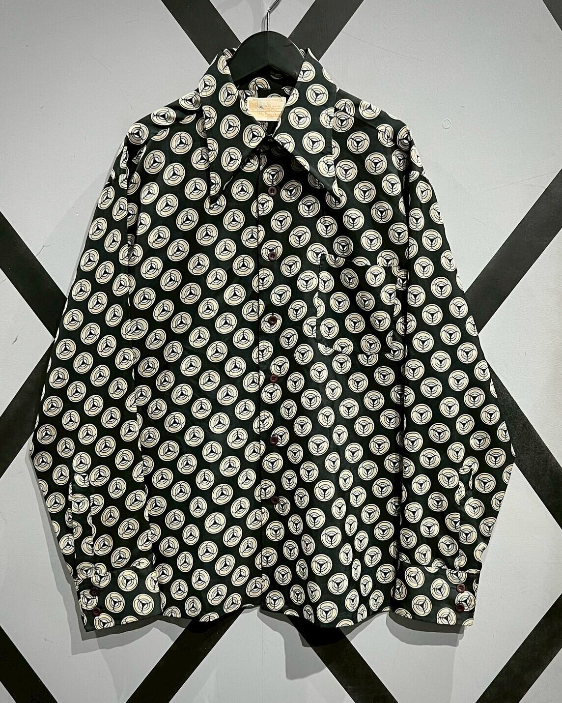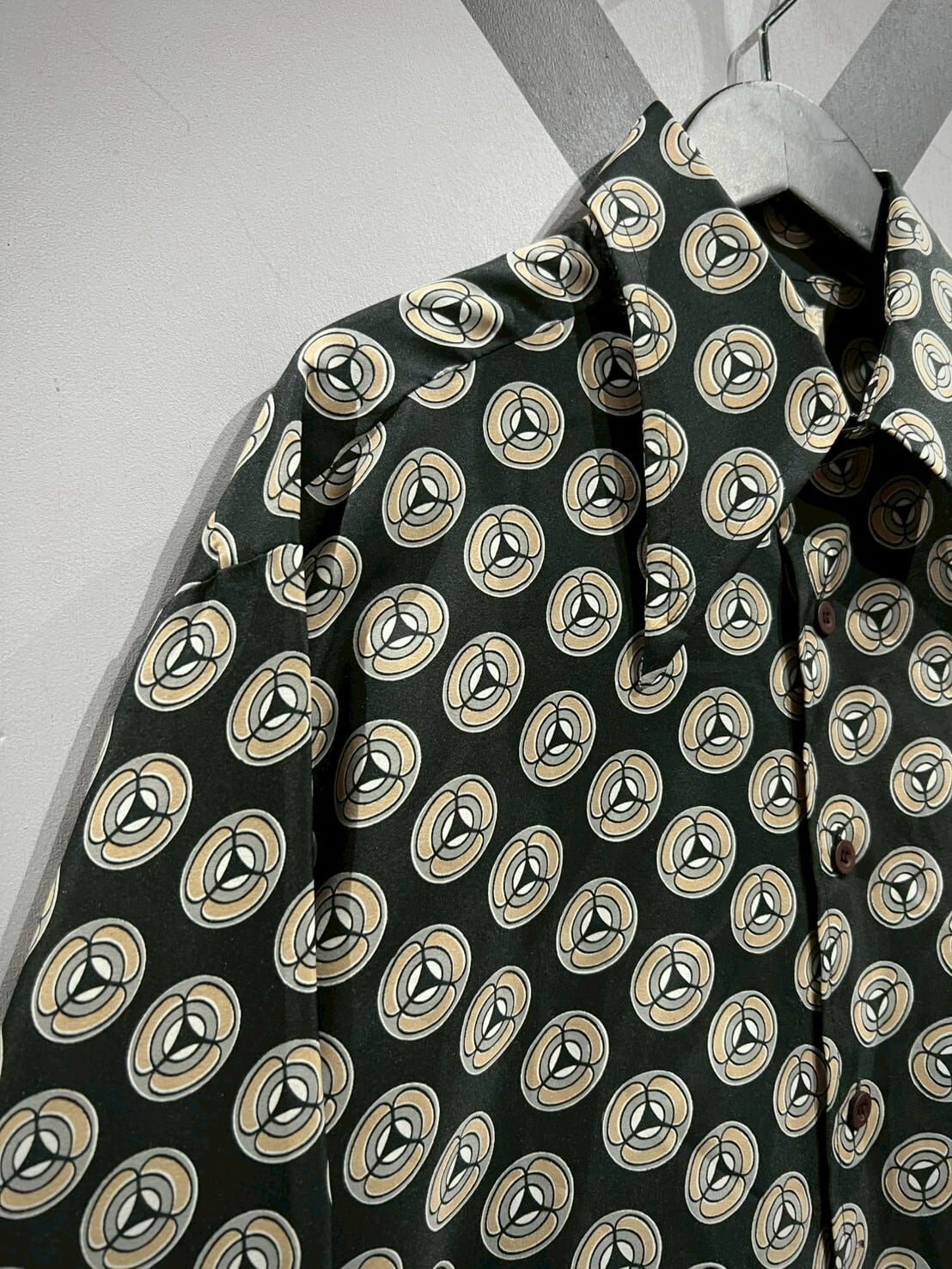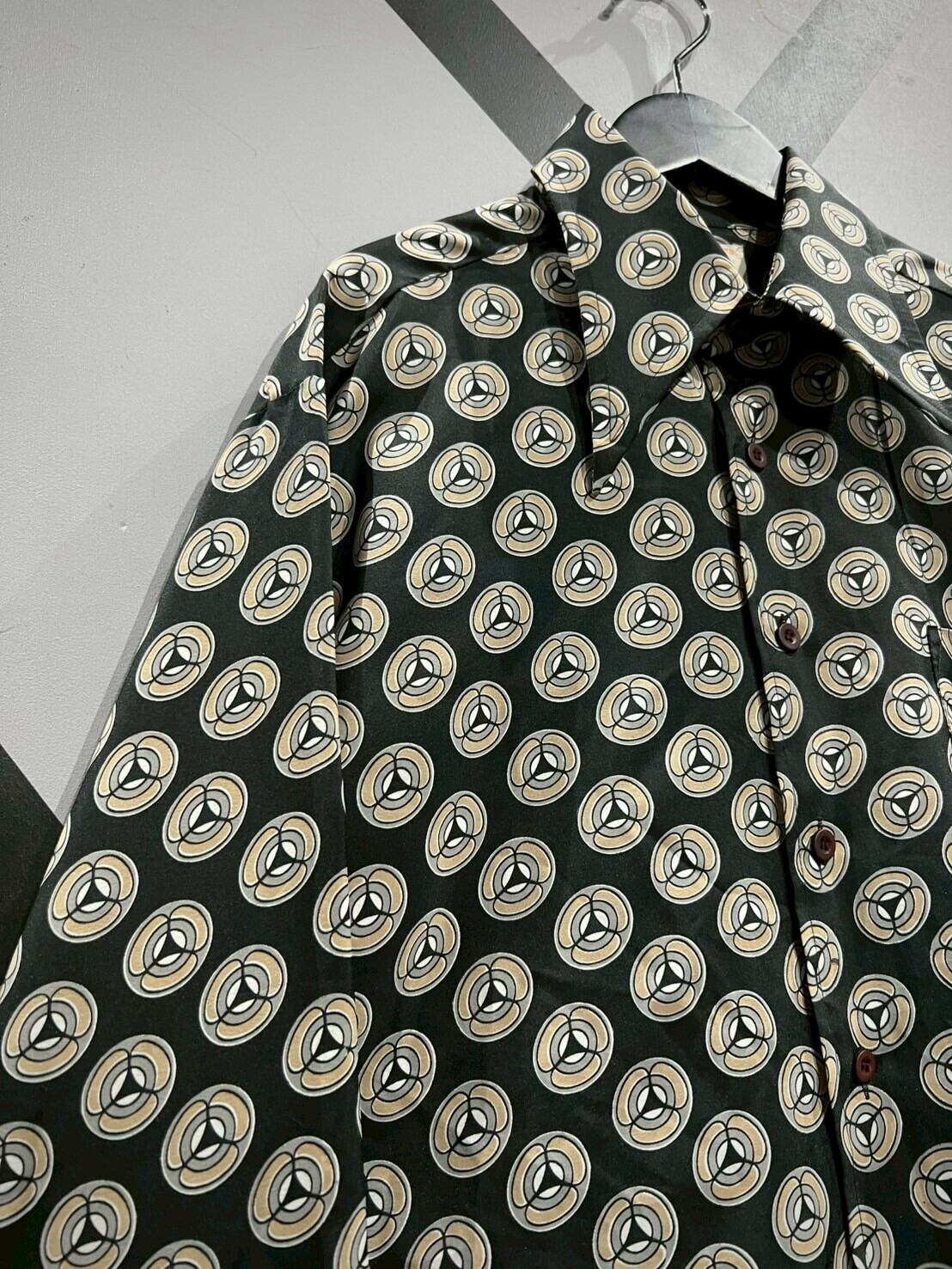 軽やかなポリエステルのボディに、円状のグラフィックを載せた70's ヴィンテージの長袖シャツ。