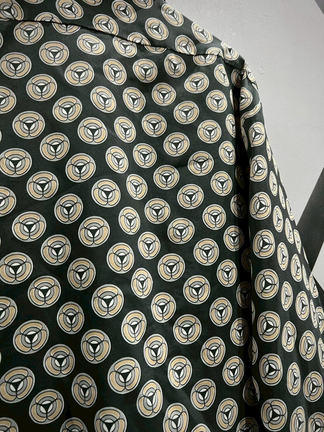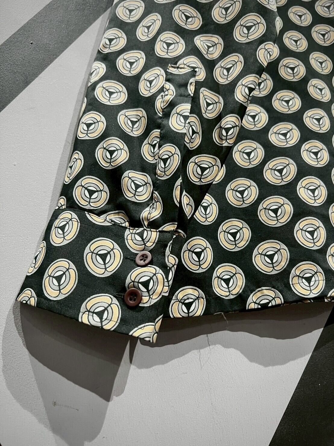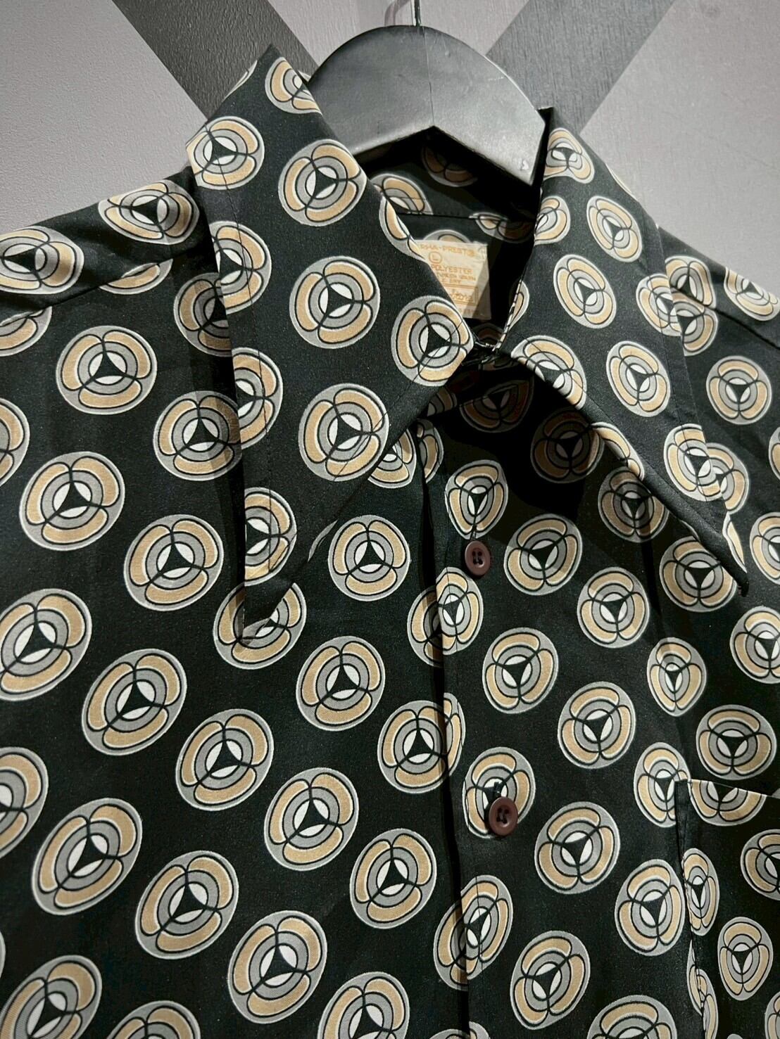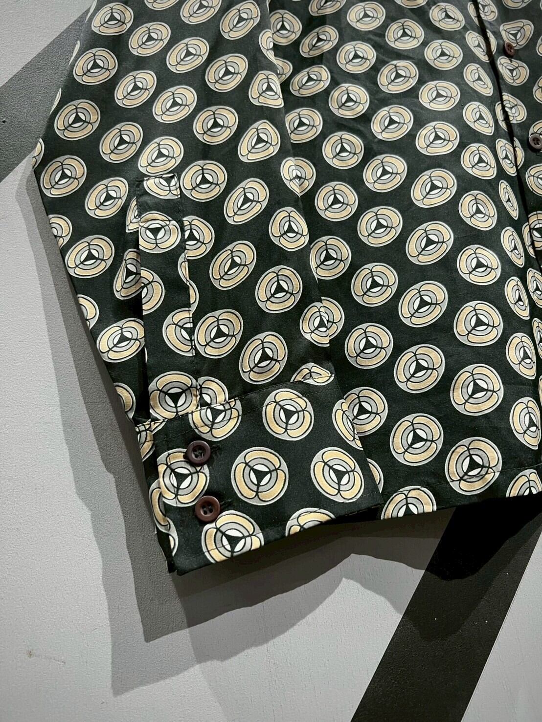 軽やかなポリエステルのボディに、円状のグラフィックを載せた70's ヴィンテージの長袖シャツ。
