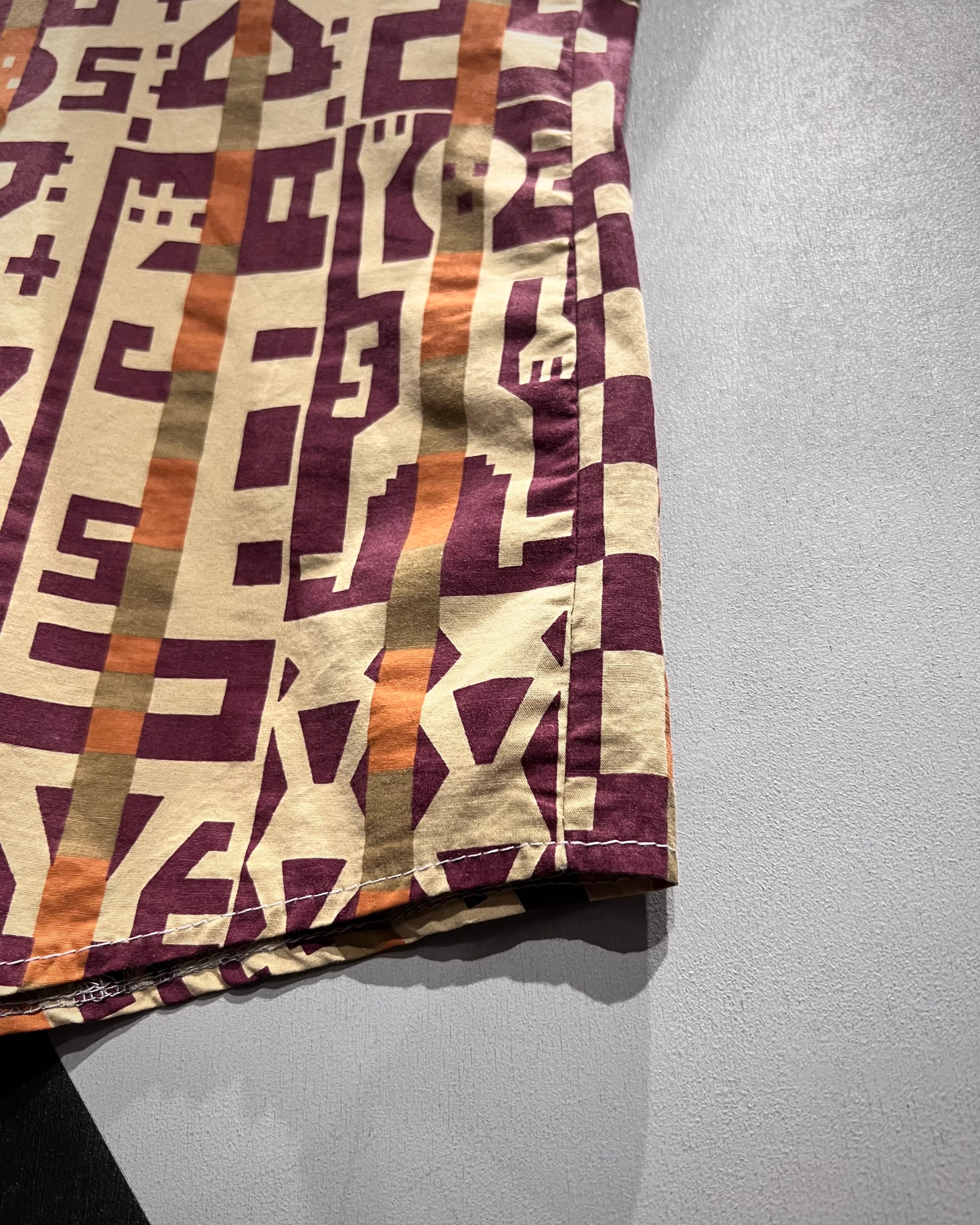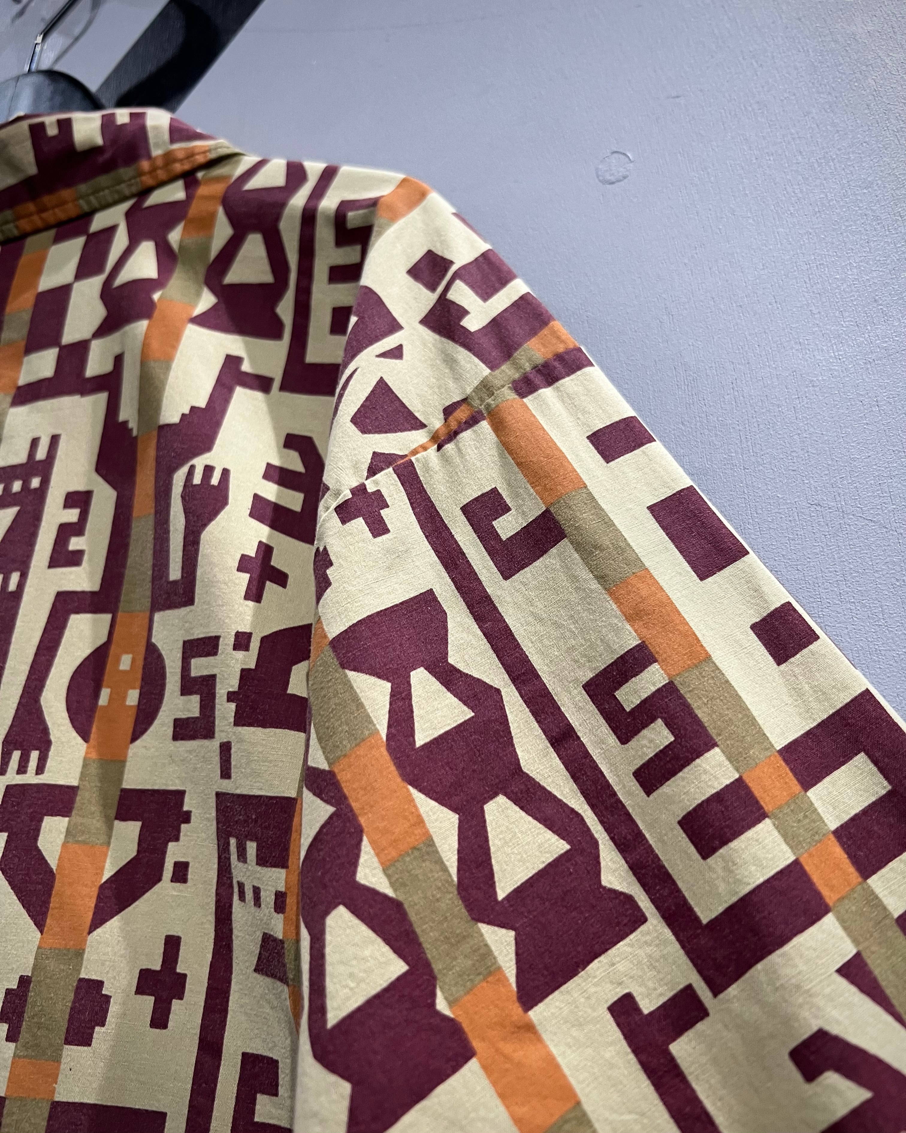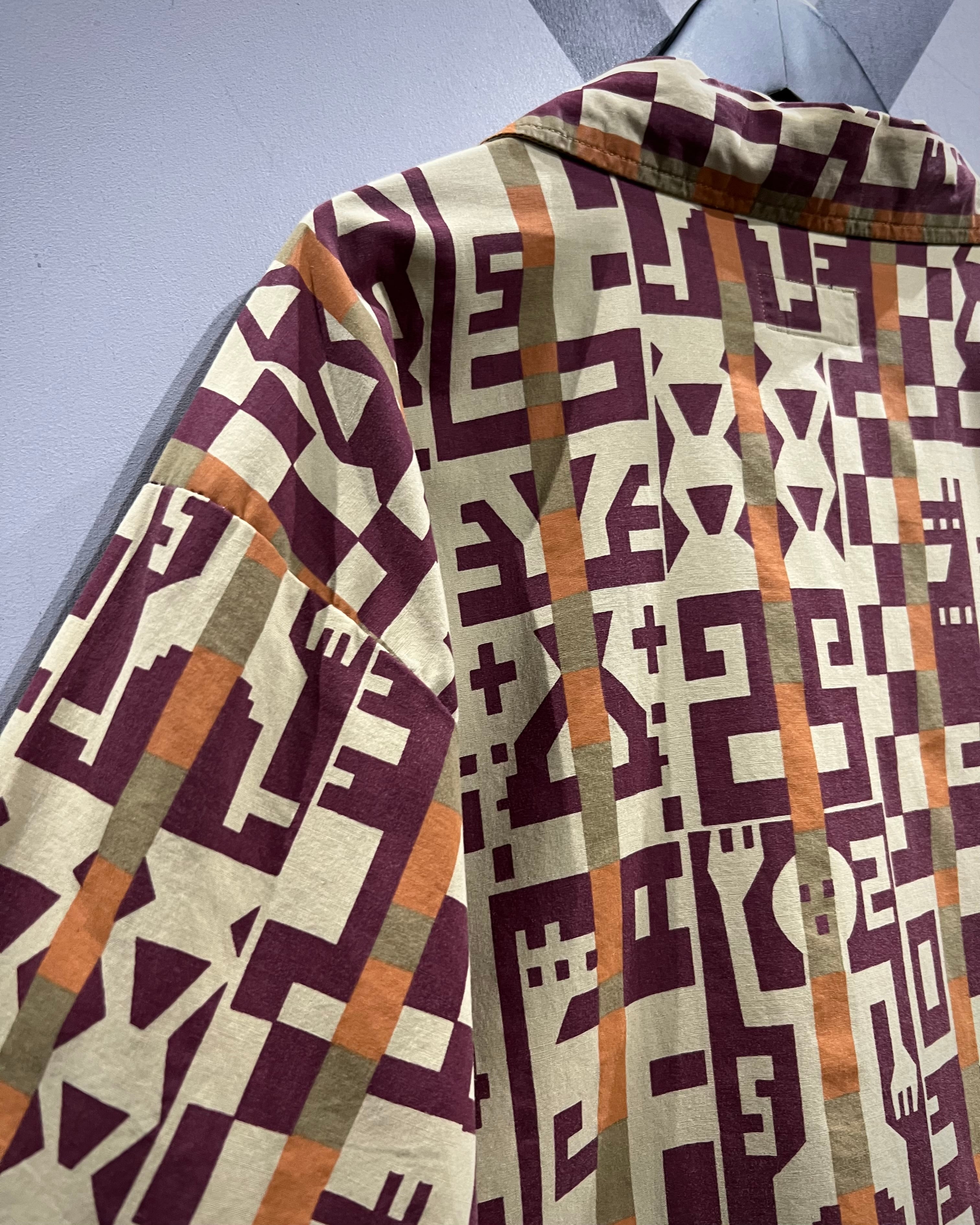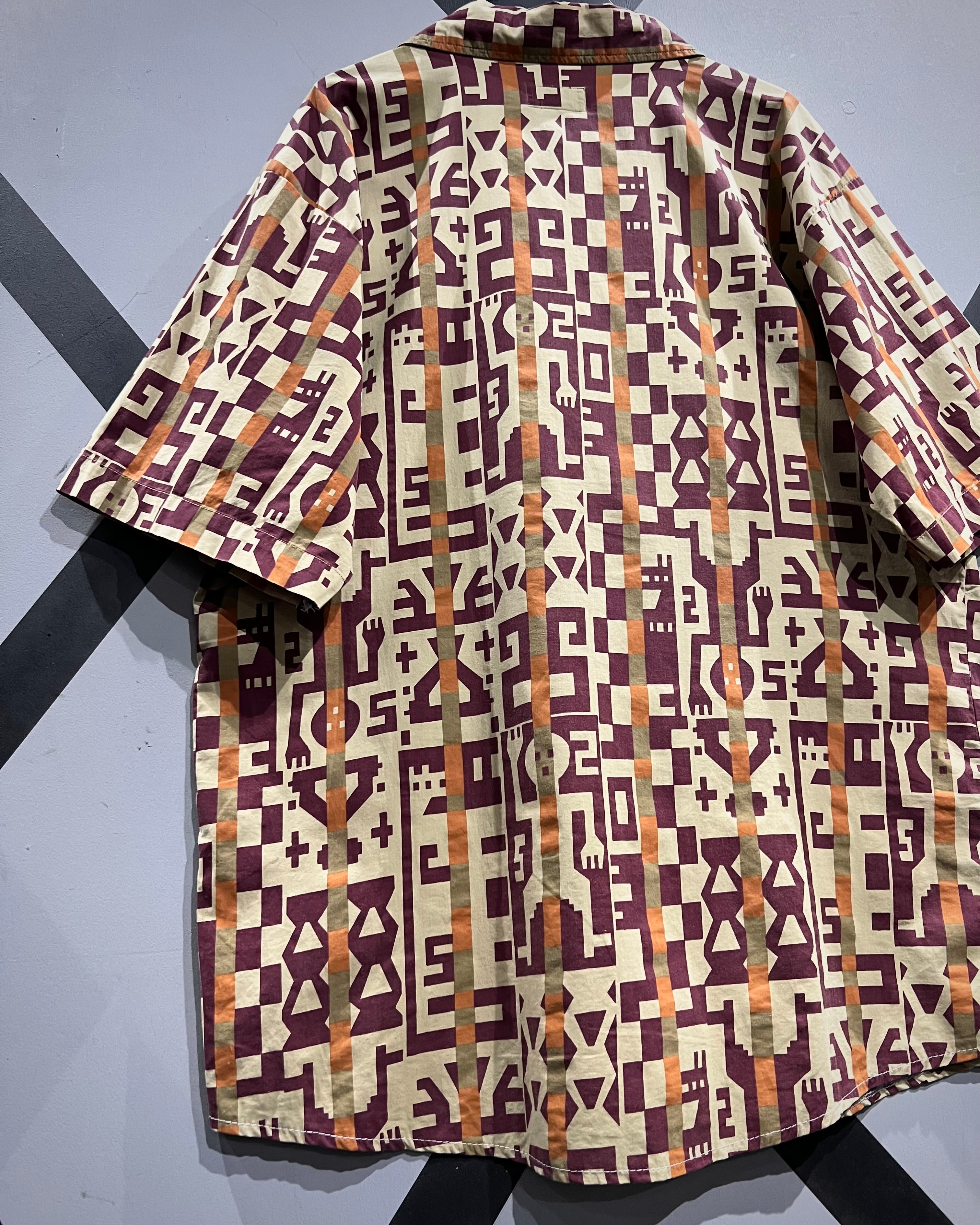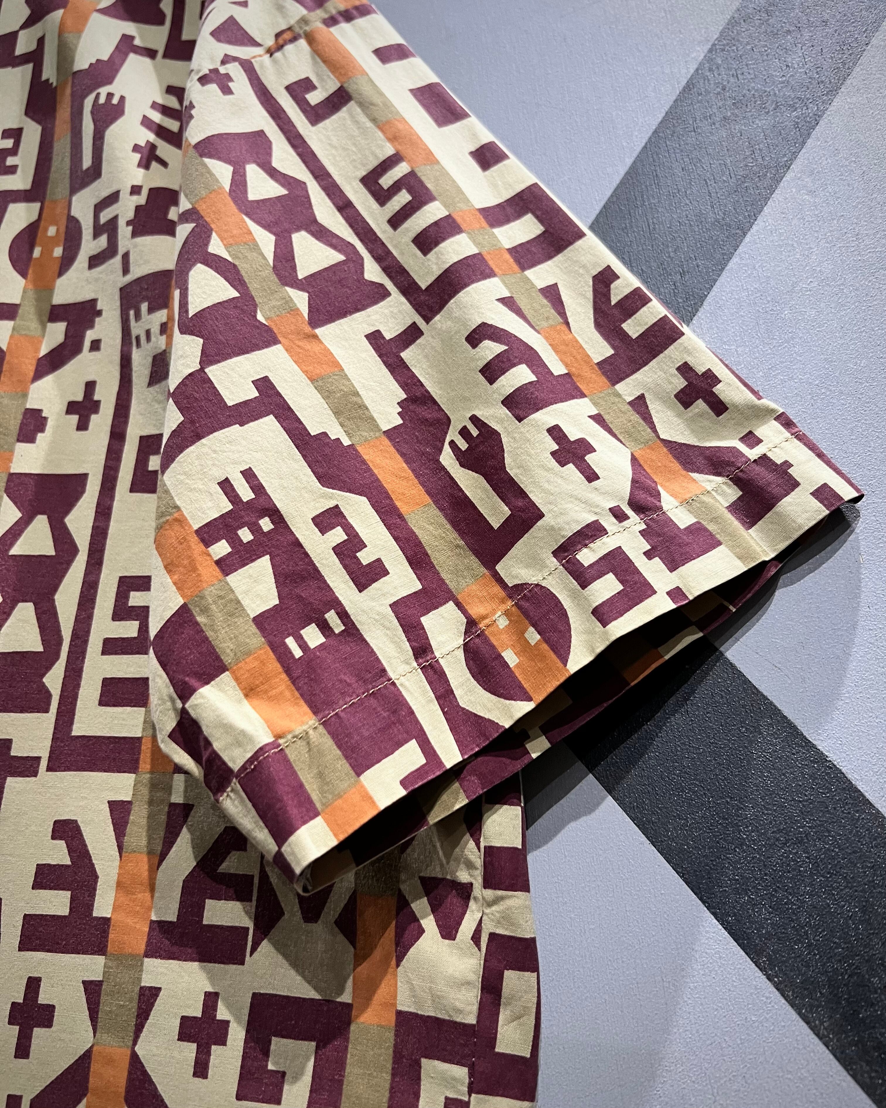 エスニックなモチーフをボディ全体に載せた、アイコニックかつ唯一無二の雰囲気を漂わせる半袖オープンカラーシャツ。