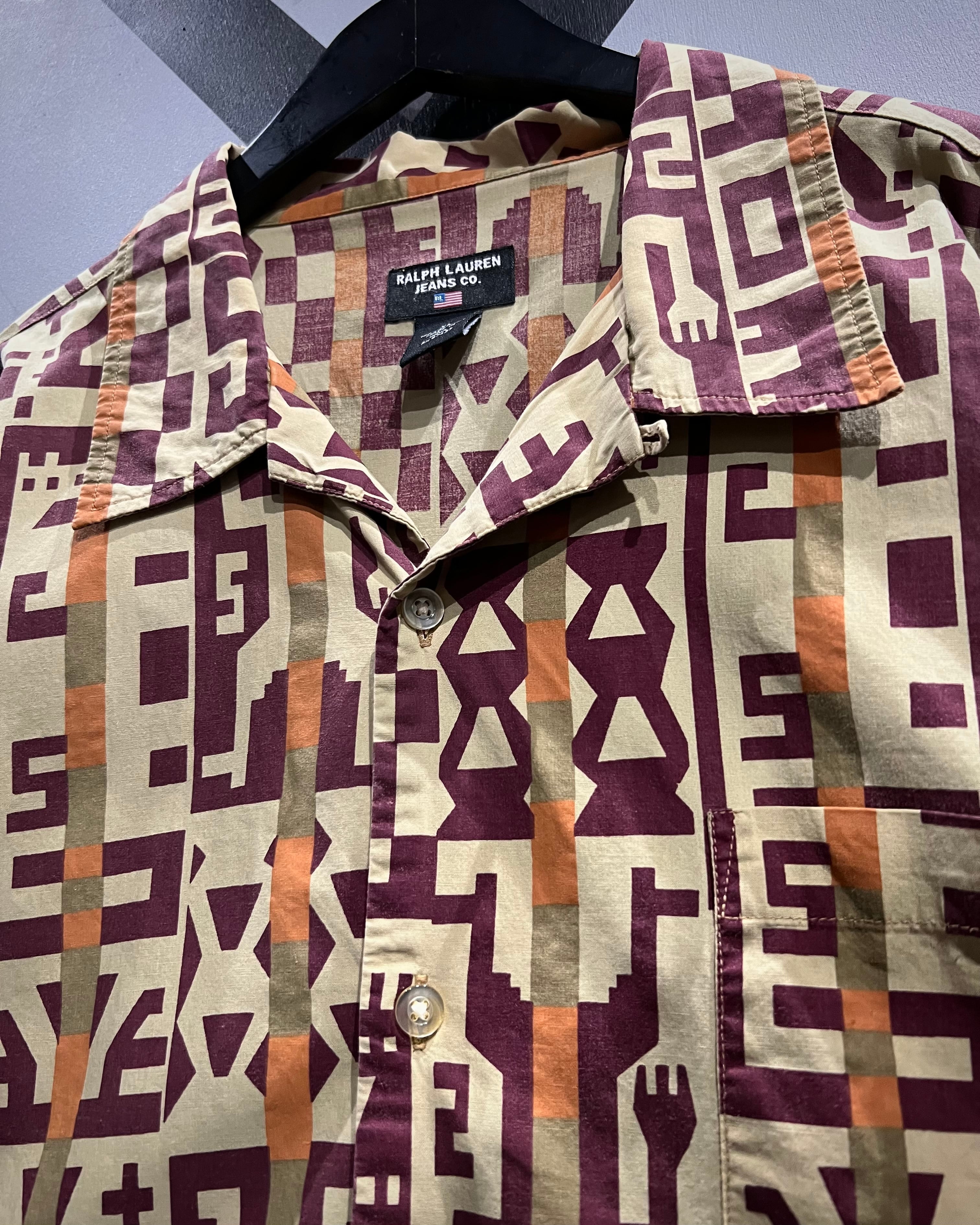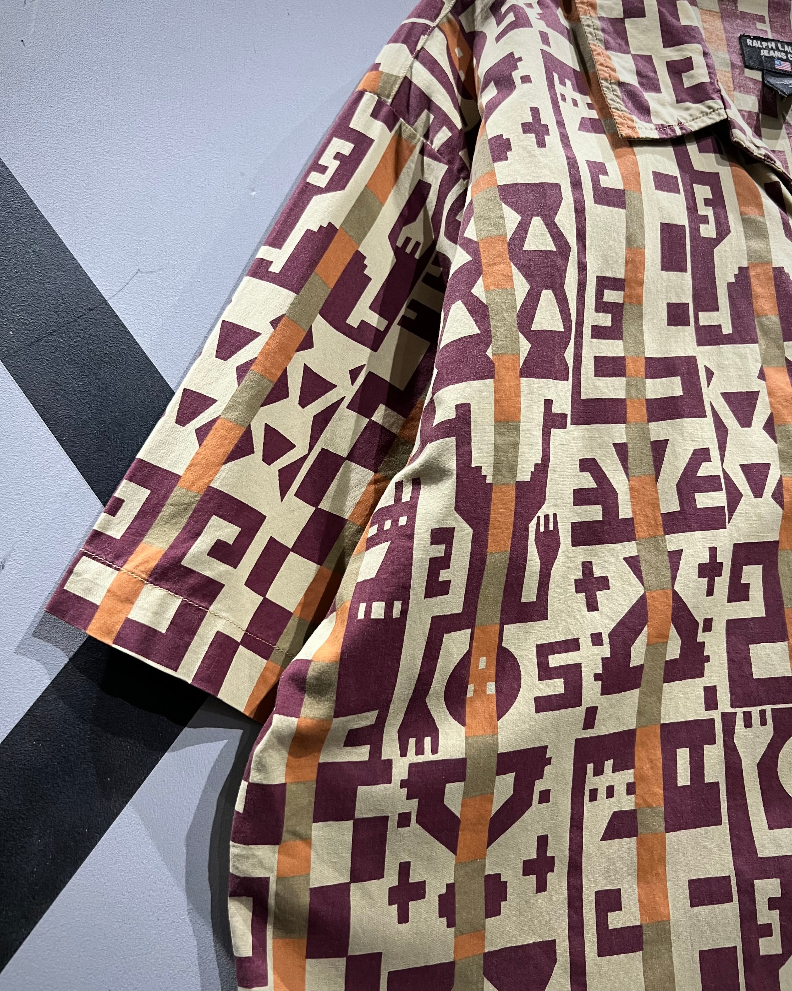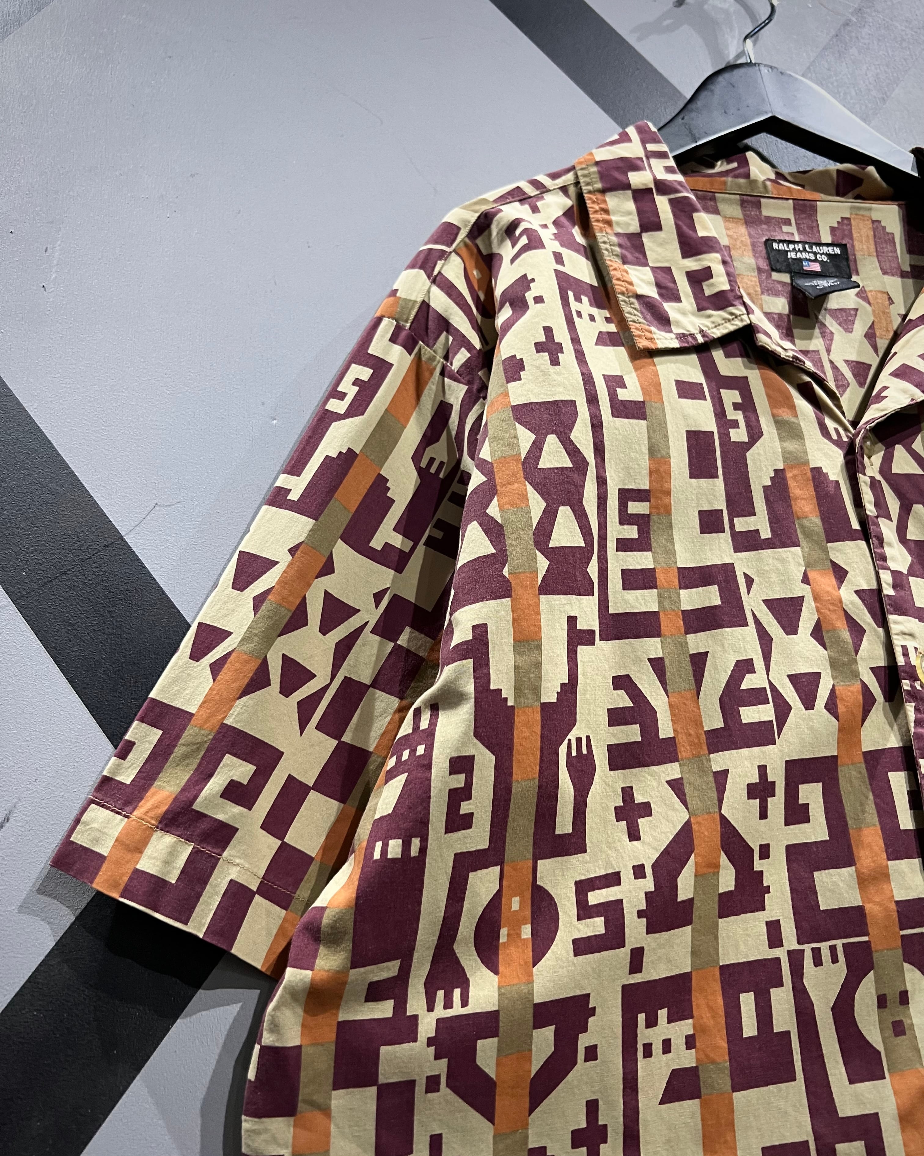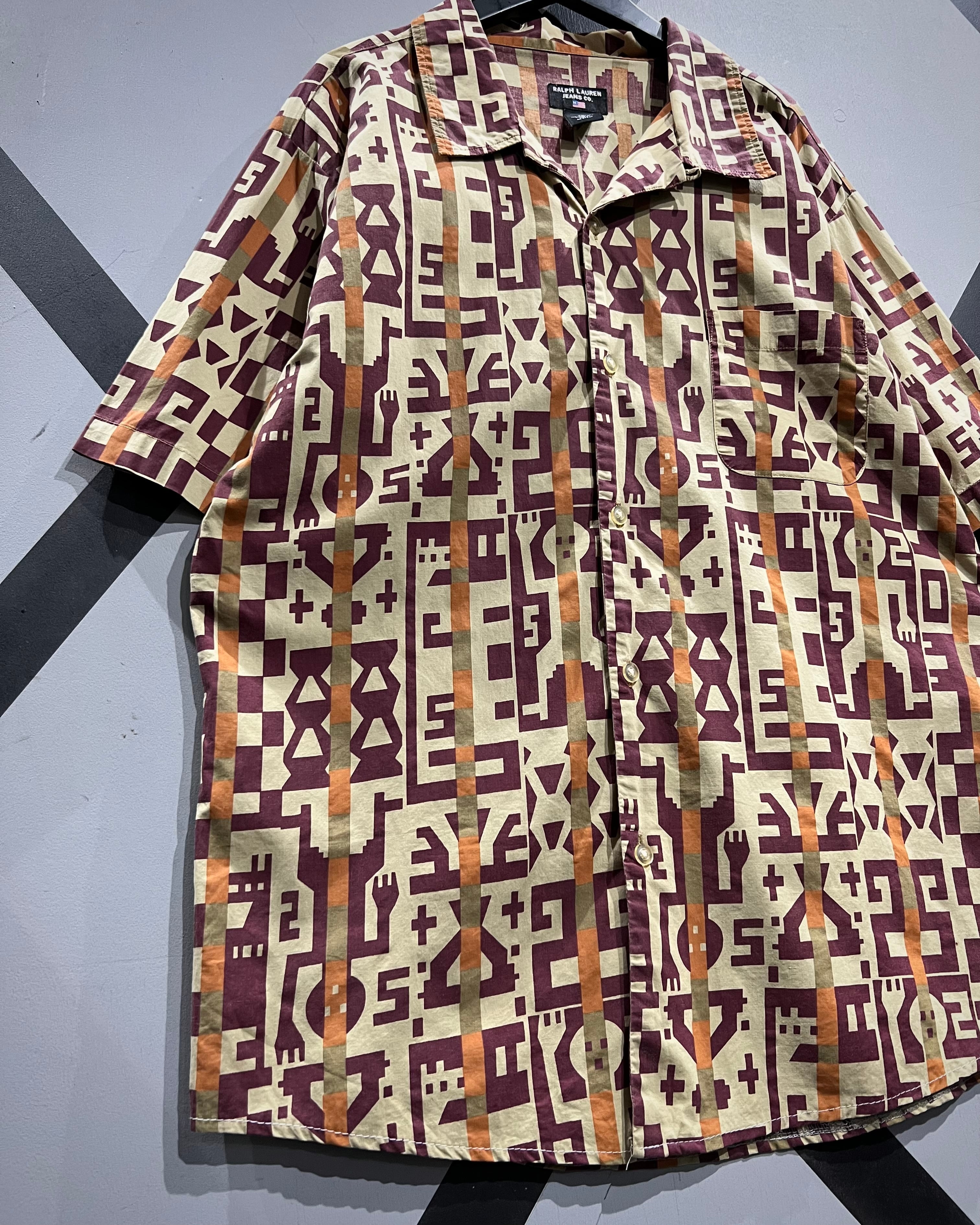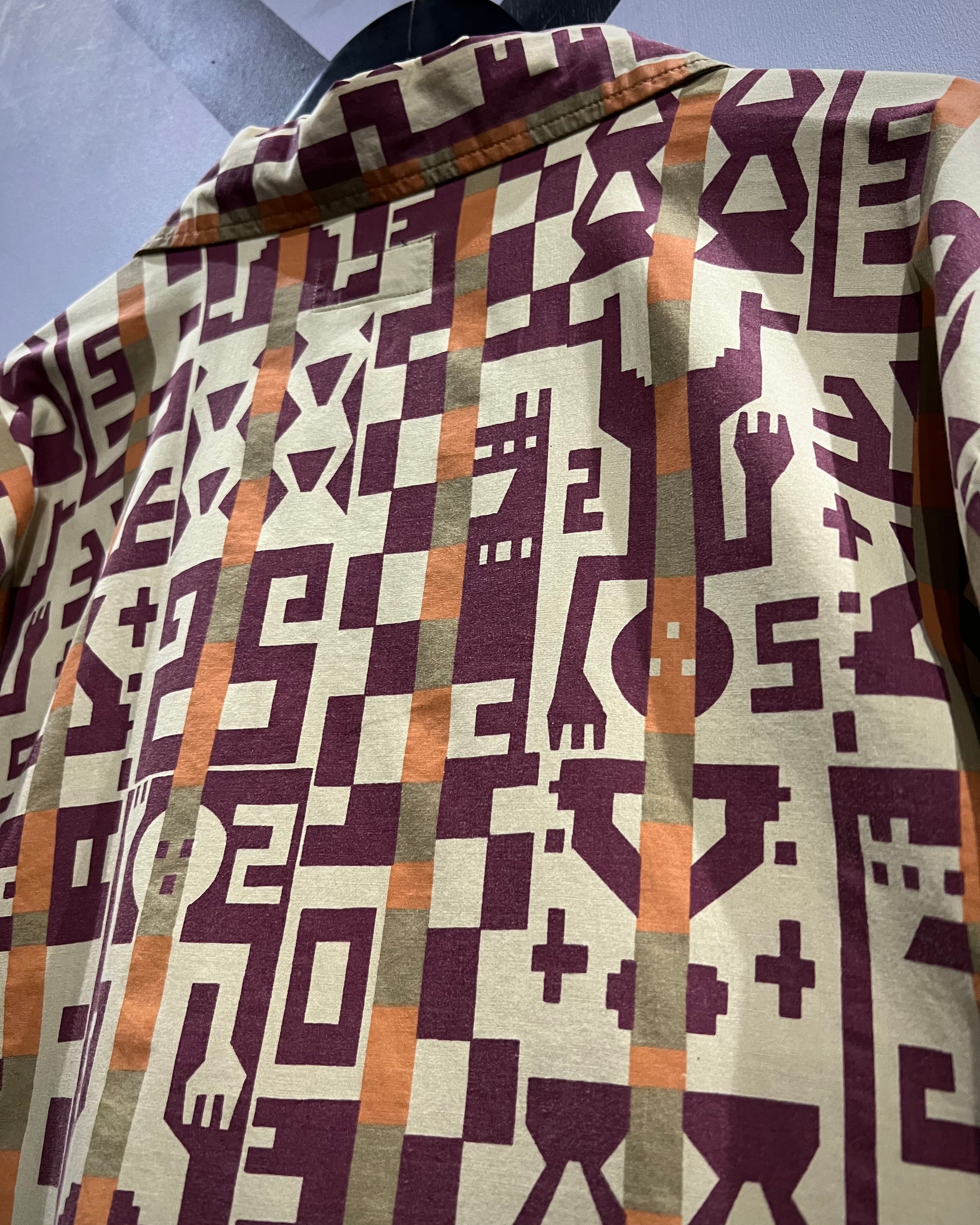 エスニックなモチーフをボディ全体に載せた、アイコニックかつ唯一無二の雰囲気を漂わせる半袖オープンカラーシャツ。