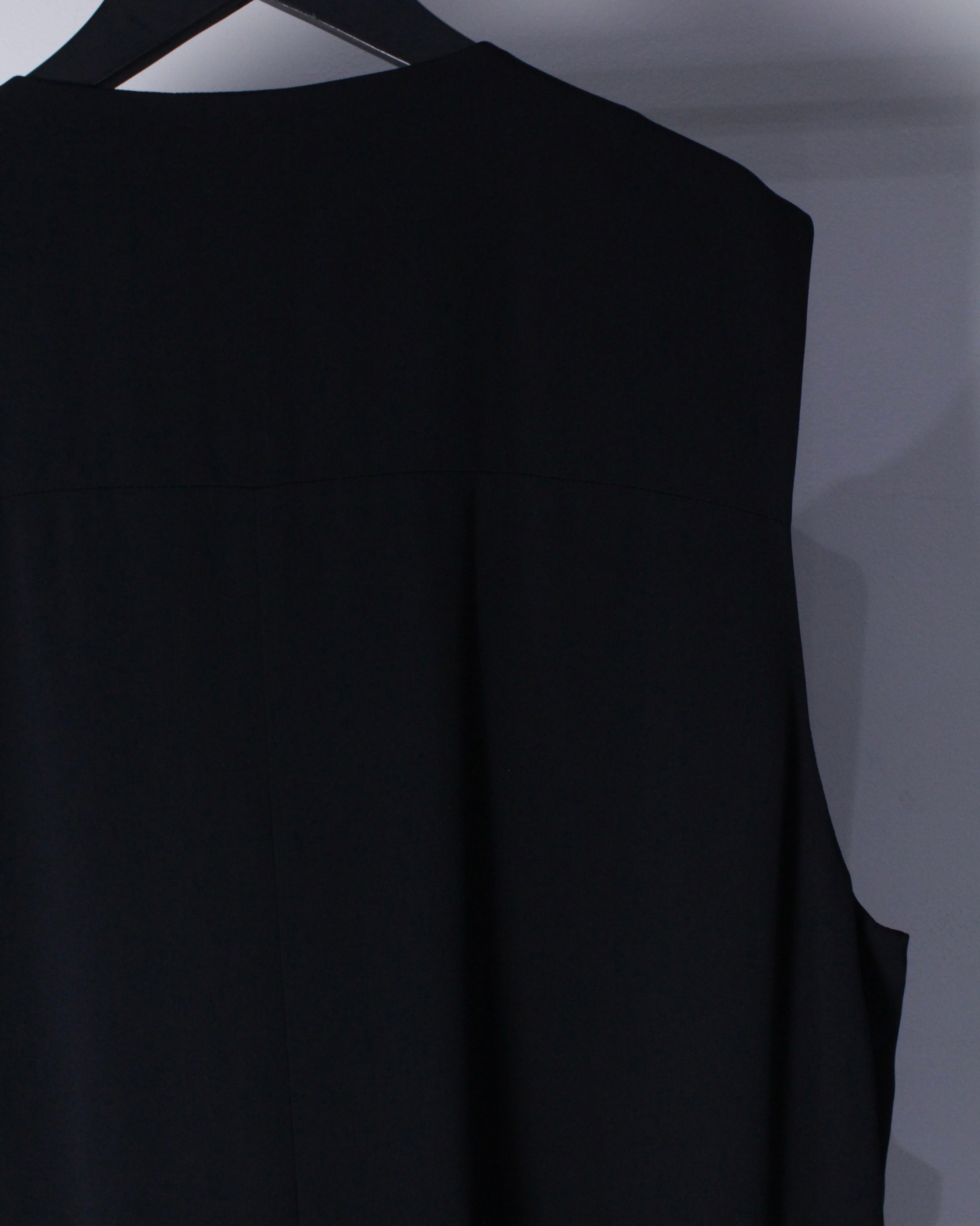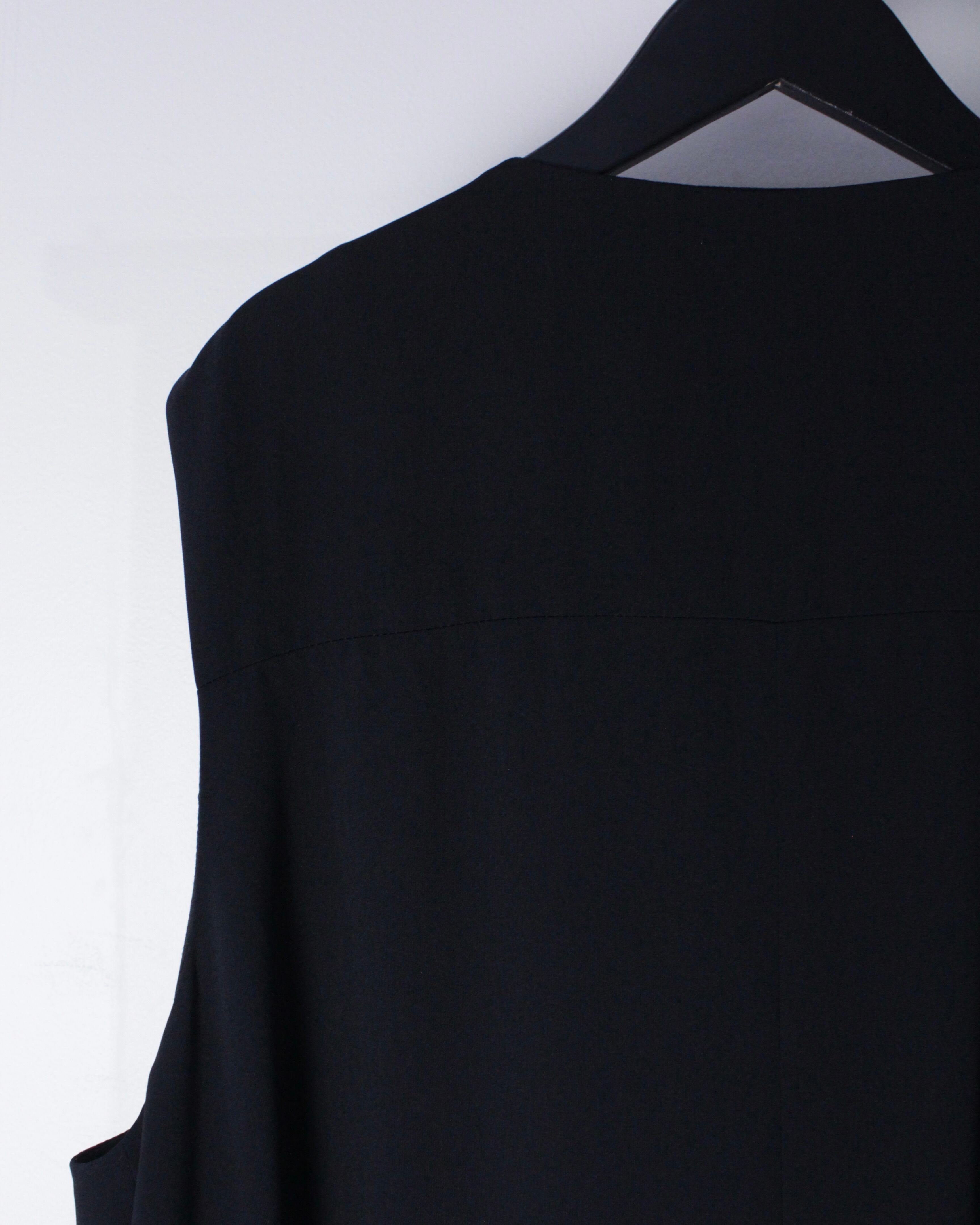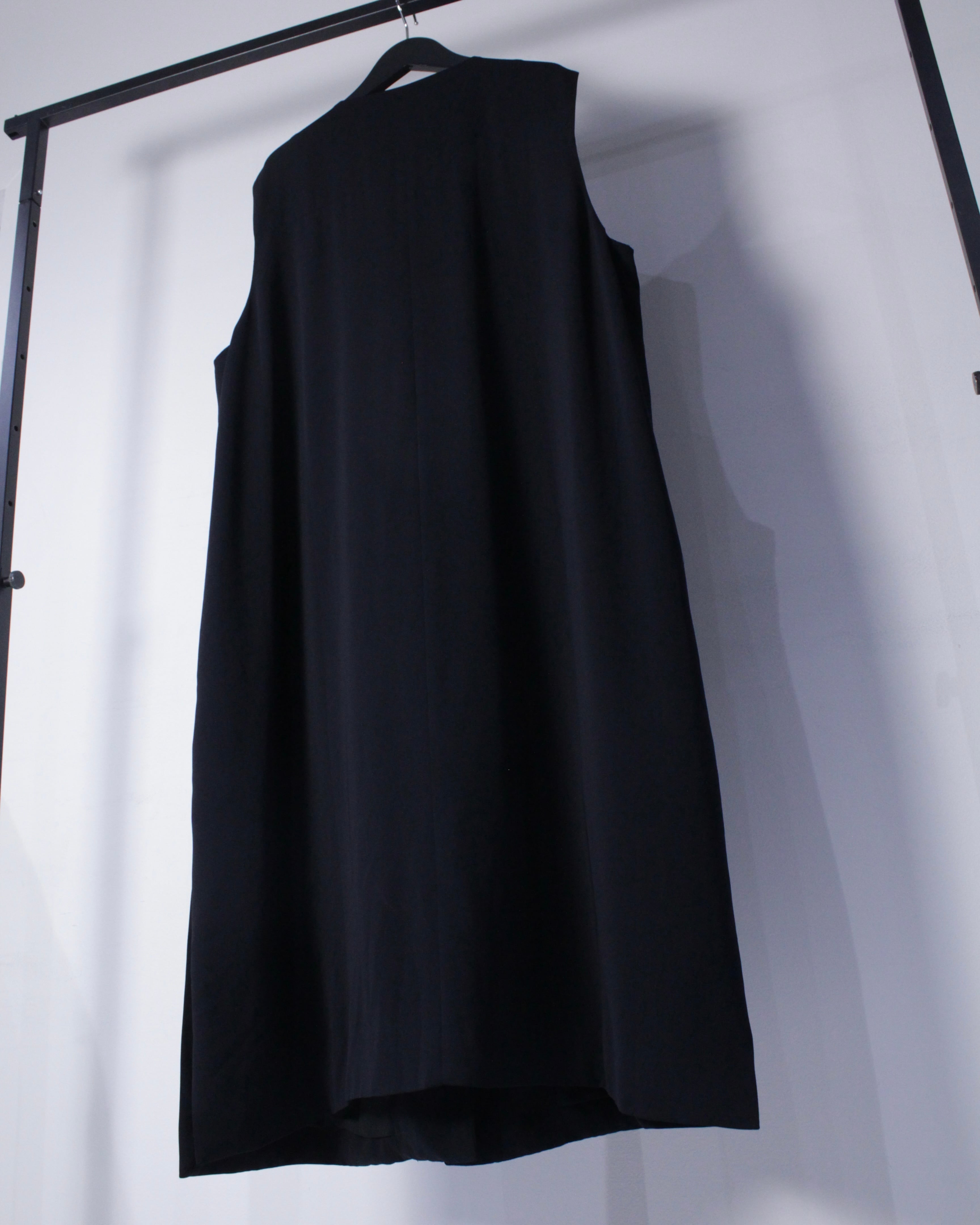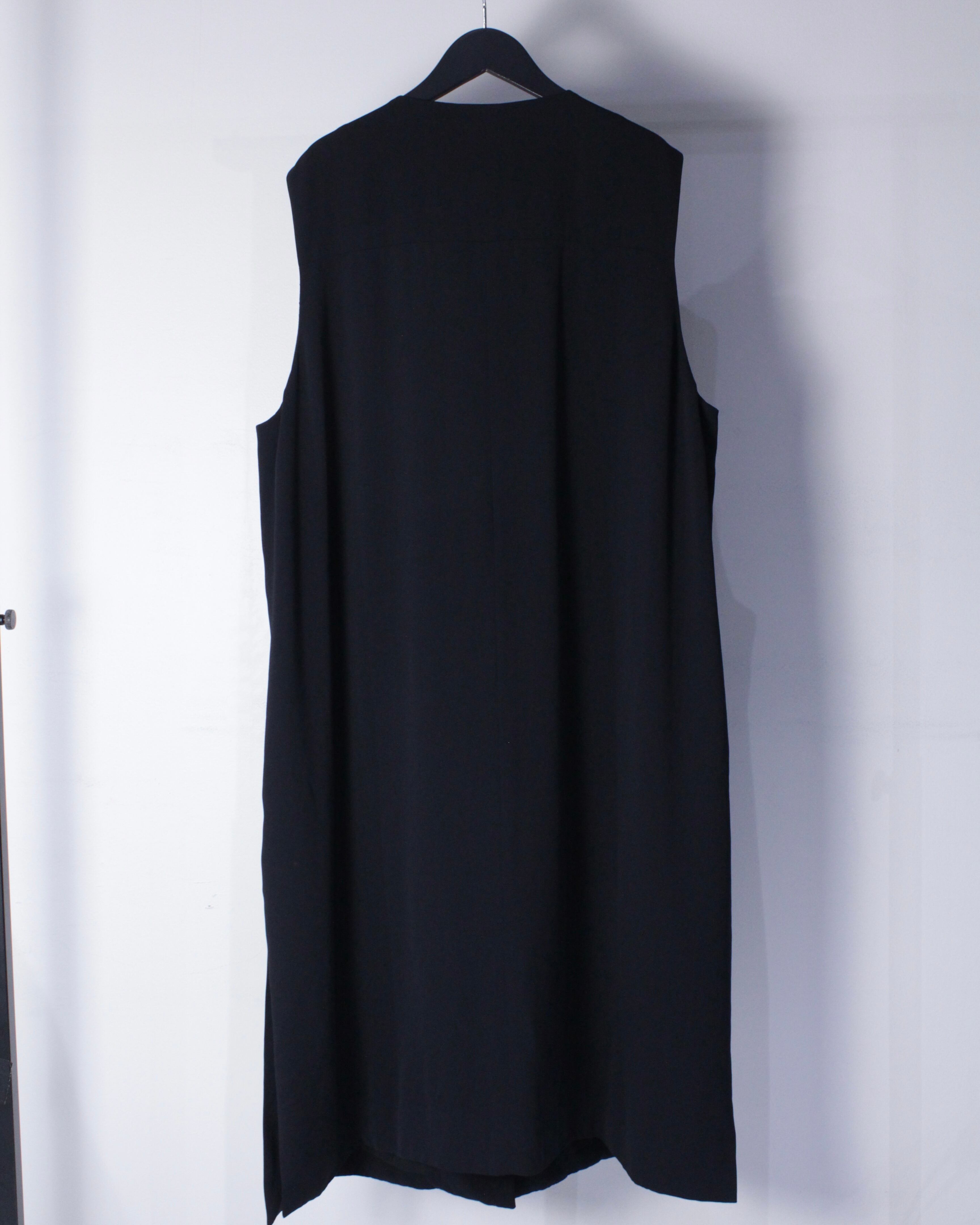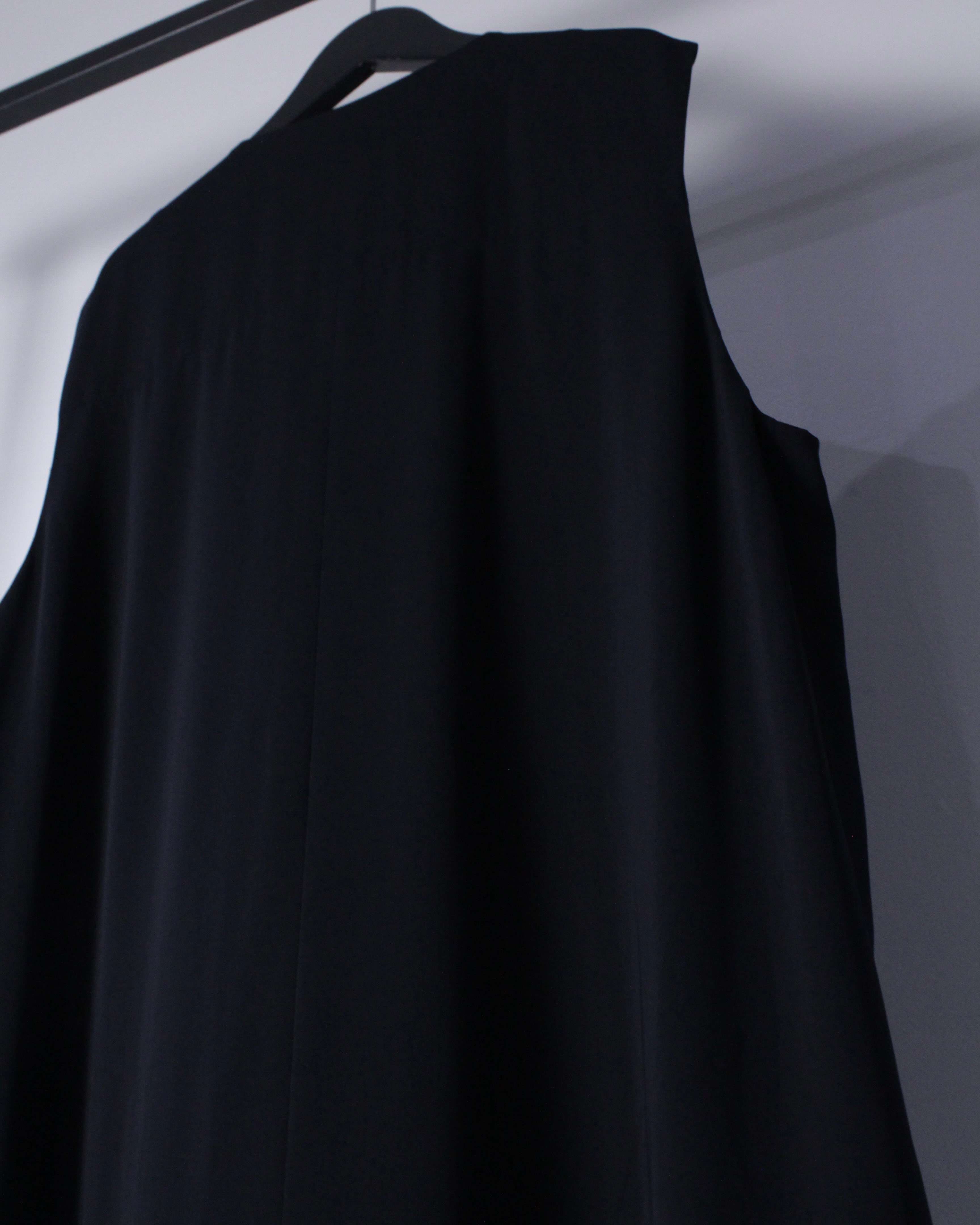 滑らかな質感の素材をボディに使用したジップアップタイプのロングベスト。