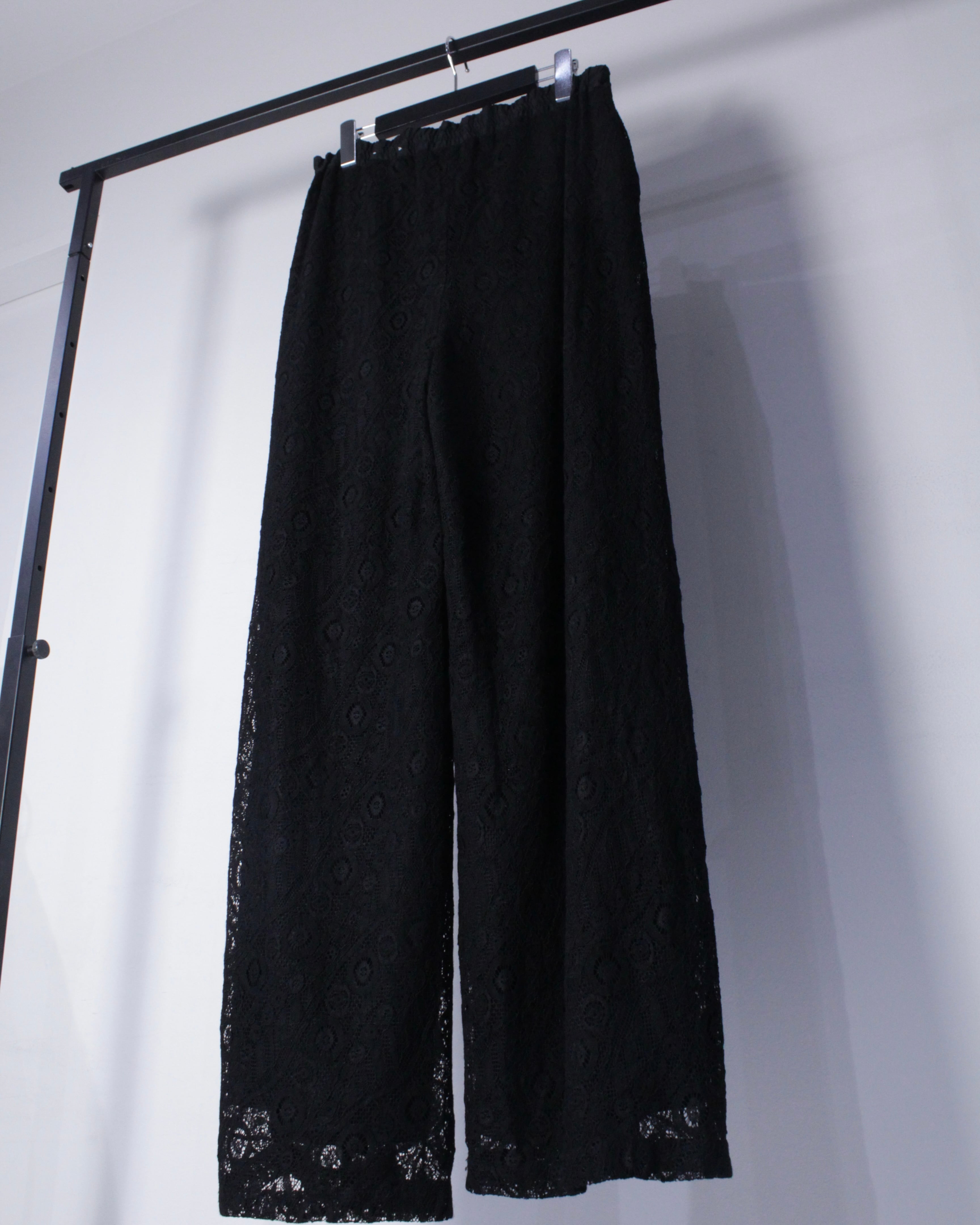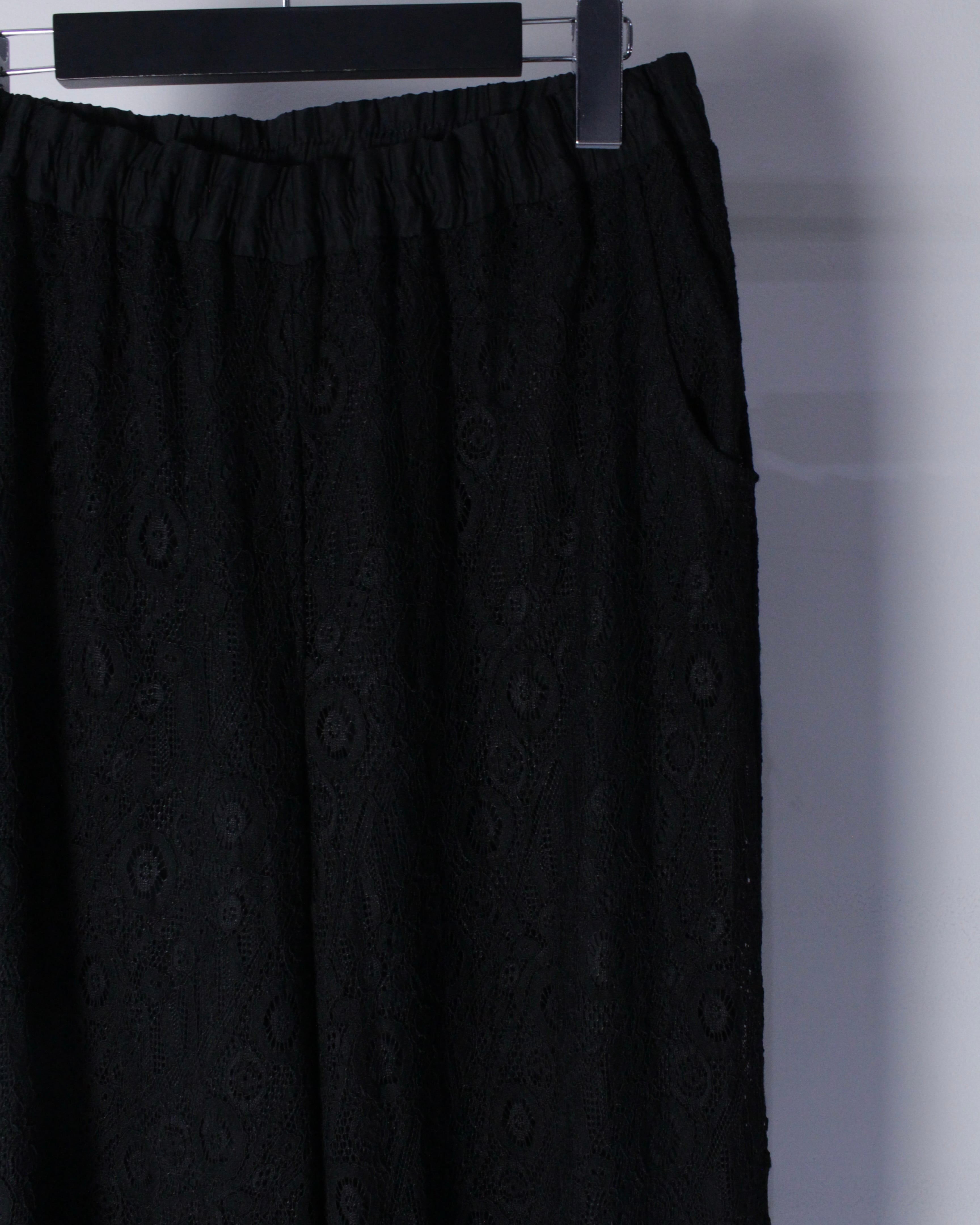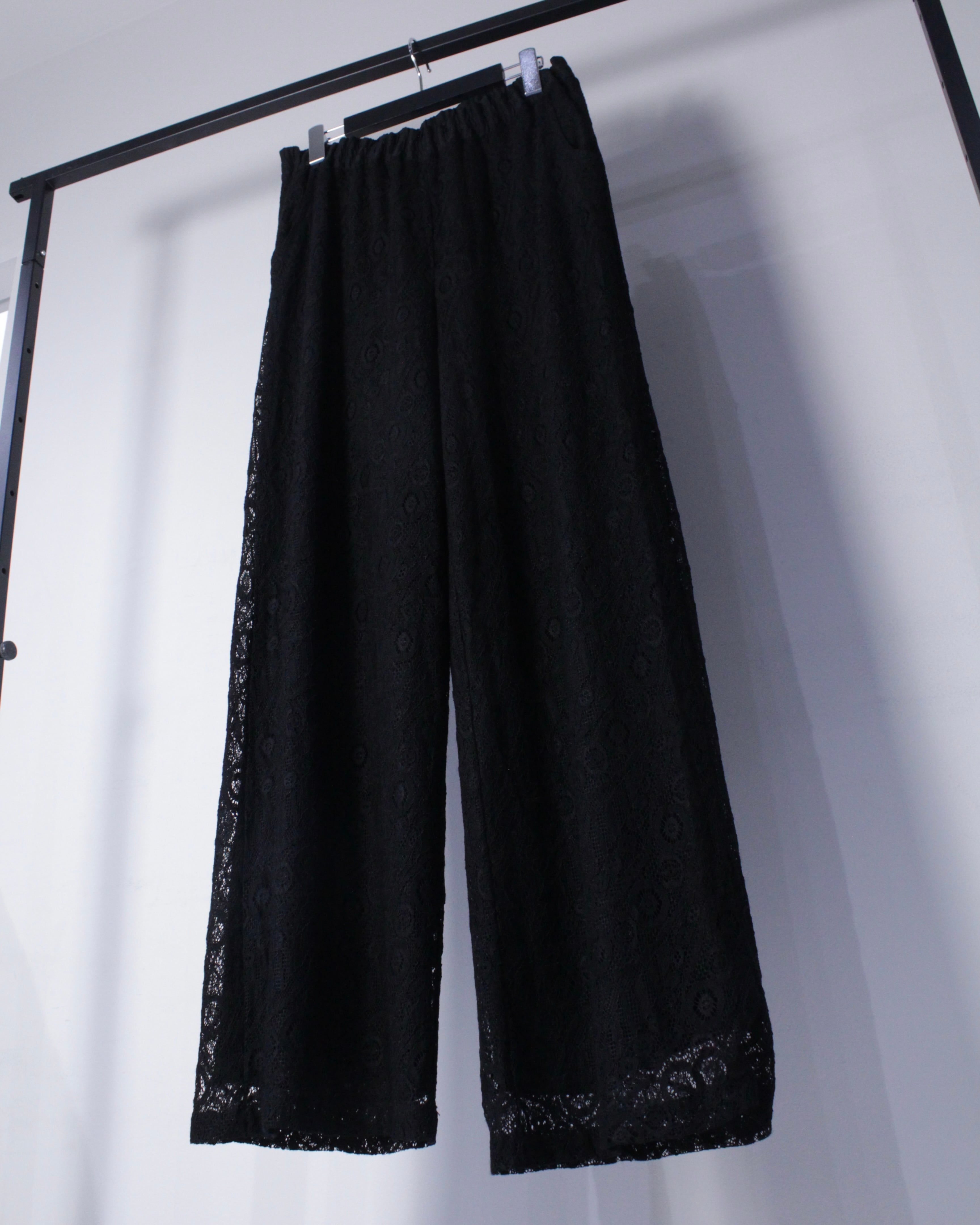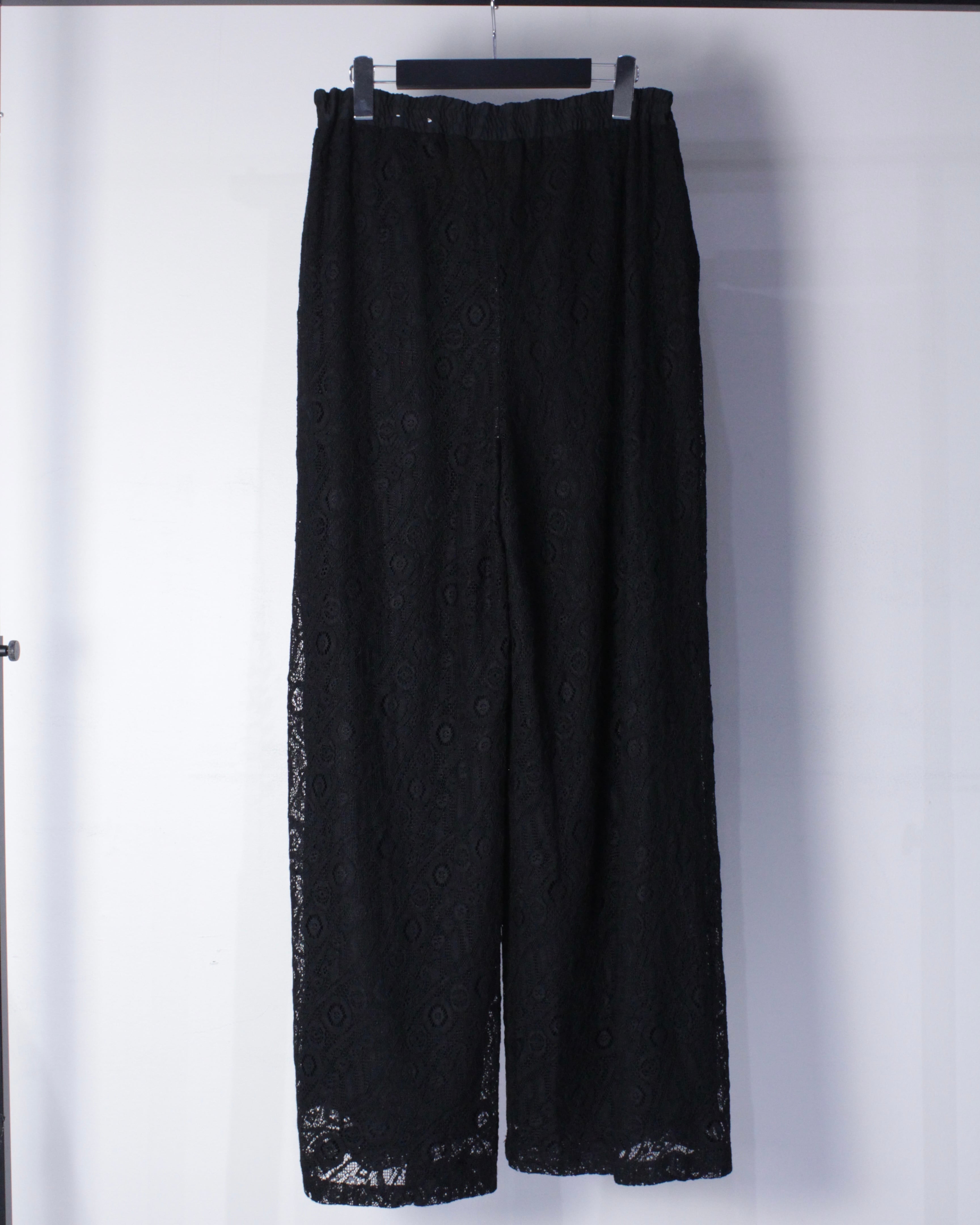 繊細な柄が映し出されたブラックレースをボディに使用したイージーパンツ。
