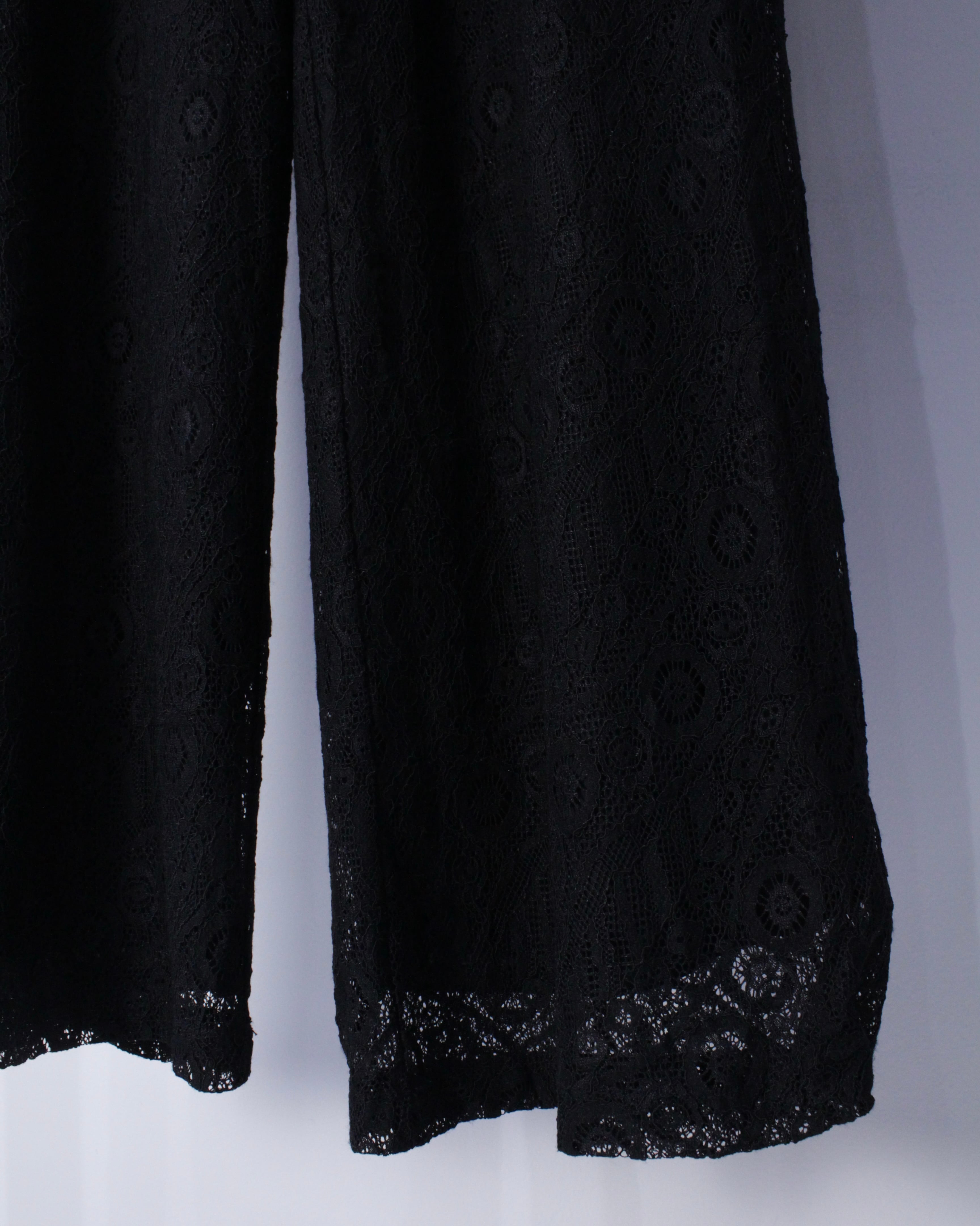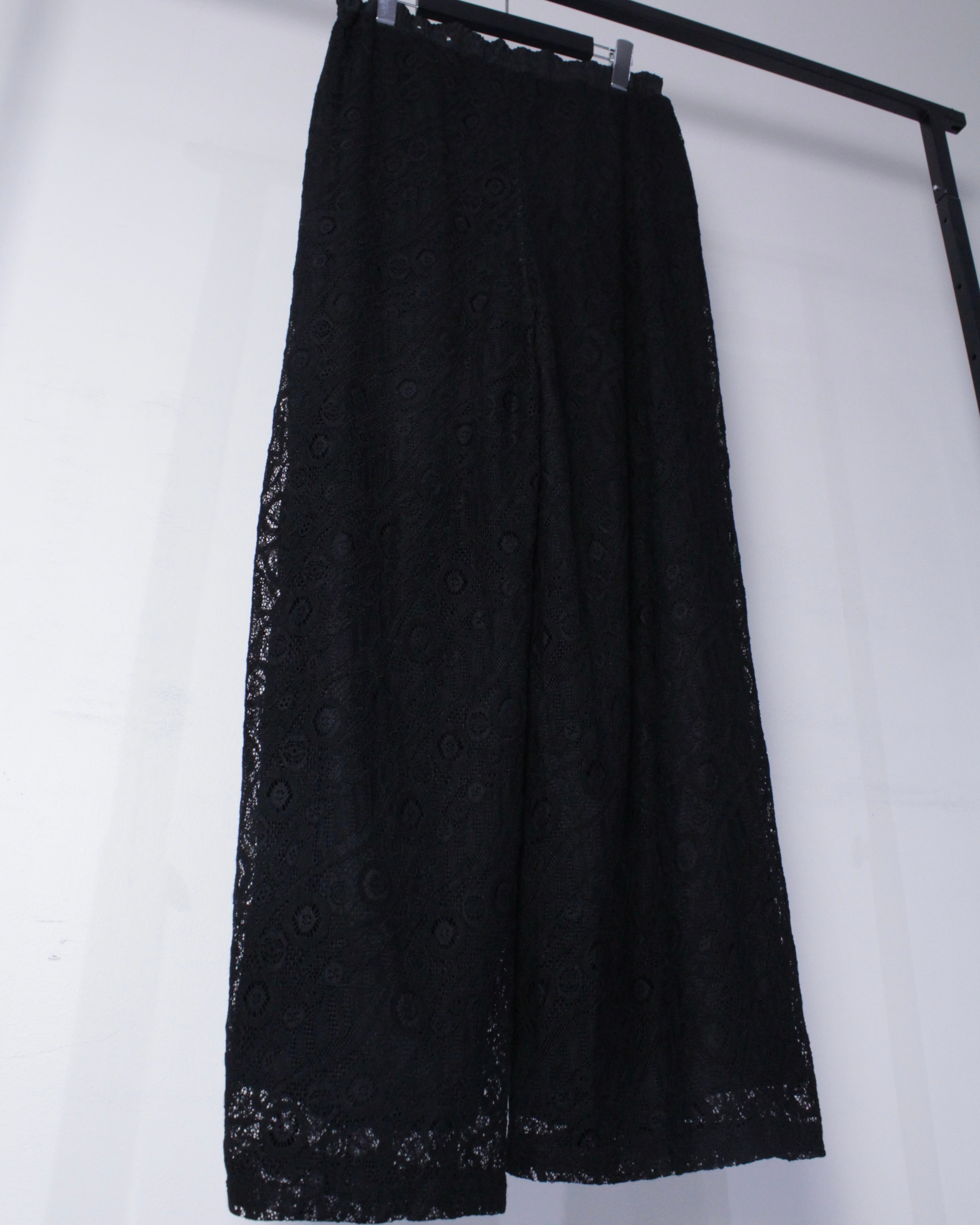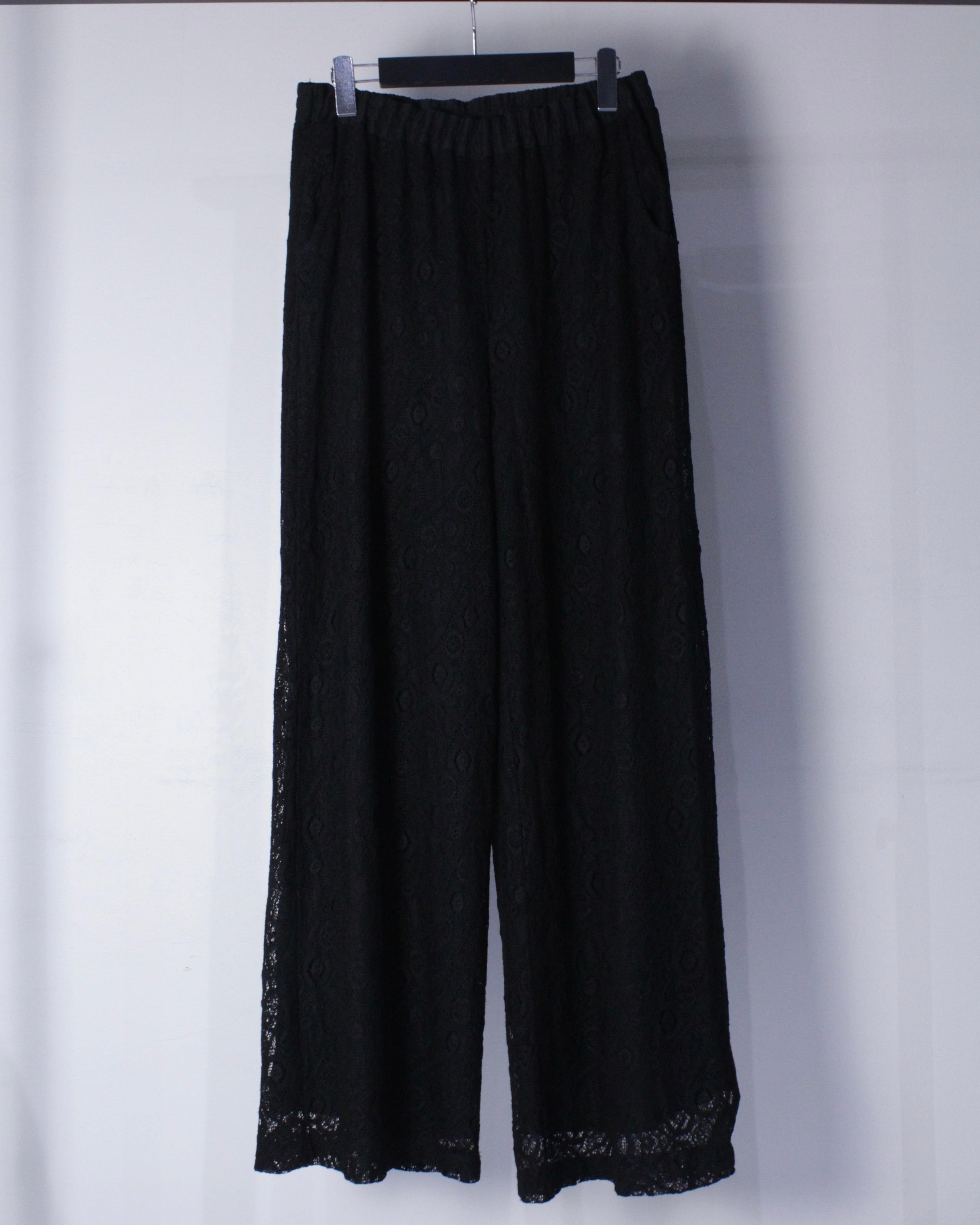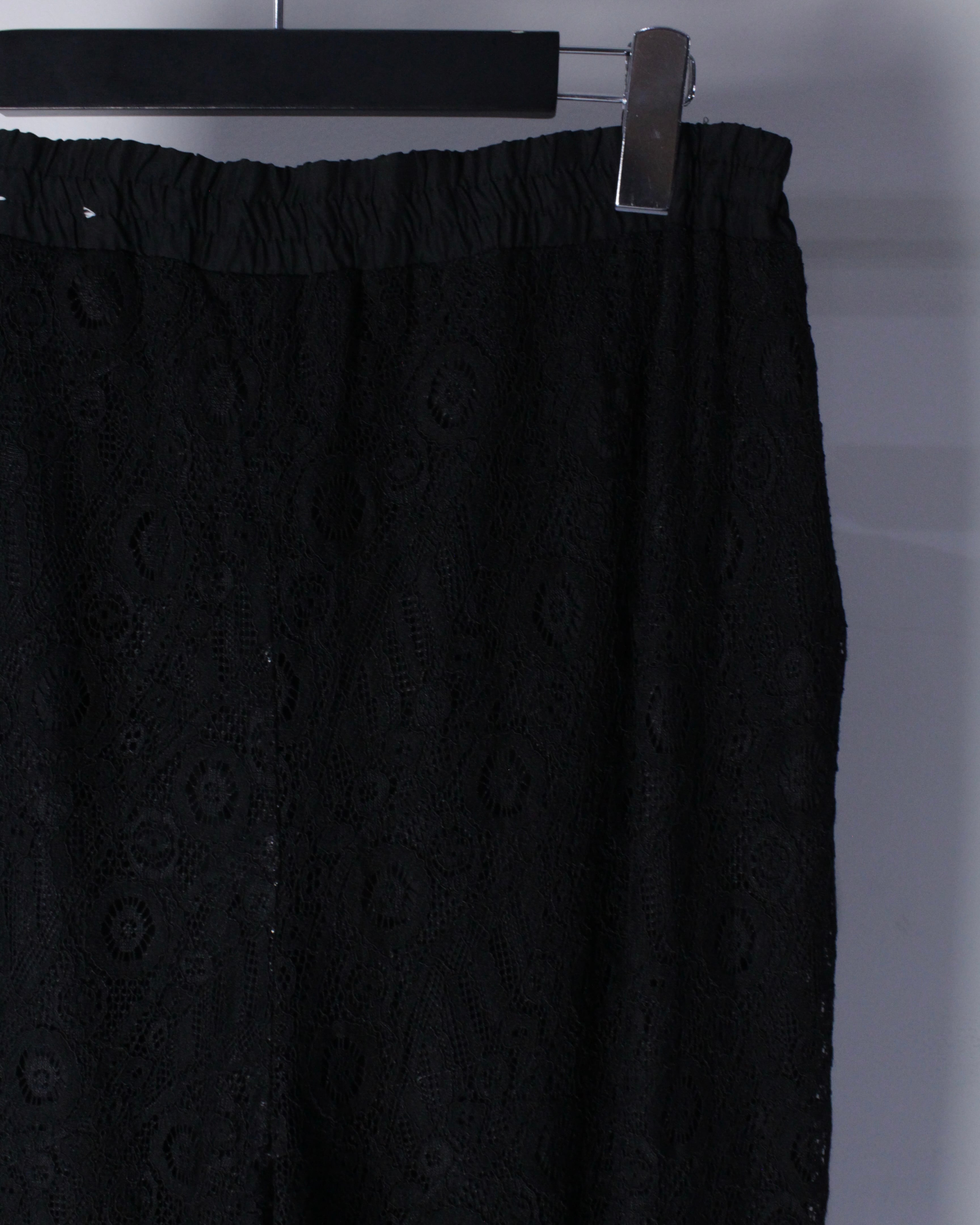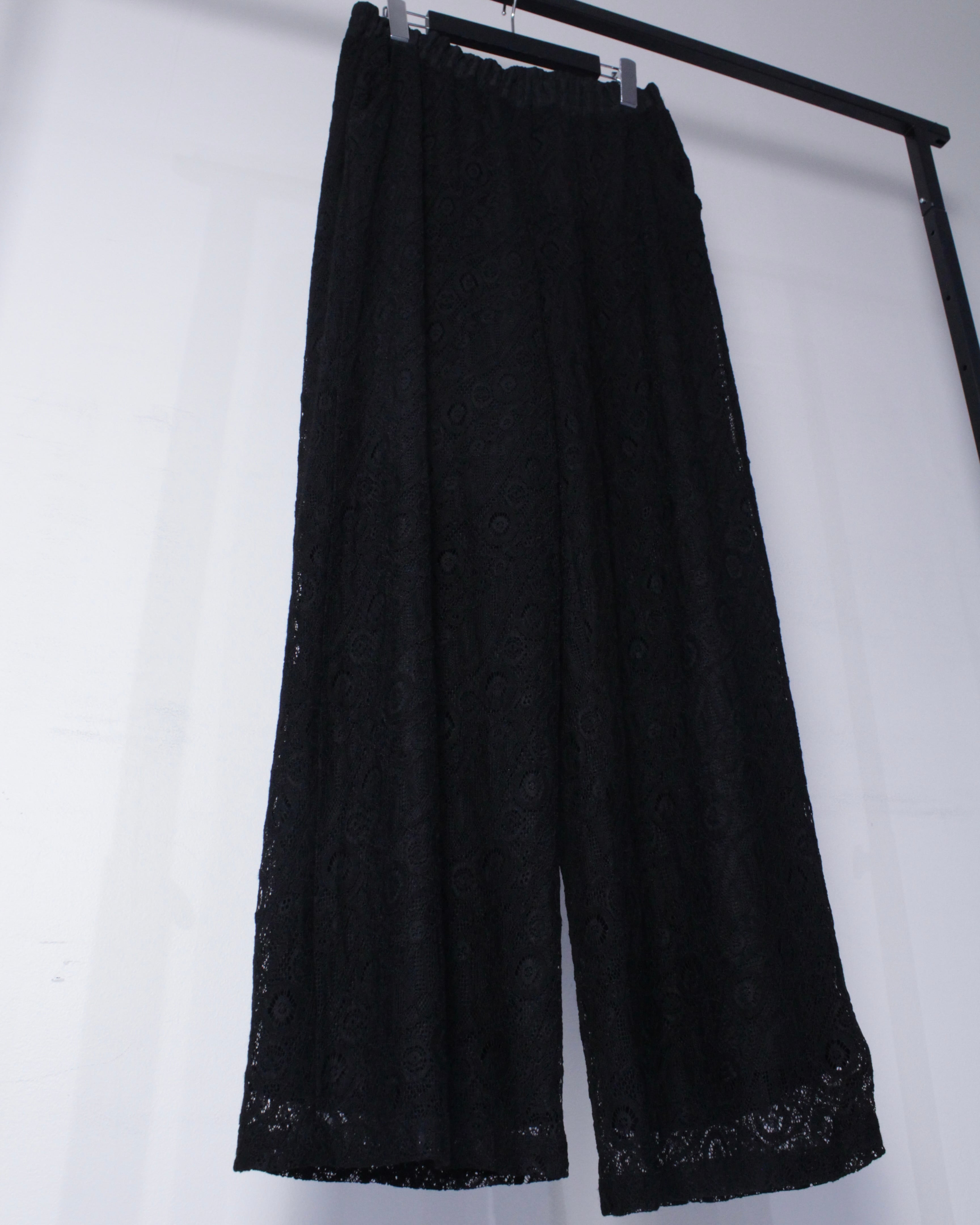 繊細な柄が映し出されたブラックレースをボディに使用したイージーパンツ。