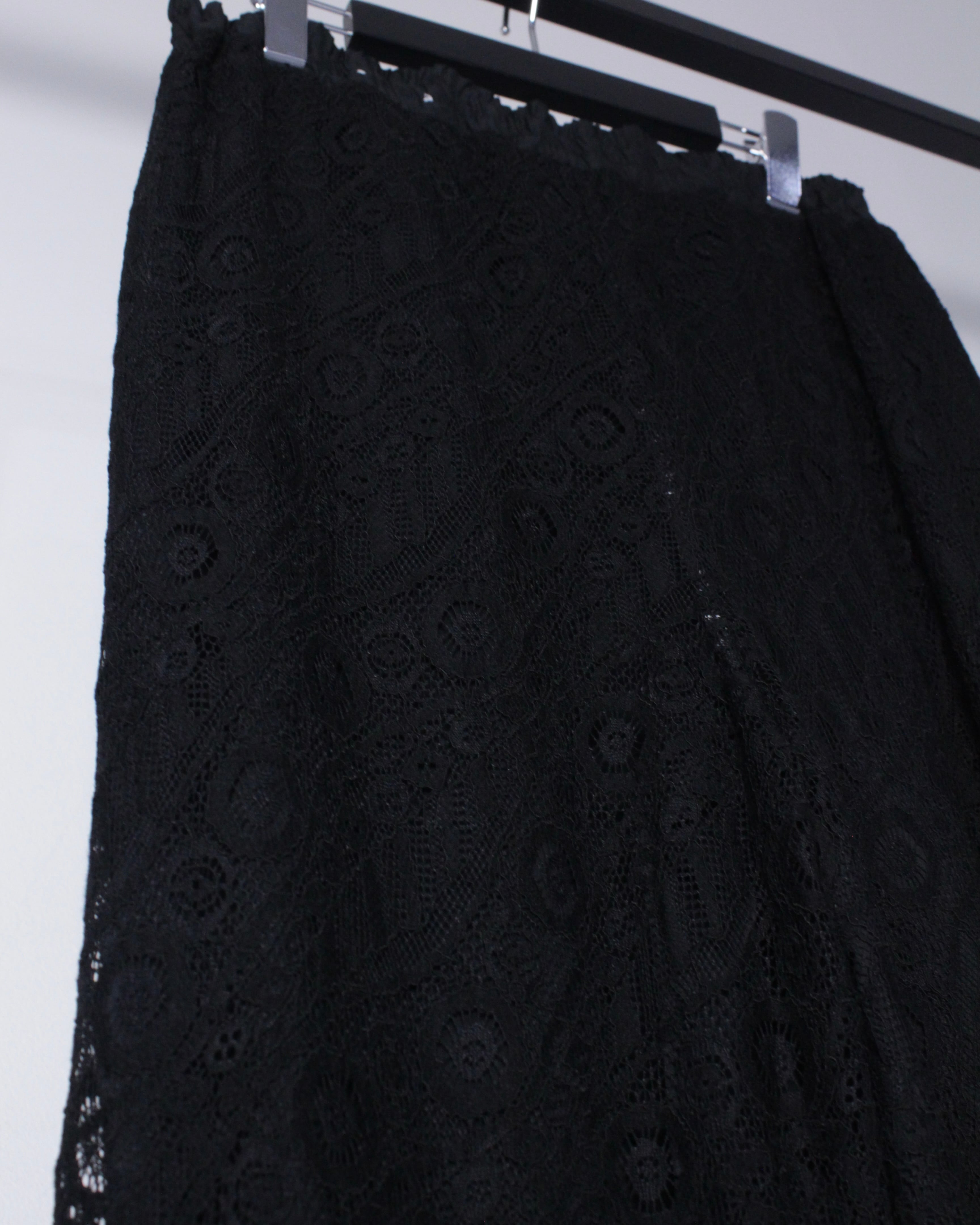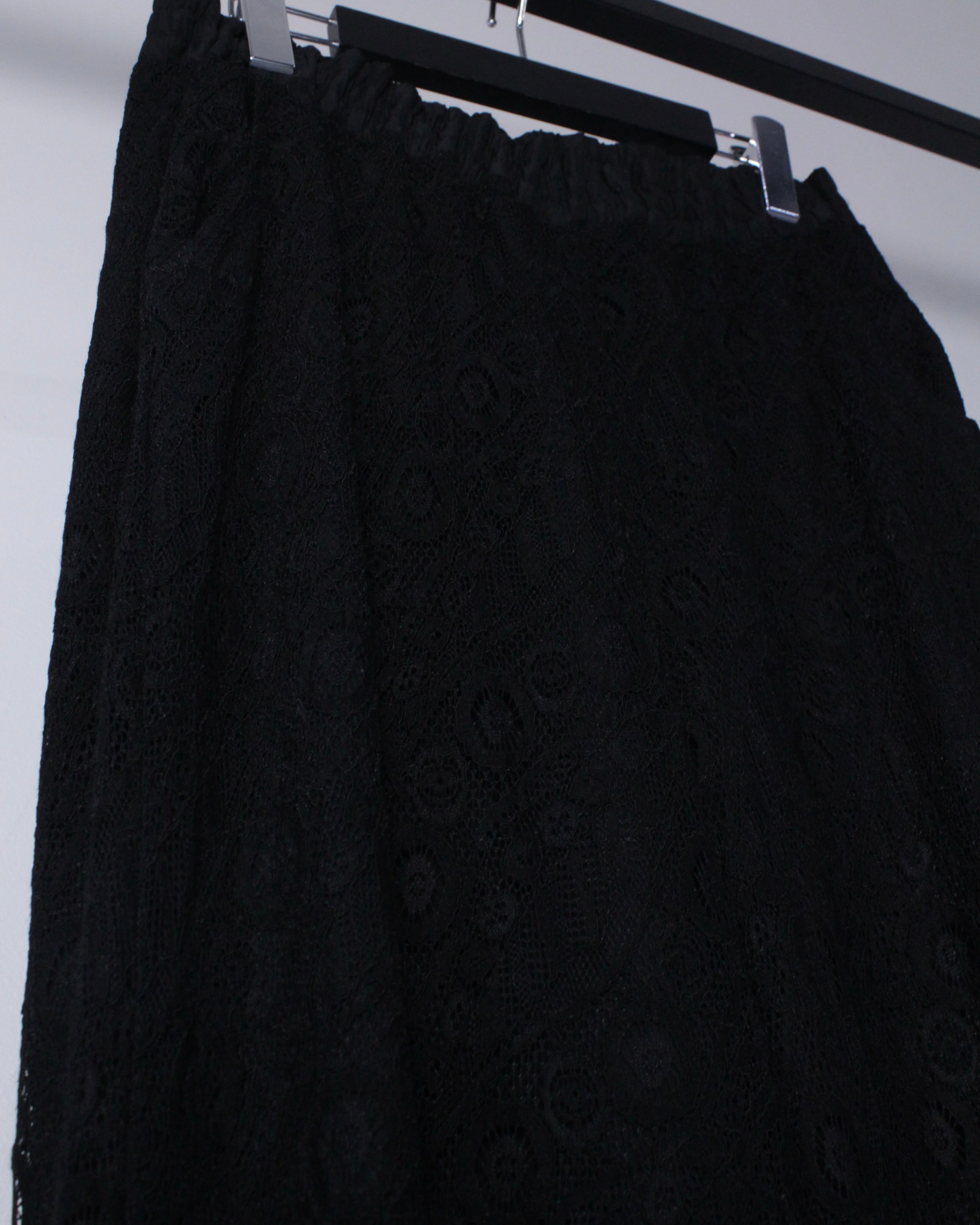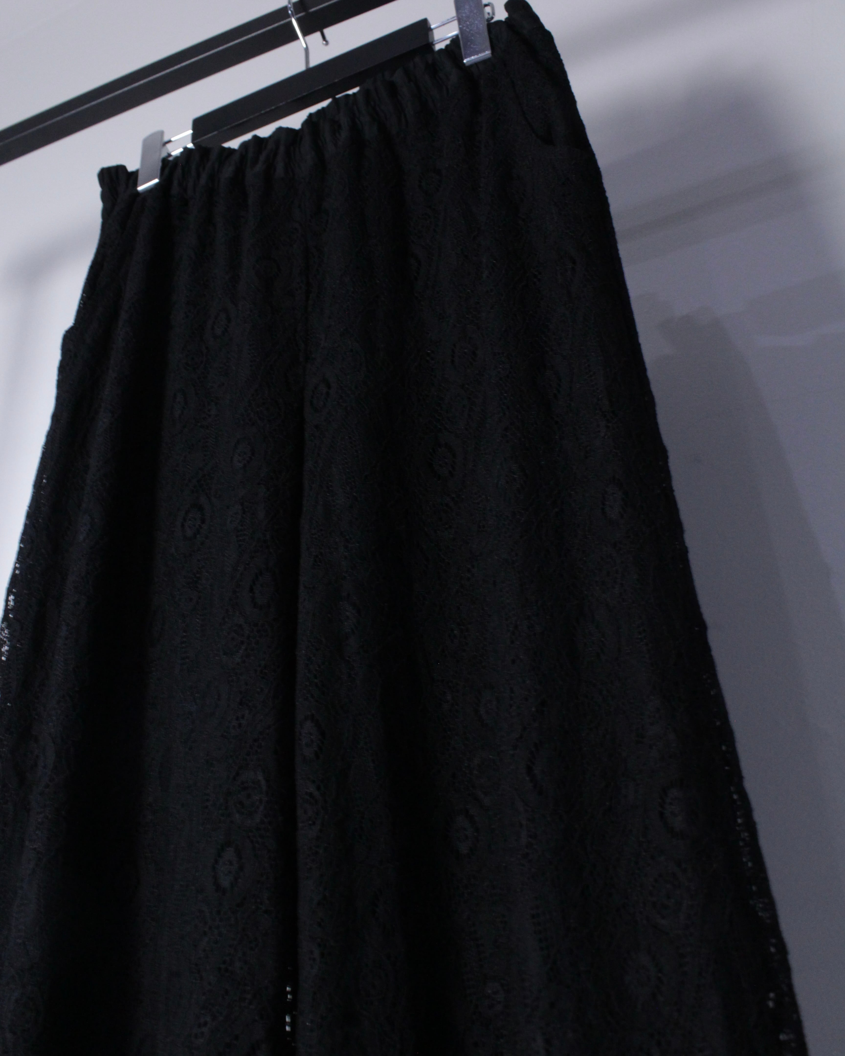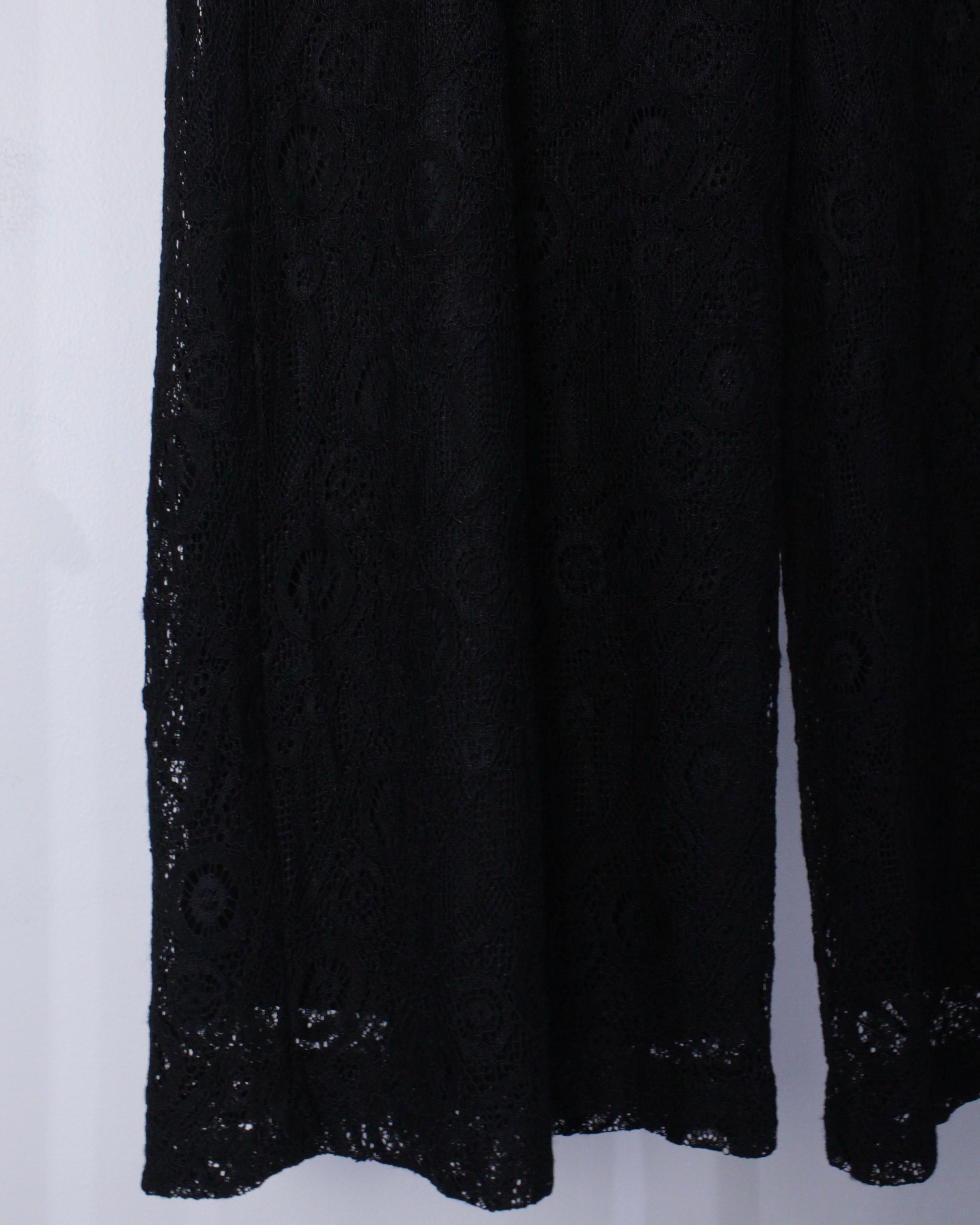 繊細な柄が映し出されたブラックレースをボディに使用したイージーパンツ。