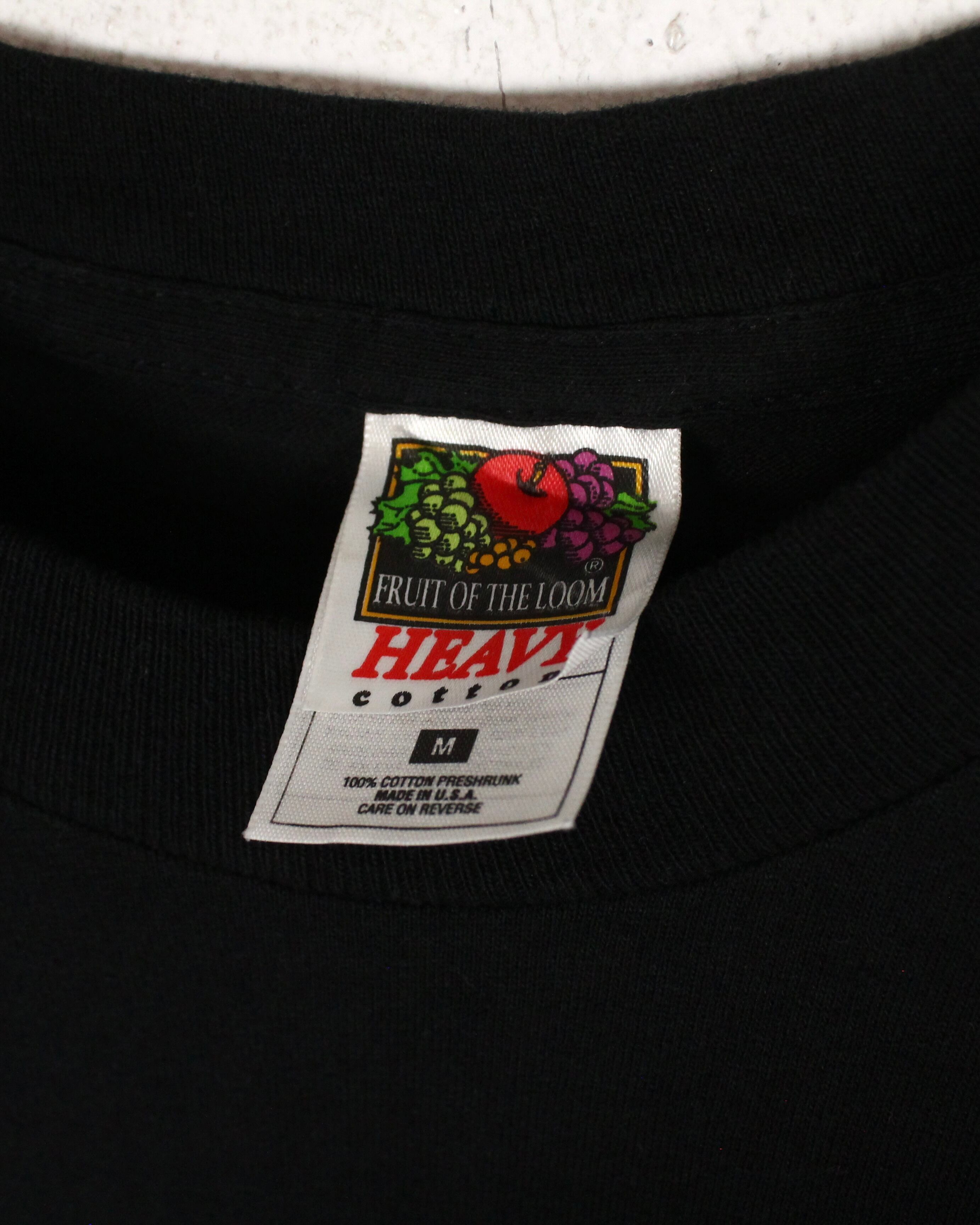 FRUIT OF THE LOOMタグ、袖ステッチシングルの90's USA製ボディ、Mサイズ表記のグッドなサイジングも◎