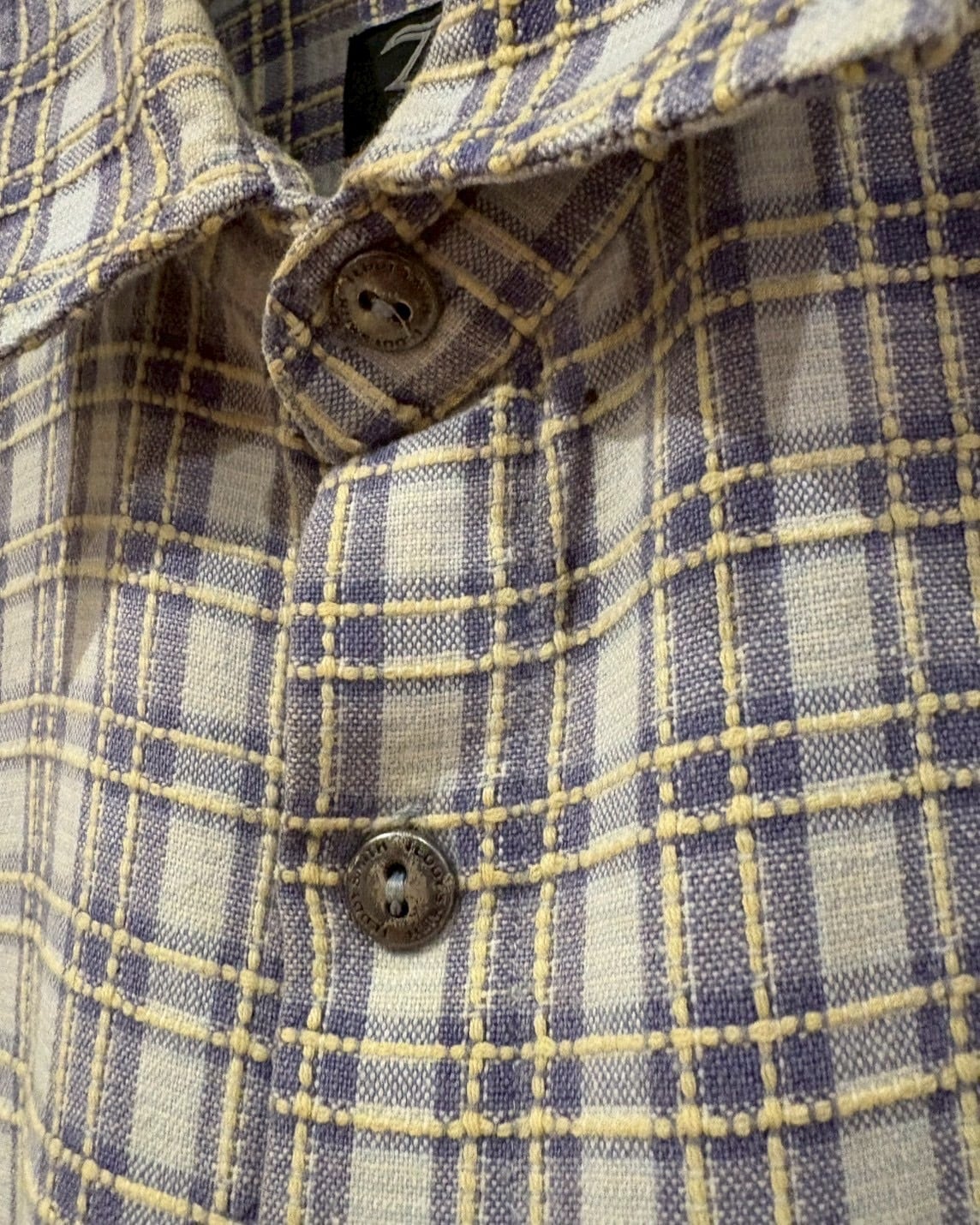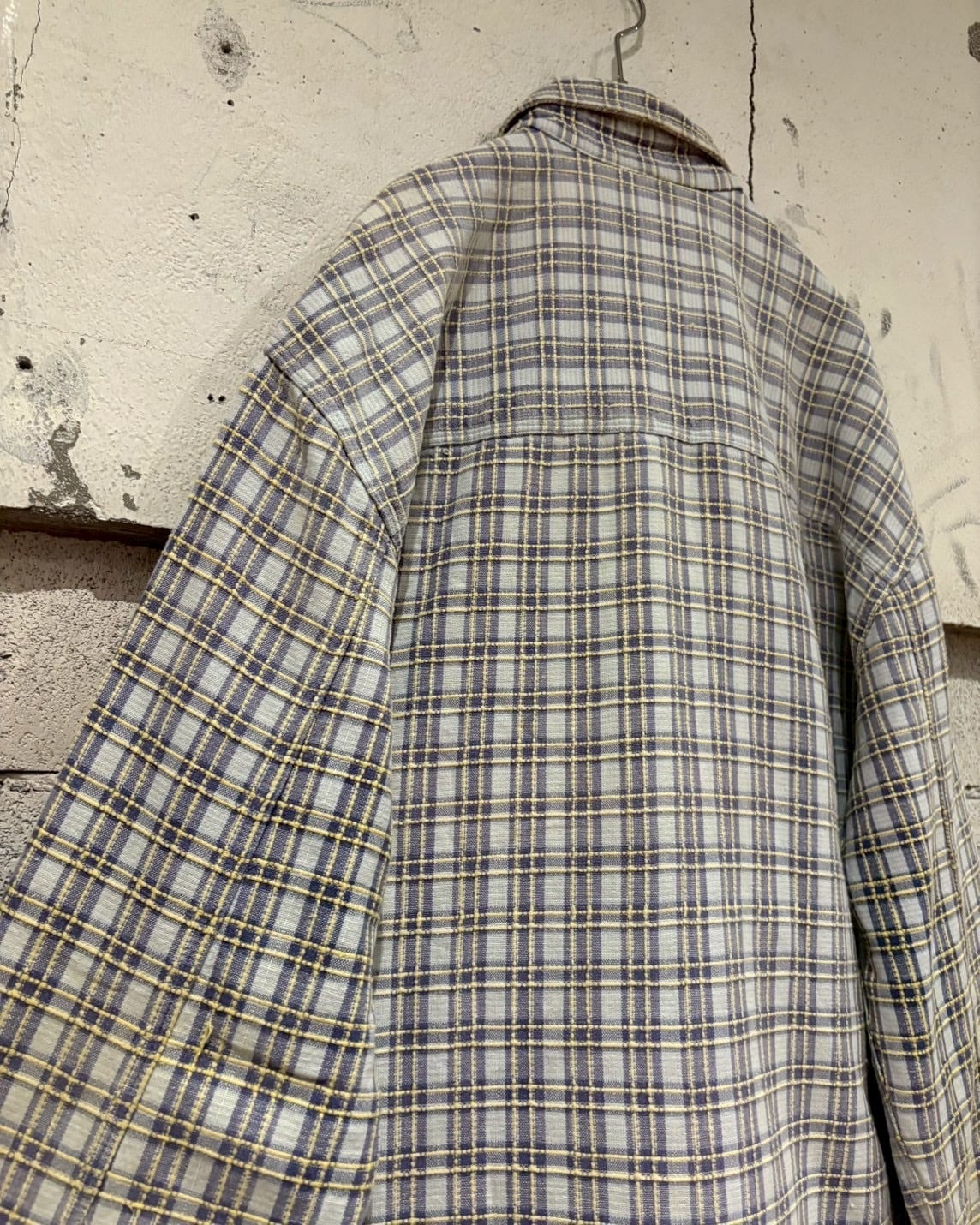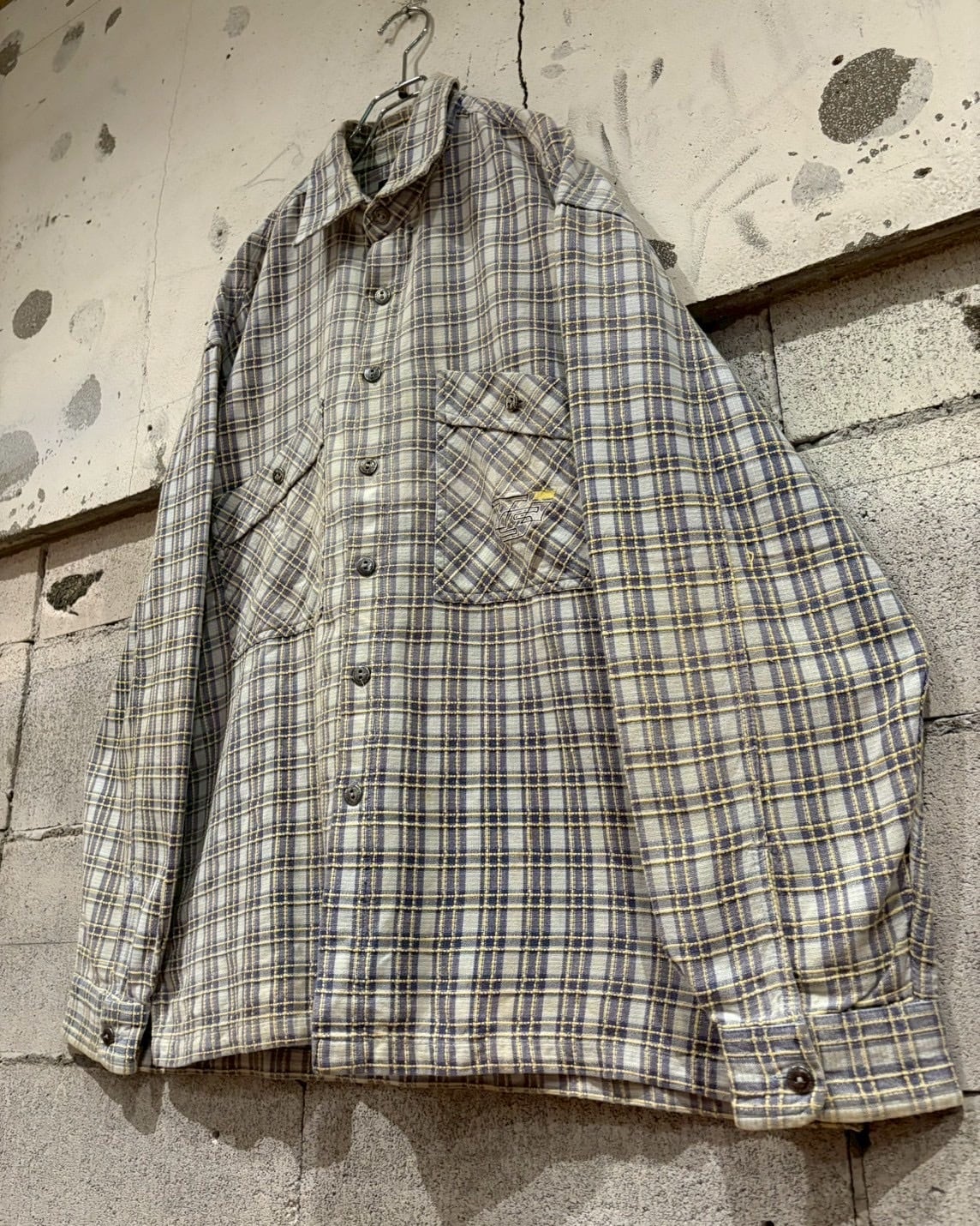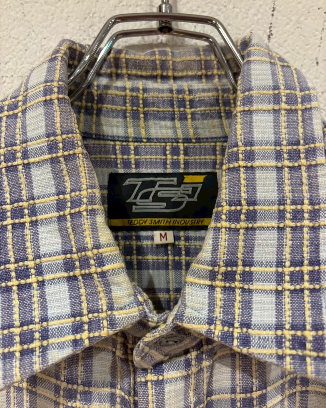 白×青×黄のカラーリングをベースに、糸の織りによってボディ全体にチェック柄を配した"TEDDY SMITH"の長袖チェックシャツ。
