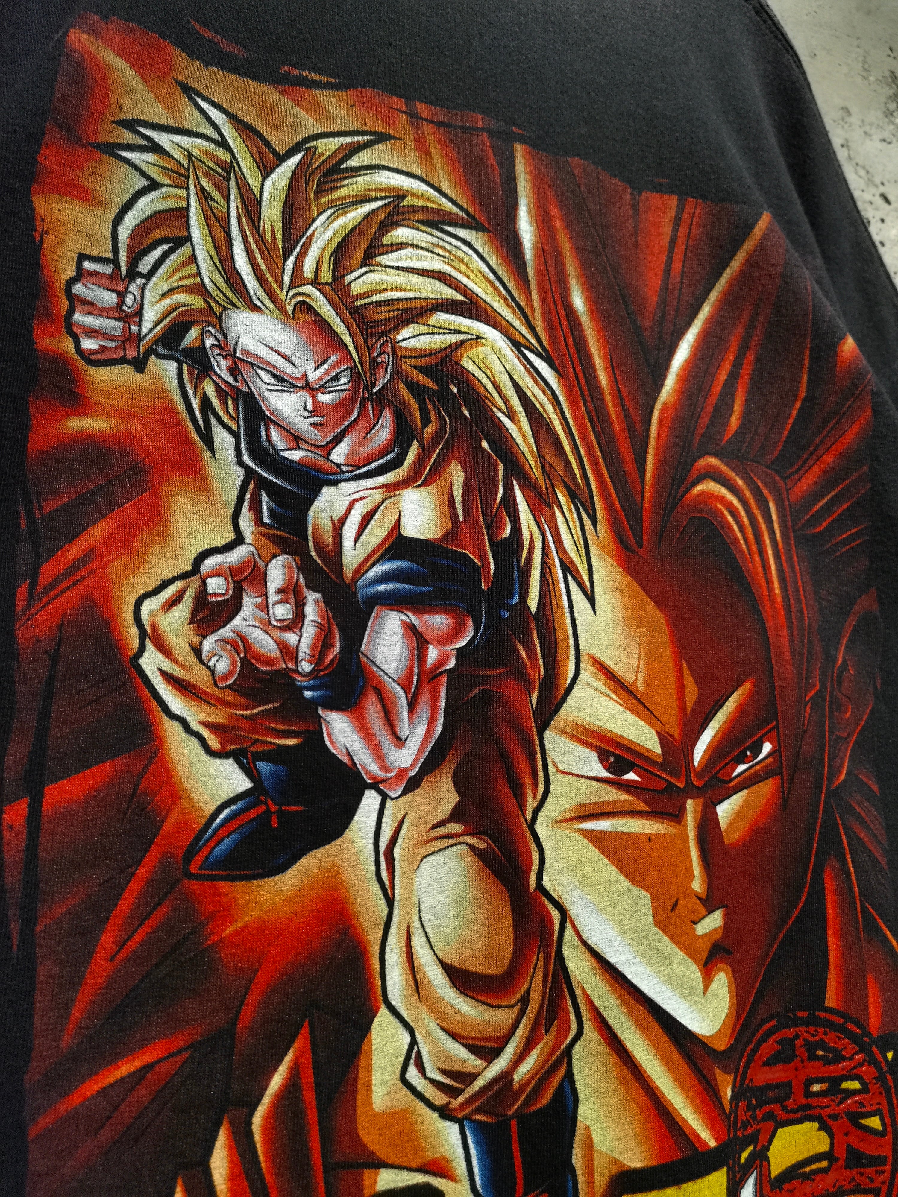 フェードの効いた墨黒ボディに、フロントは悟空のロゴプリントをフロント中央に配し、背面にはスーパーサイヤ人3悟空の姿をドカンと載せた、スペシャリティ溢れる両面プリント。