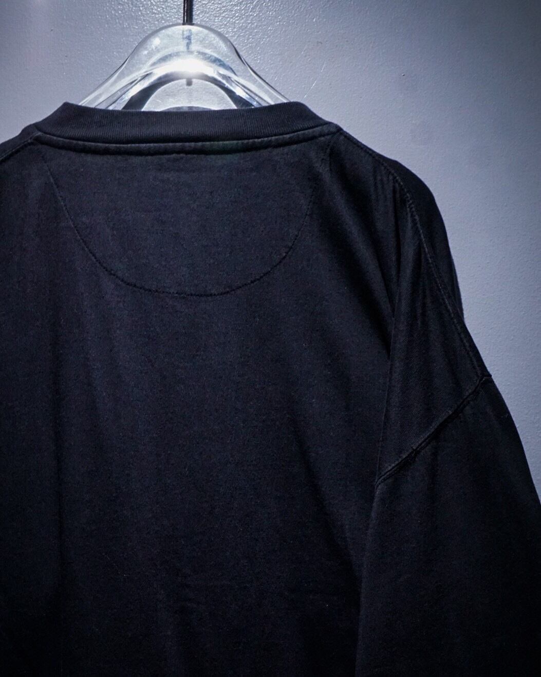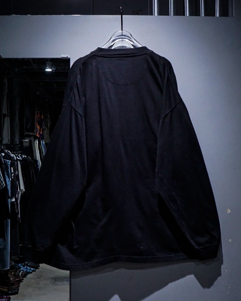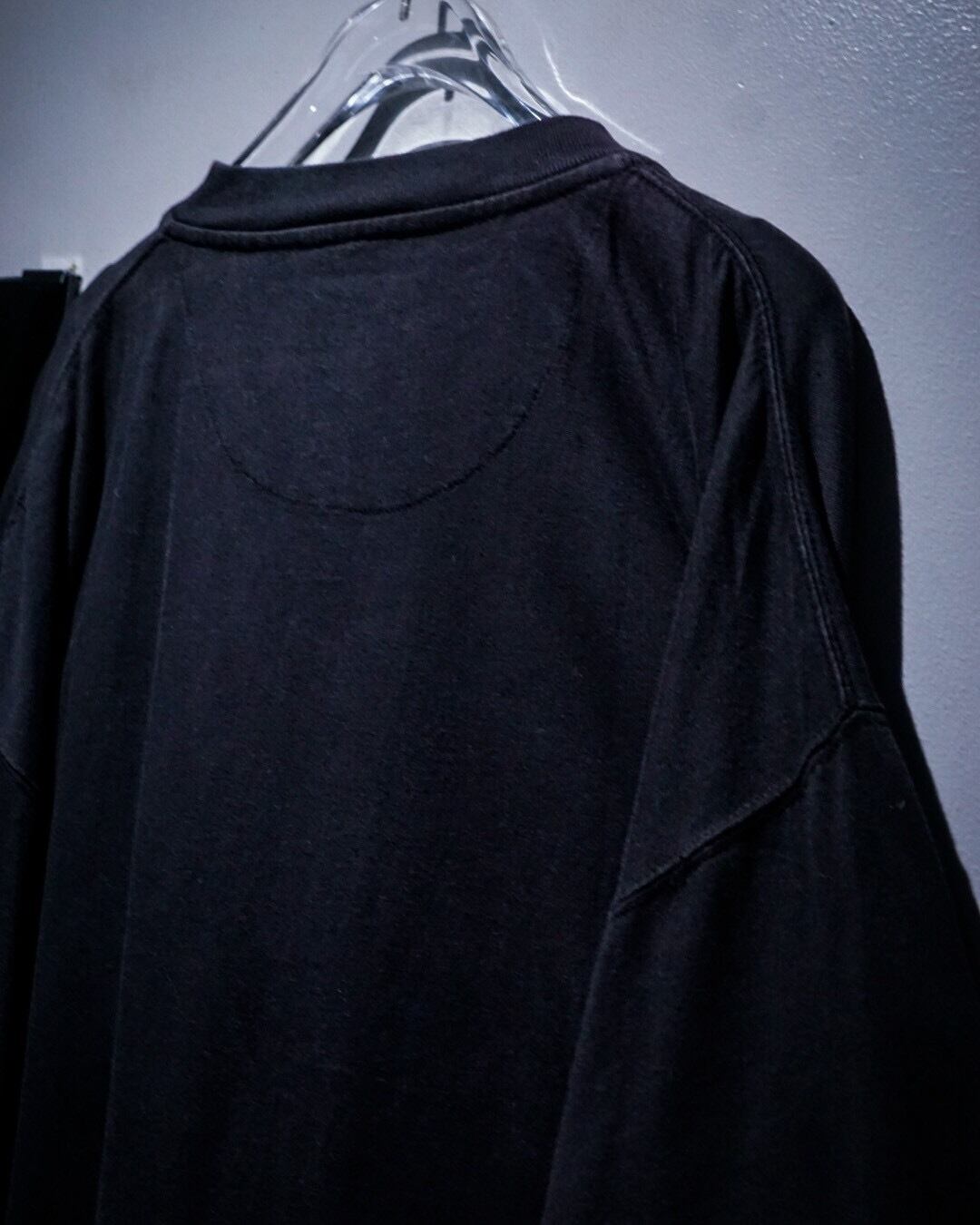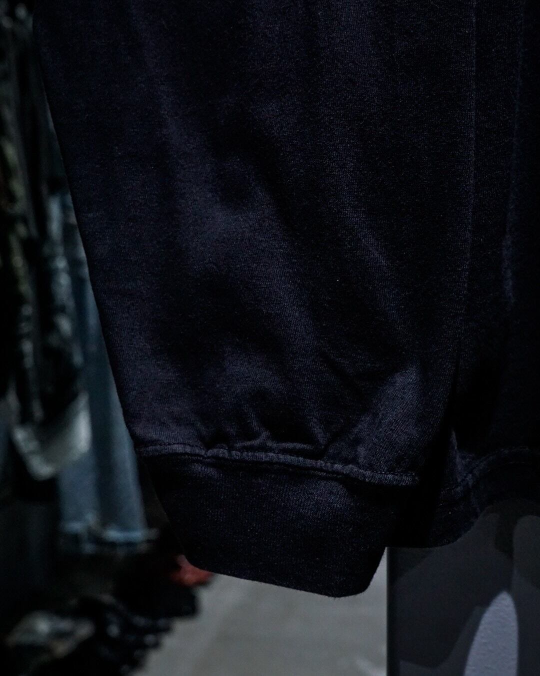 肩の落ちるルーズなサイジングに、リブを施さないストンと落ち感の良いシルエットで、この肩の力が抜けたラフさが堪りません、、、