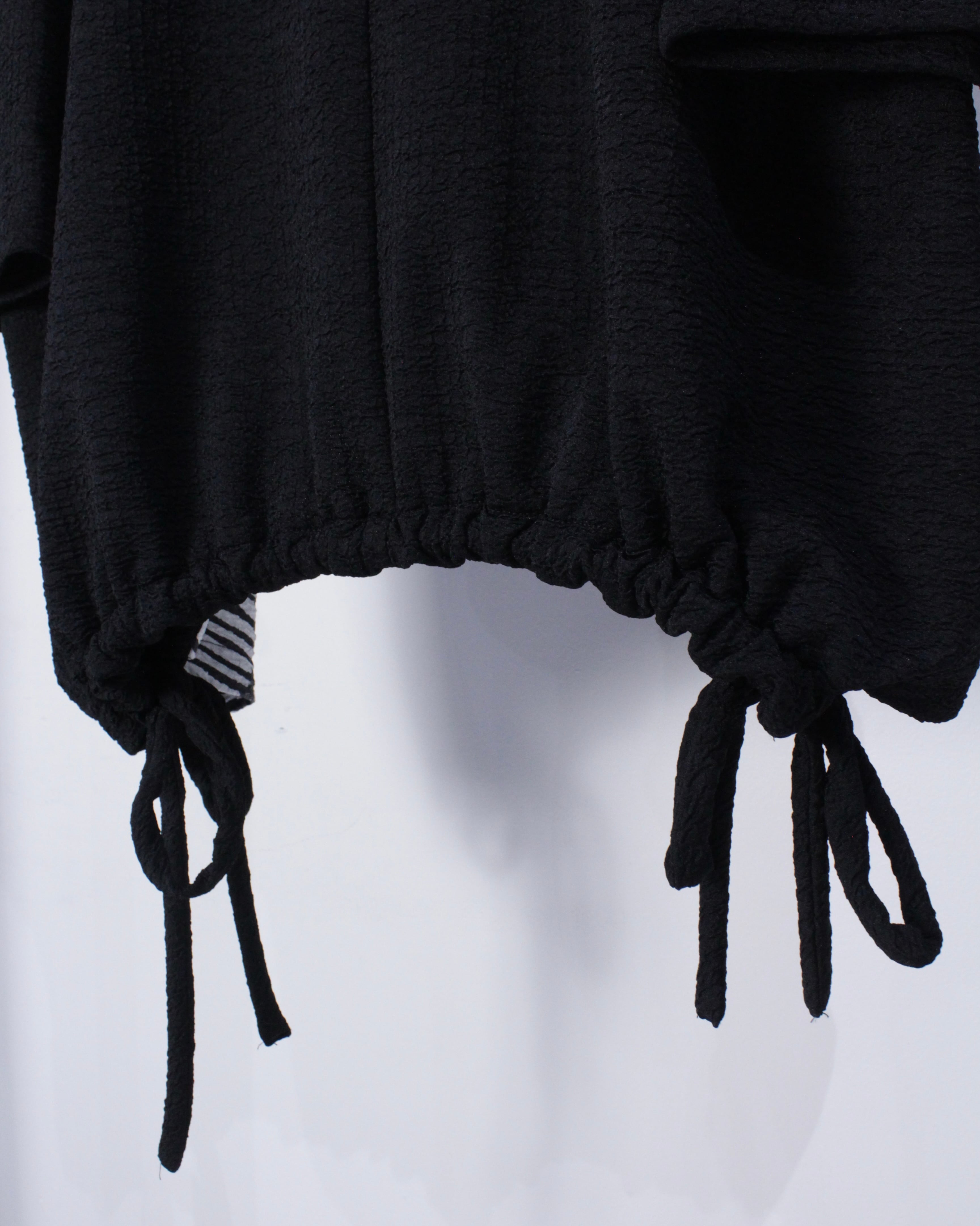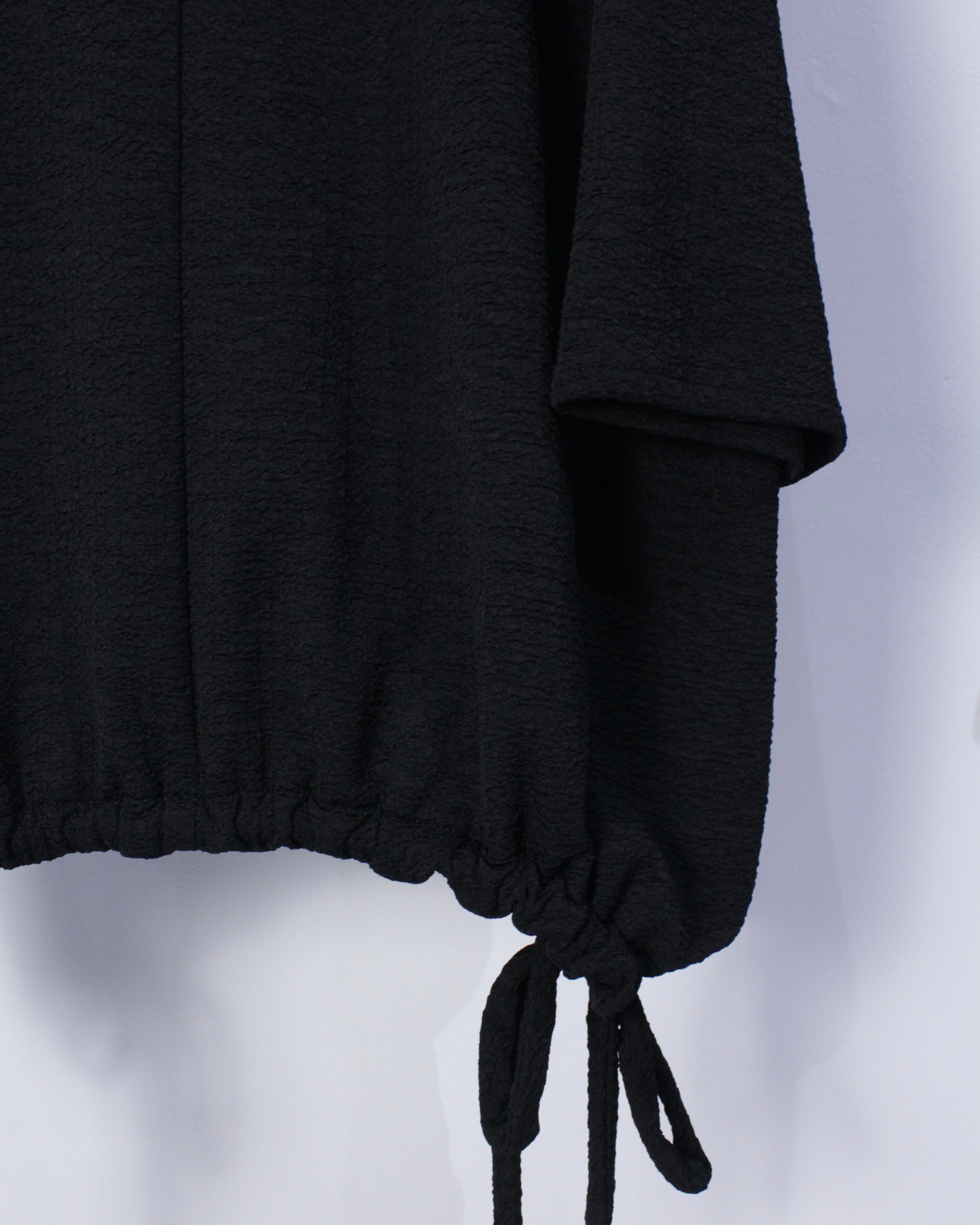 裾にはドローコードが付属しており、シルエットの変更も可能。丸みのあるシルエットを作り出してもよし、ストンと落ちたラフなシルエットも超格好良い。