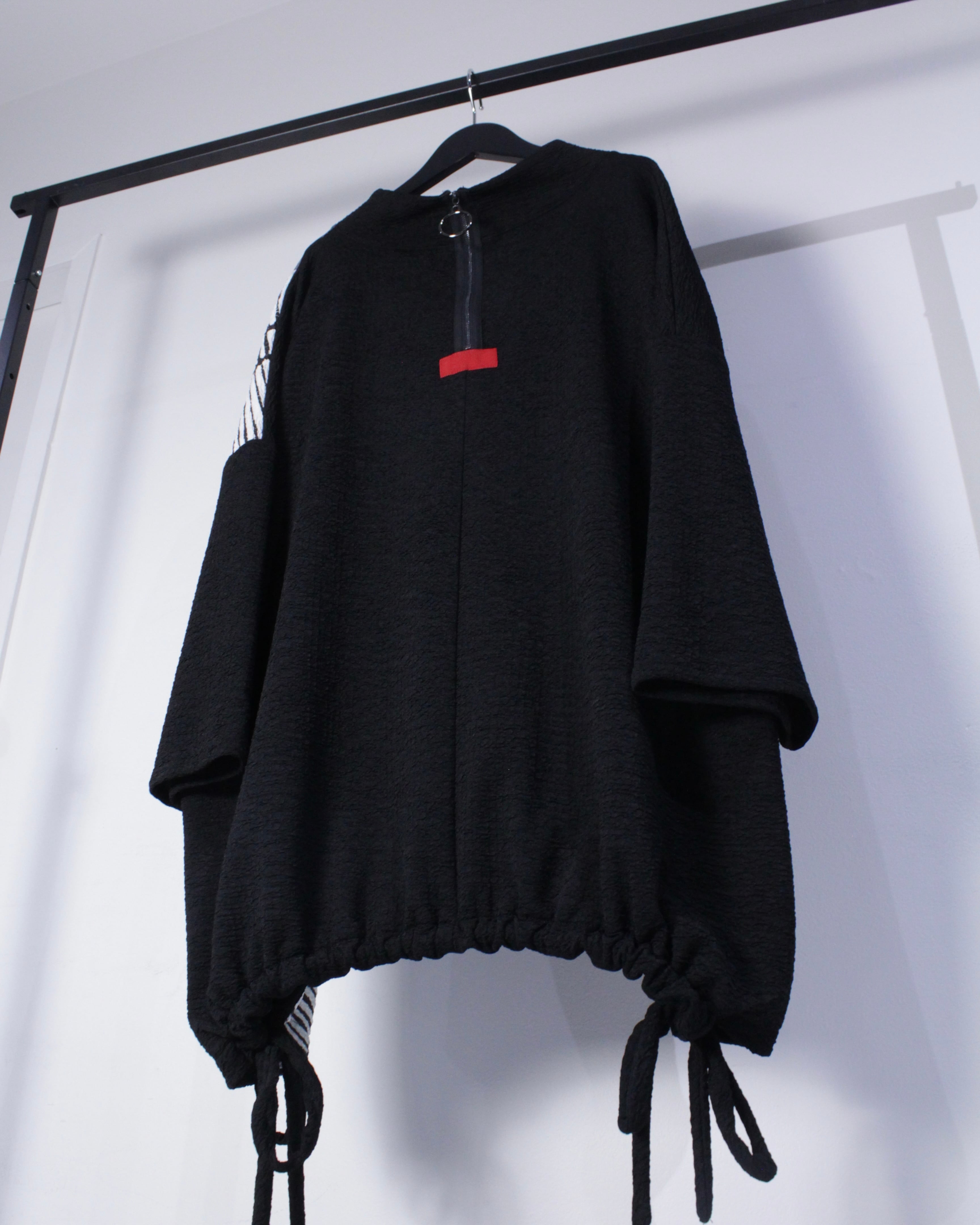 当店らしいモードなデザイン、シンプルながらしっかりと服好きの心を掴むギミックを併せ持った長袖プルオーバーの逸品です。