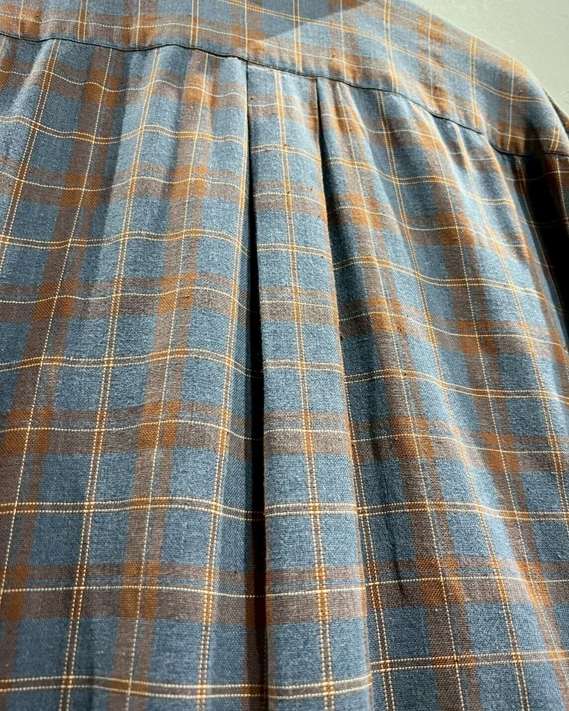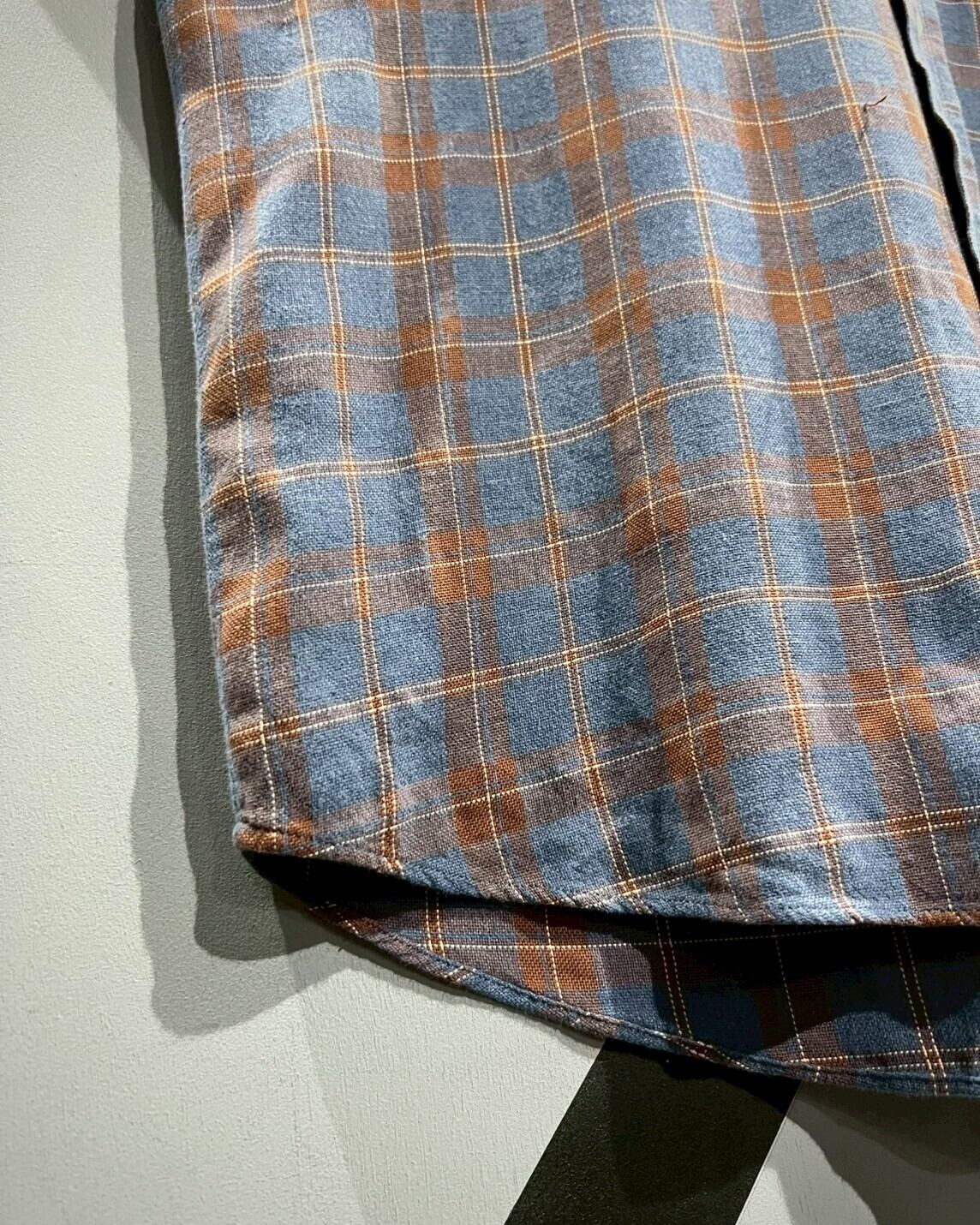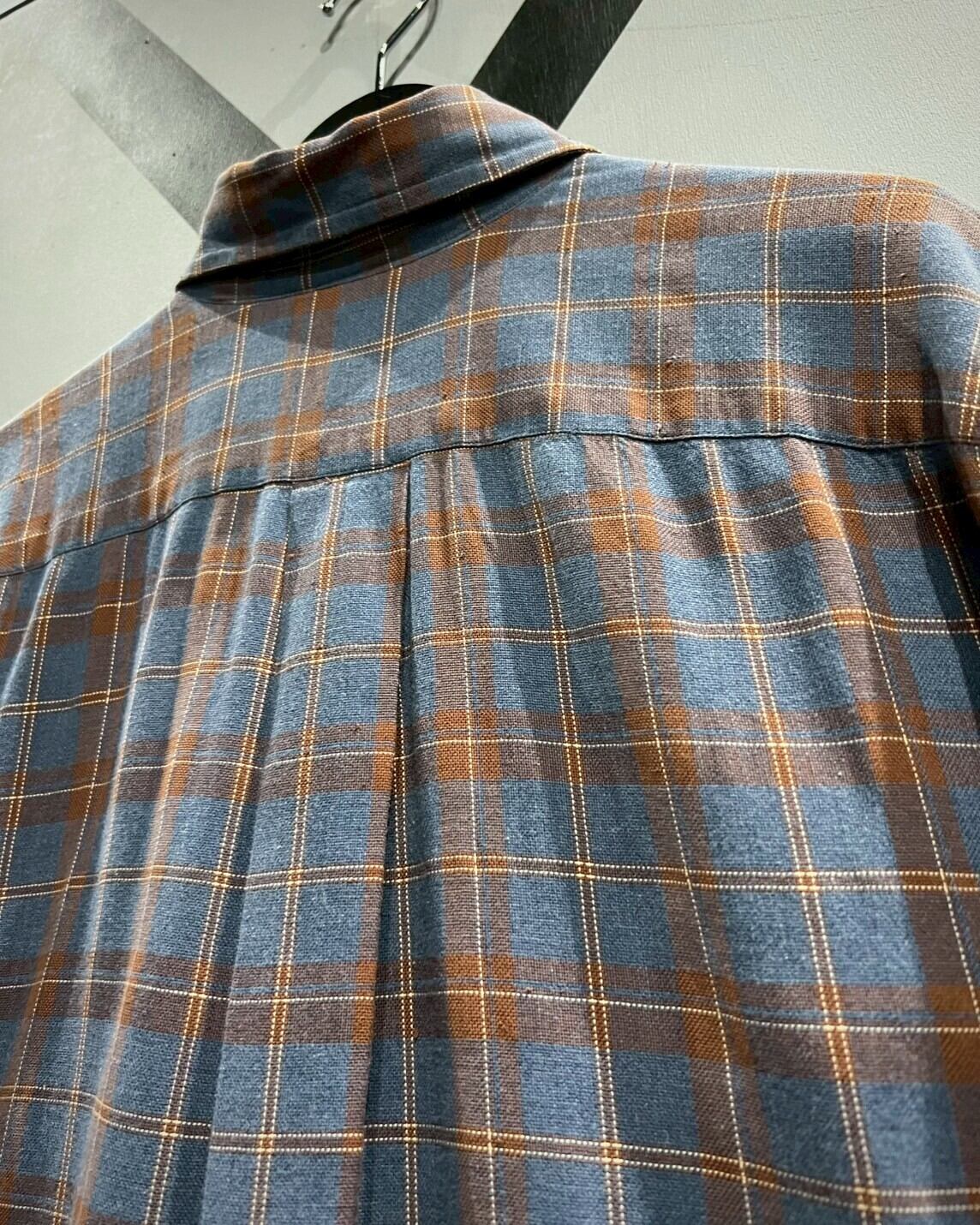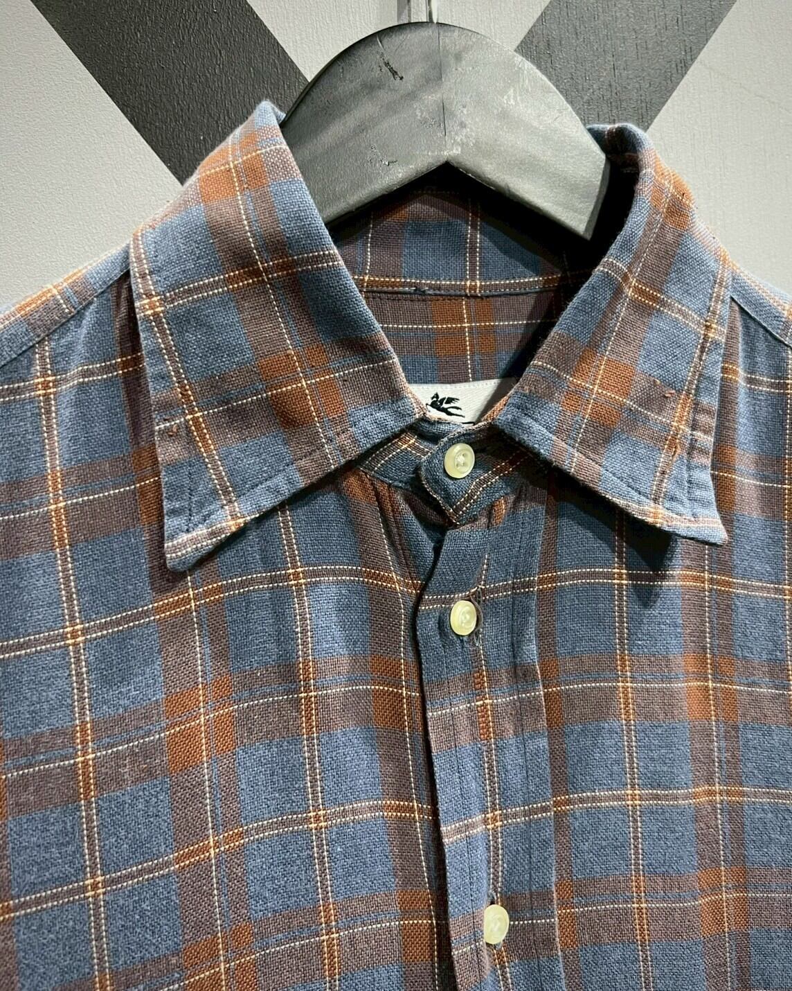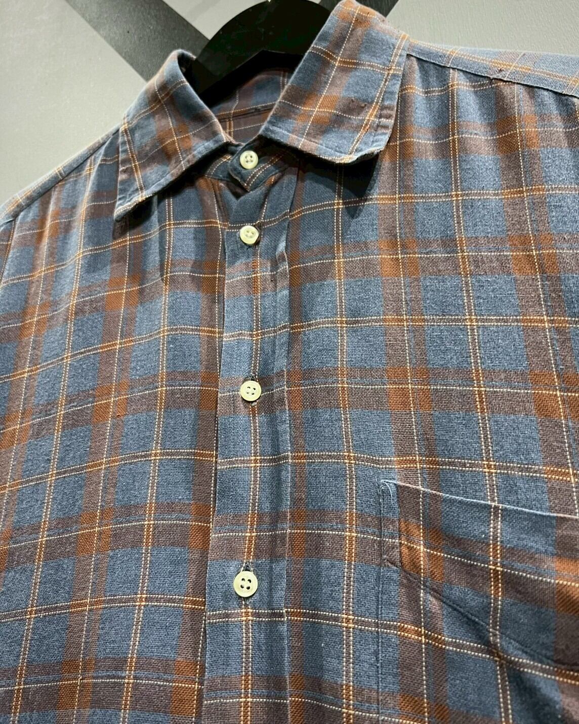 柔らかくコシのある上質なコットン素材を用いて、ラウドブルーをベースにオレンジのカラーリングでチェック柄を載せた半袖シャツ。