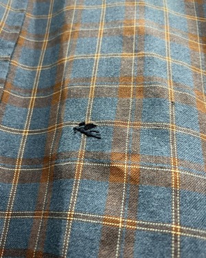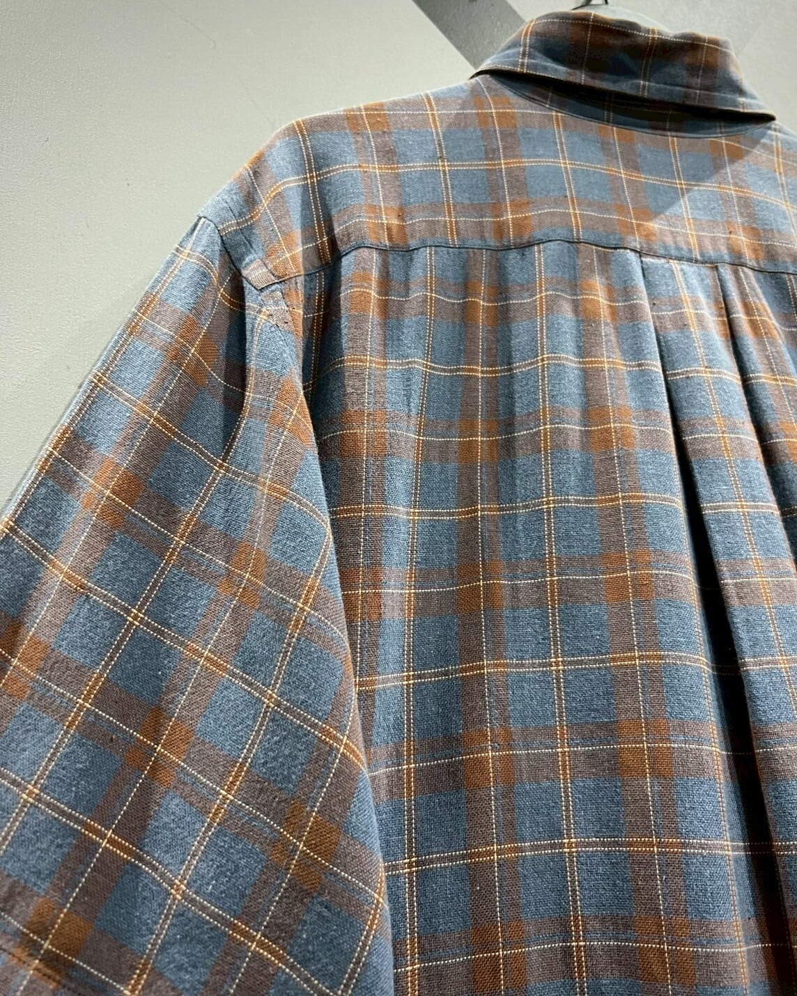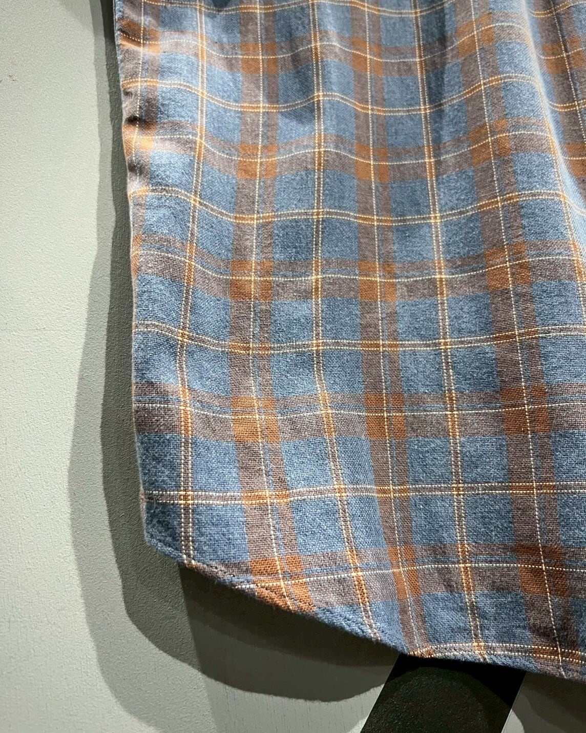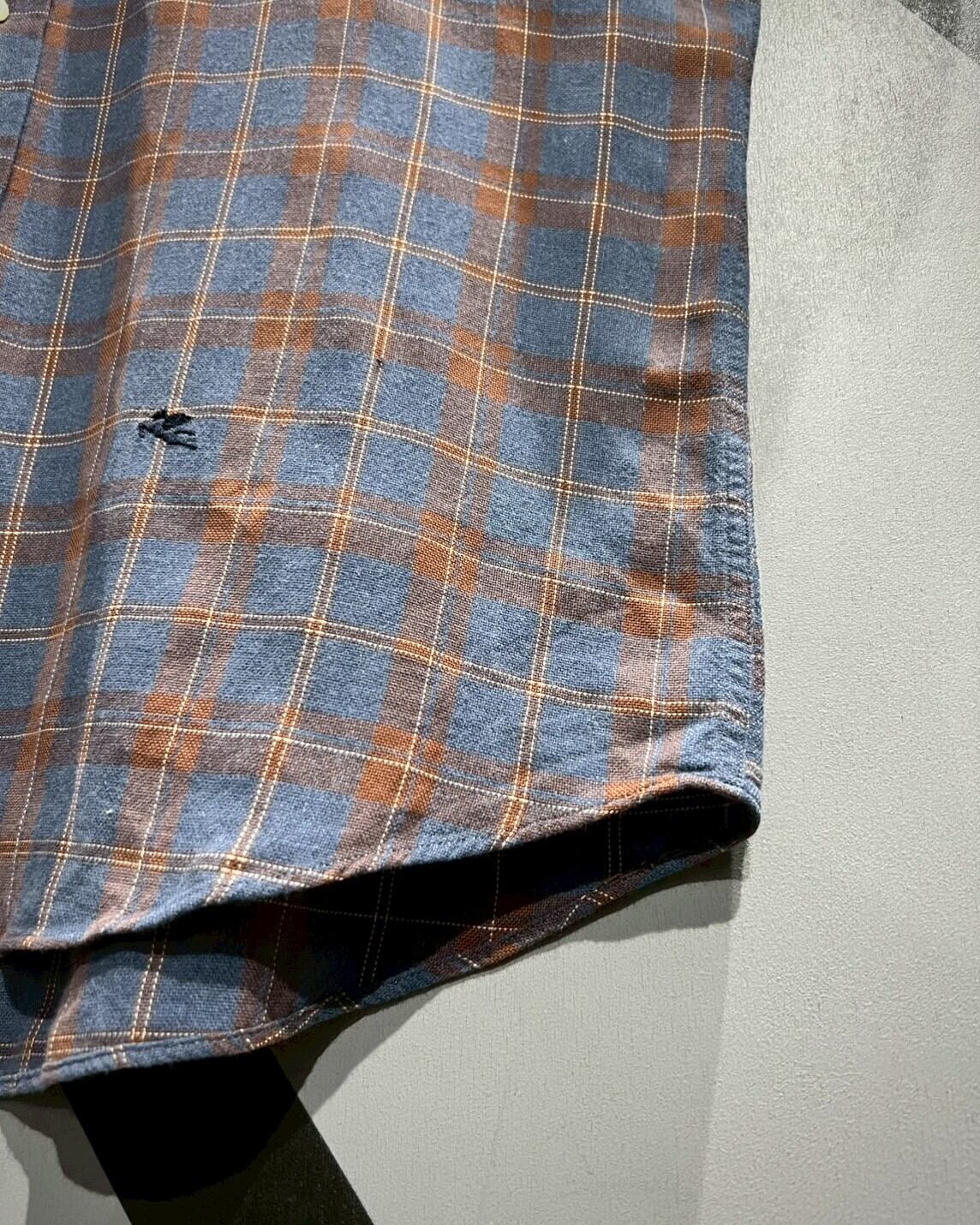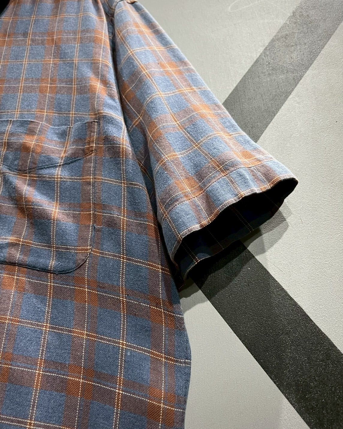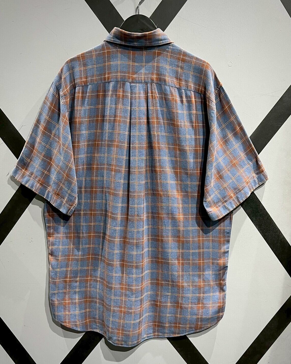 柔らかくコシのある上質なコットン素材を用いて、ラウドブルーをベースにオレンジのカラーリングでチェック柄を載せた半袖シャツ。