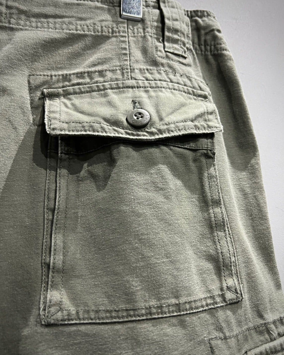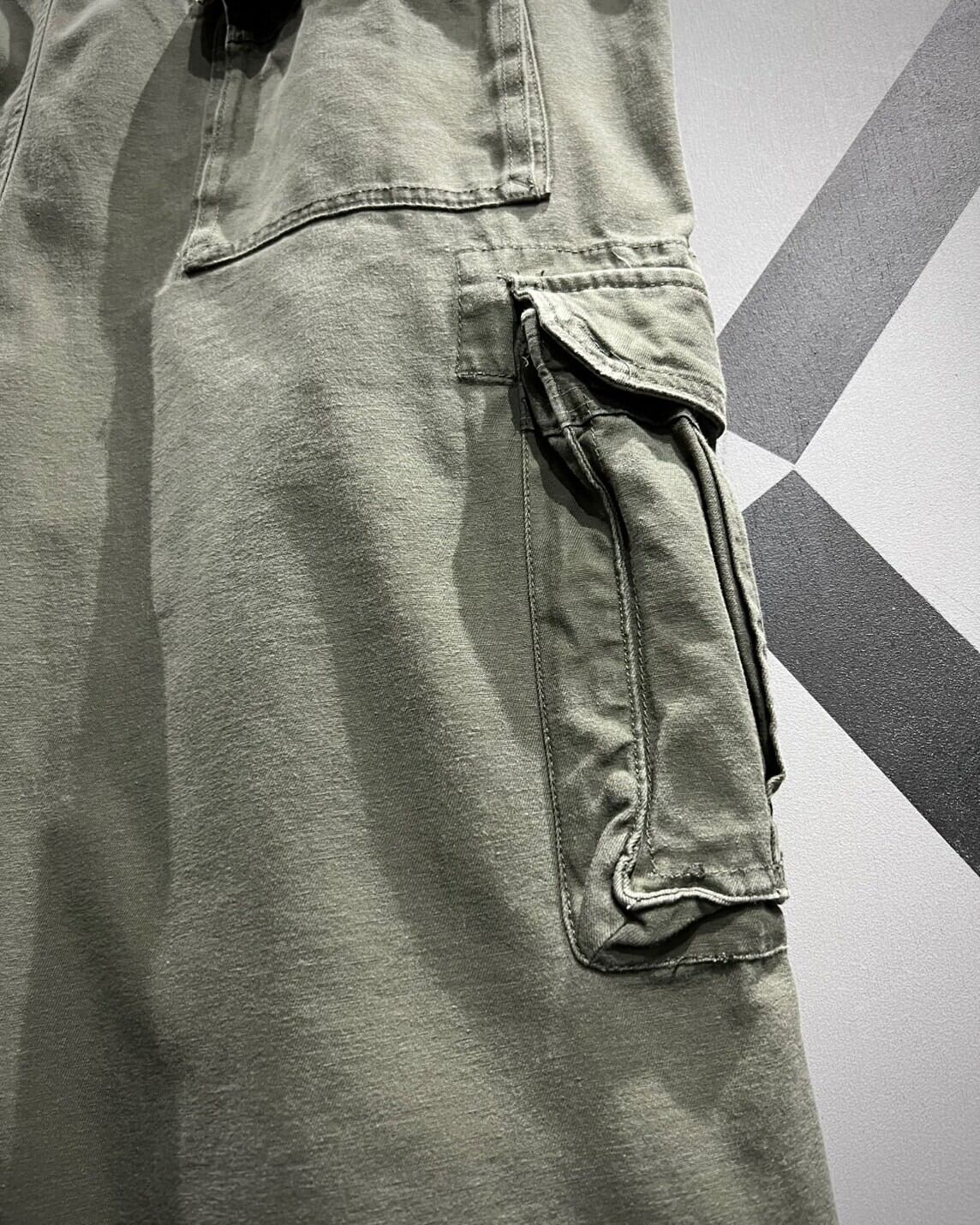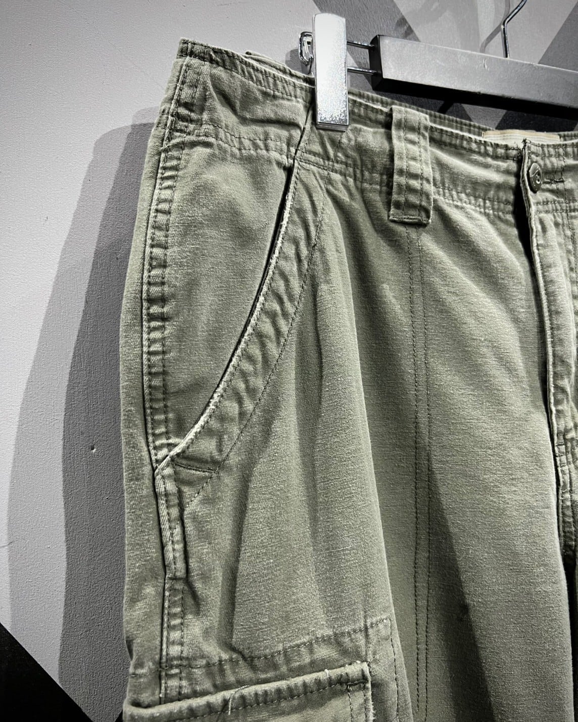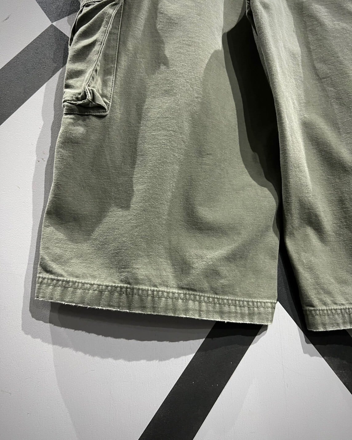 フェード感の良いカーキのコットン素材を用いたカーゴショーツ。