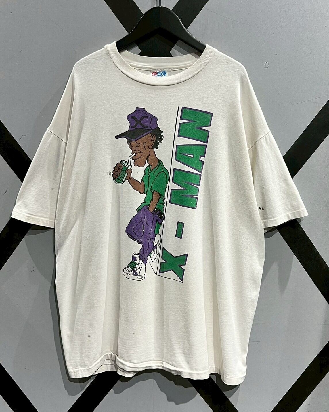 ストリートアート風のX-MANの文字、X字を載せたキャップ、ローライズのパンツやハイカットスニーカーを履いた男性など、スタイルが超イケてますね。