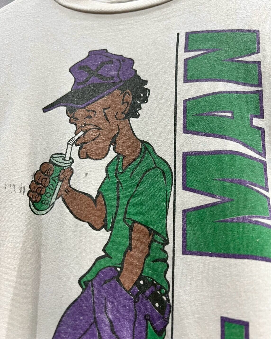 ホワイトのボディをベースに、ストリート、HIPHOP感漂うイラストを載せたTシャツ。