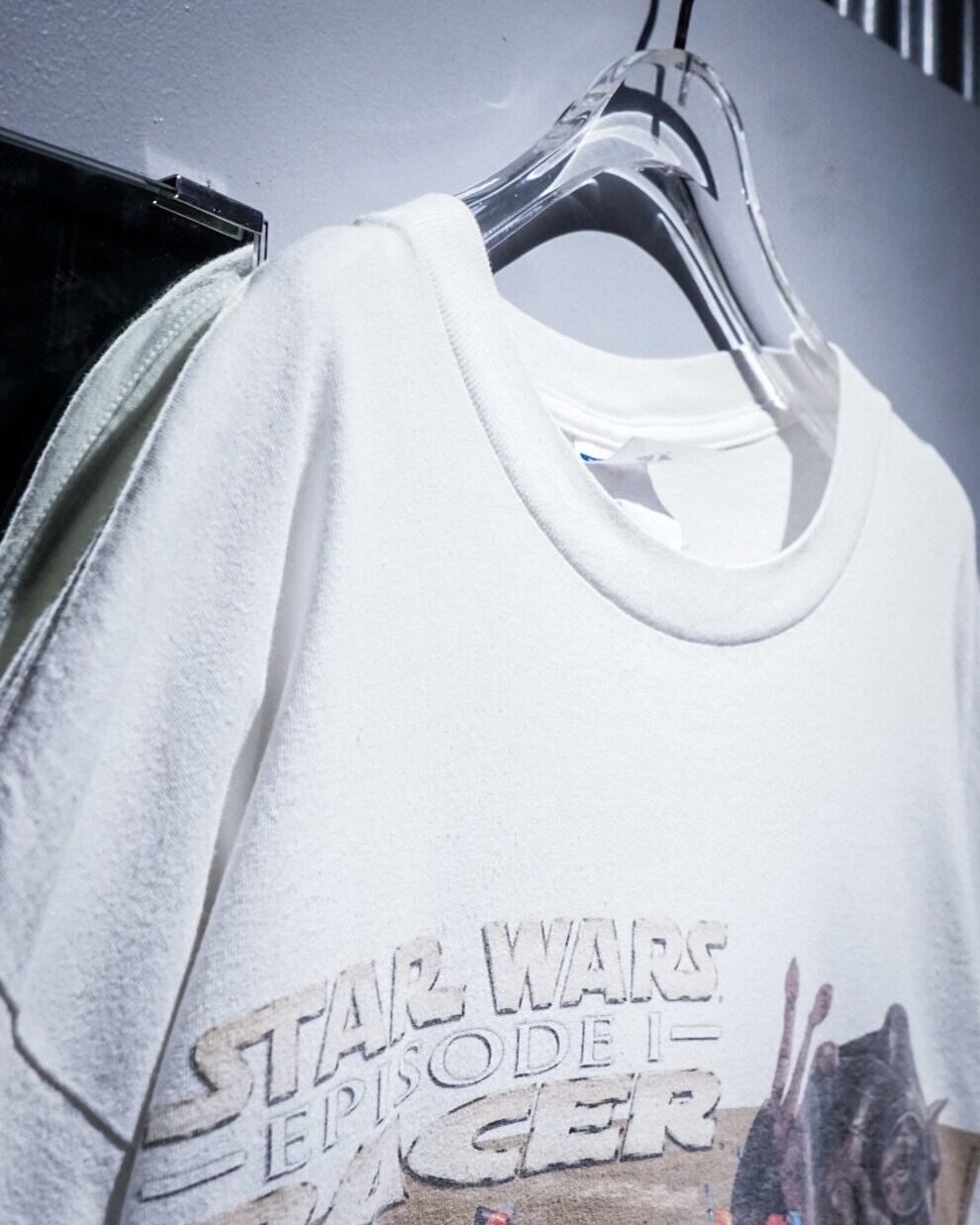 1999年公開、映画では4作目となる、エピソード1 "ファントム・メナス"のレーシングゲーム"STAR WARS -Episode 1- Racer"のTシャツ。