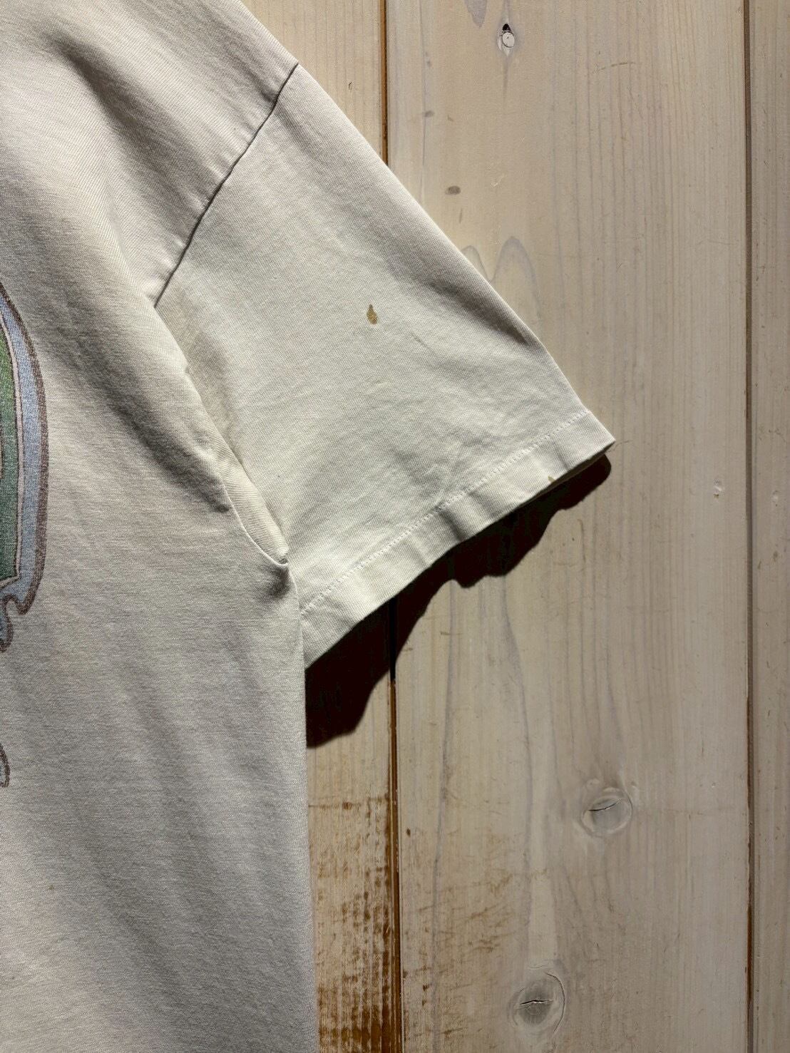 袖シングルステッチの90's 体感Lサイズほどのゆとりを持たせたGOODなサイジングで着用時のシルエットも◎