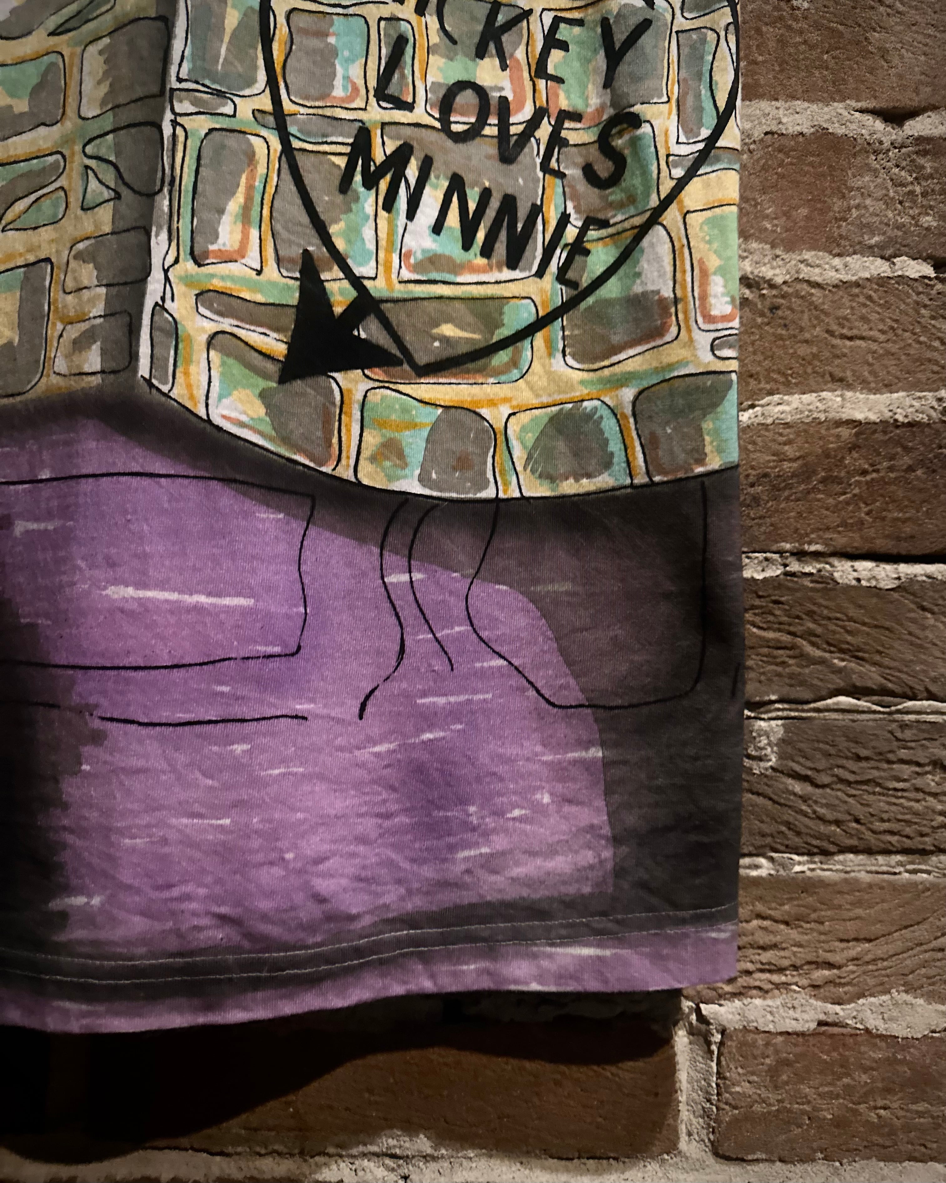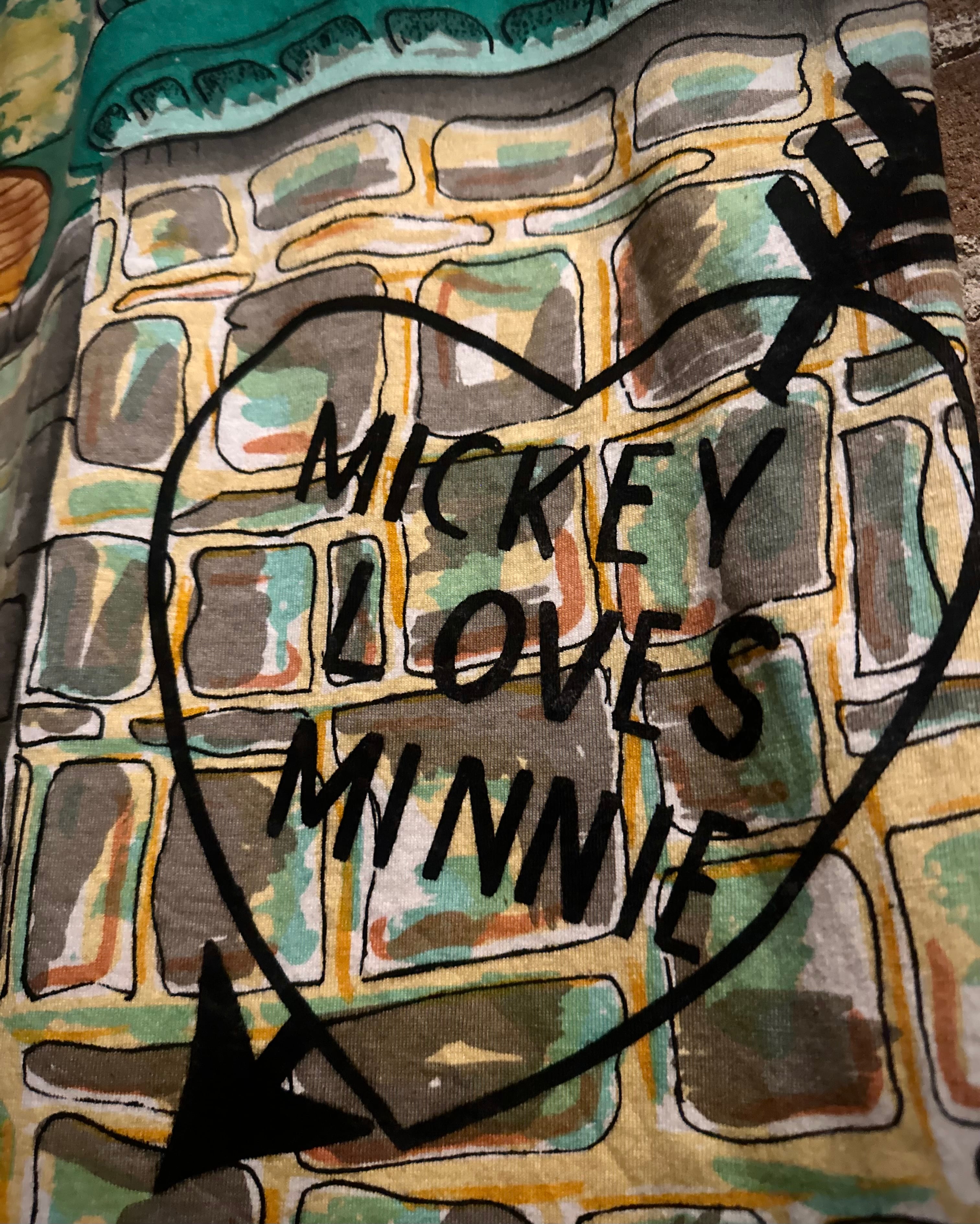手書き風のタッチで、ミッキー&ミニーのデザインを描いたTシャツ。