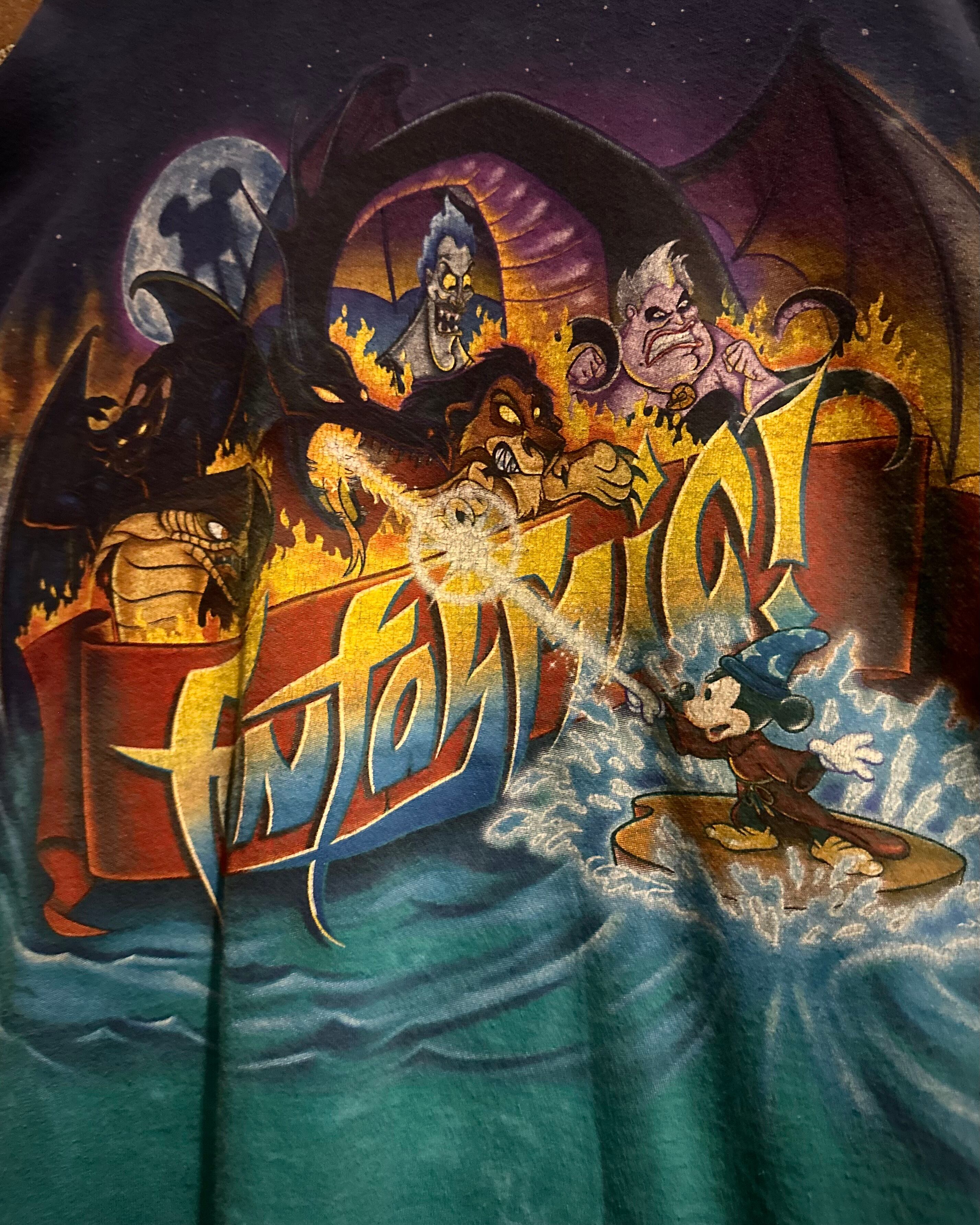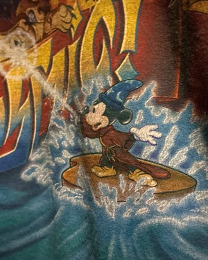 魔法使いの弟子に扮した"ミッキー"が、敵である"ヴィランズ"と戦う姿をデザイン。プリントと、グラデーションがかった染めによって表現されたデザインは非常にクオリティの高い仕上がりとなっています。