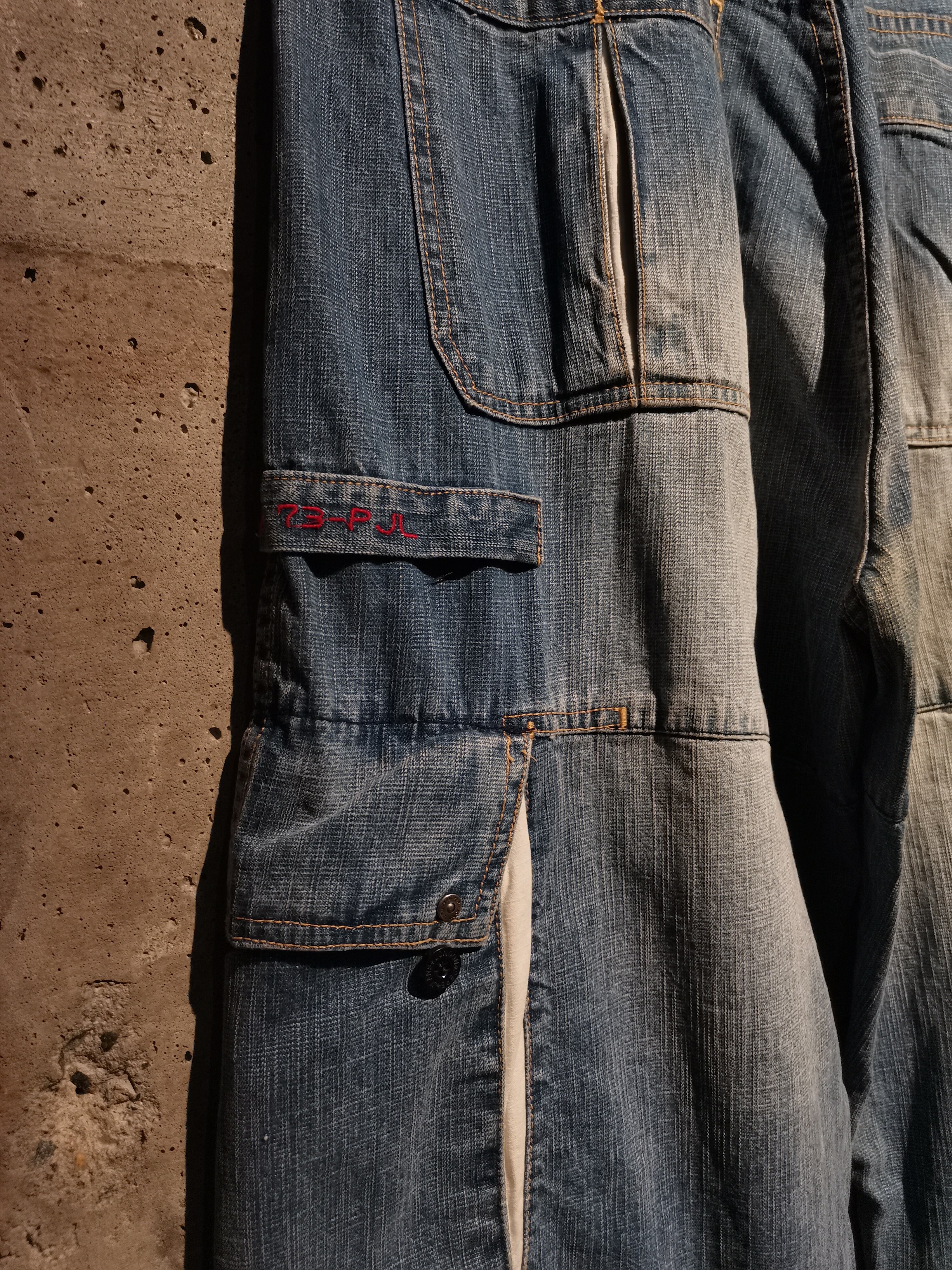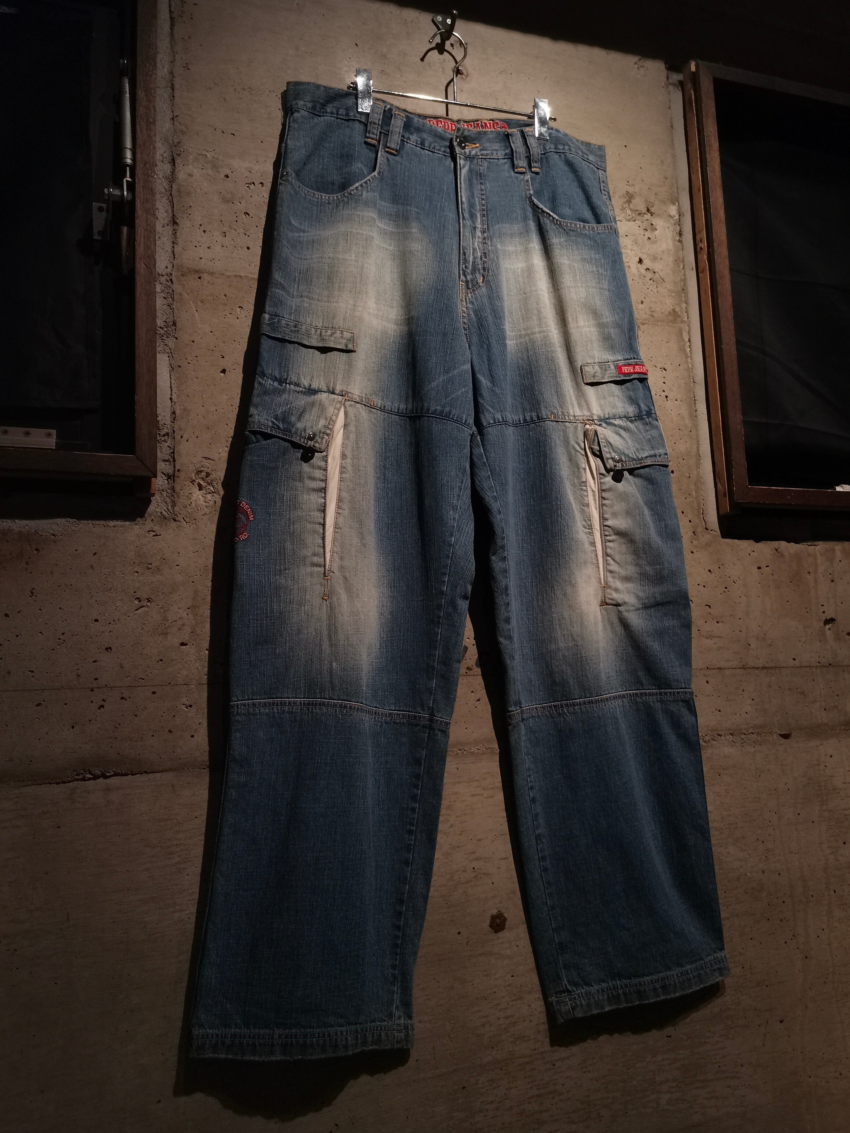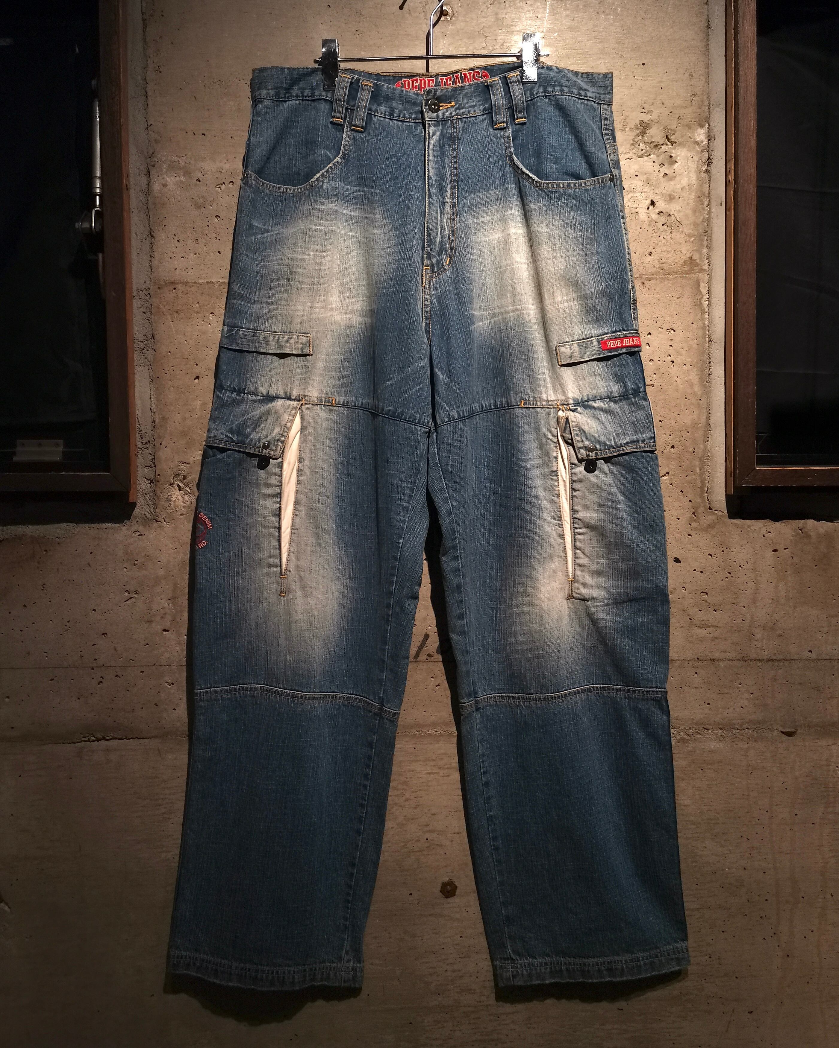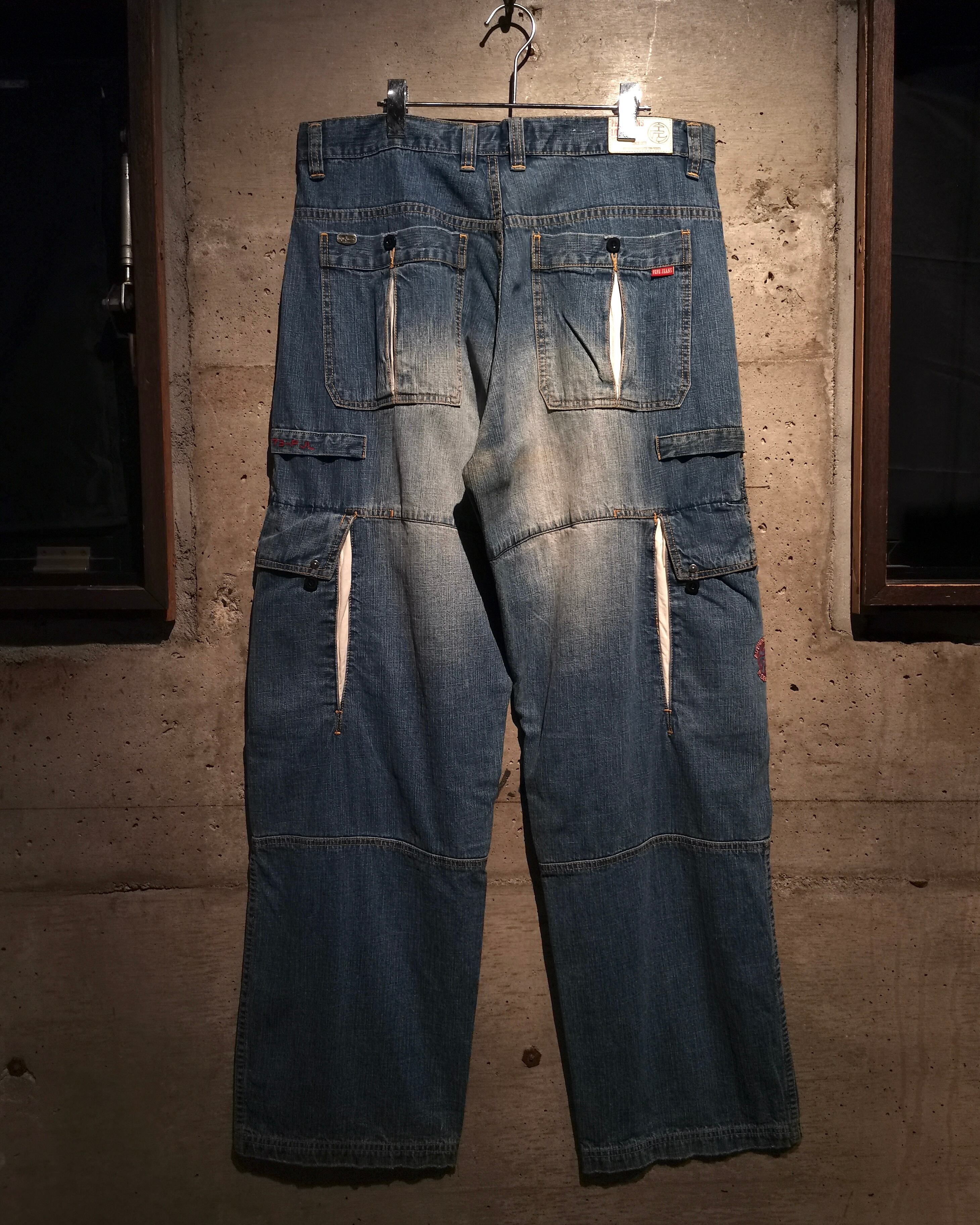 ウエストから裾にかけてズドンと落ち感の良いストレートシルエット。バギーはテーパードがかったモノが多い中、こんな好デザイン、良シルエットの個体に出会えるのは非常に稀です。