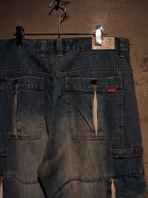 ポケット部分にはスリットが施され、デザインに立体感をプラス。フェード加工と相まって立体感が生まれ存在感も抜群。背面ウエストのロゴパッチのアクセントも◎