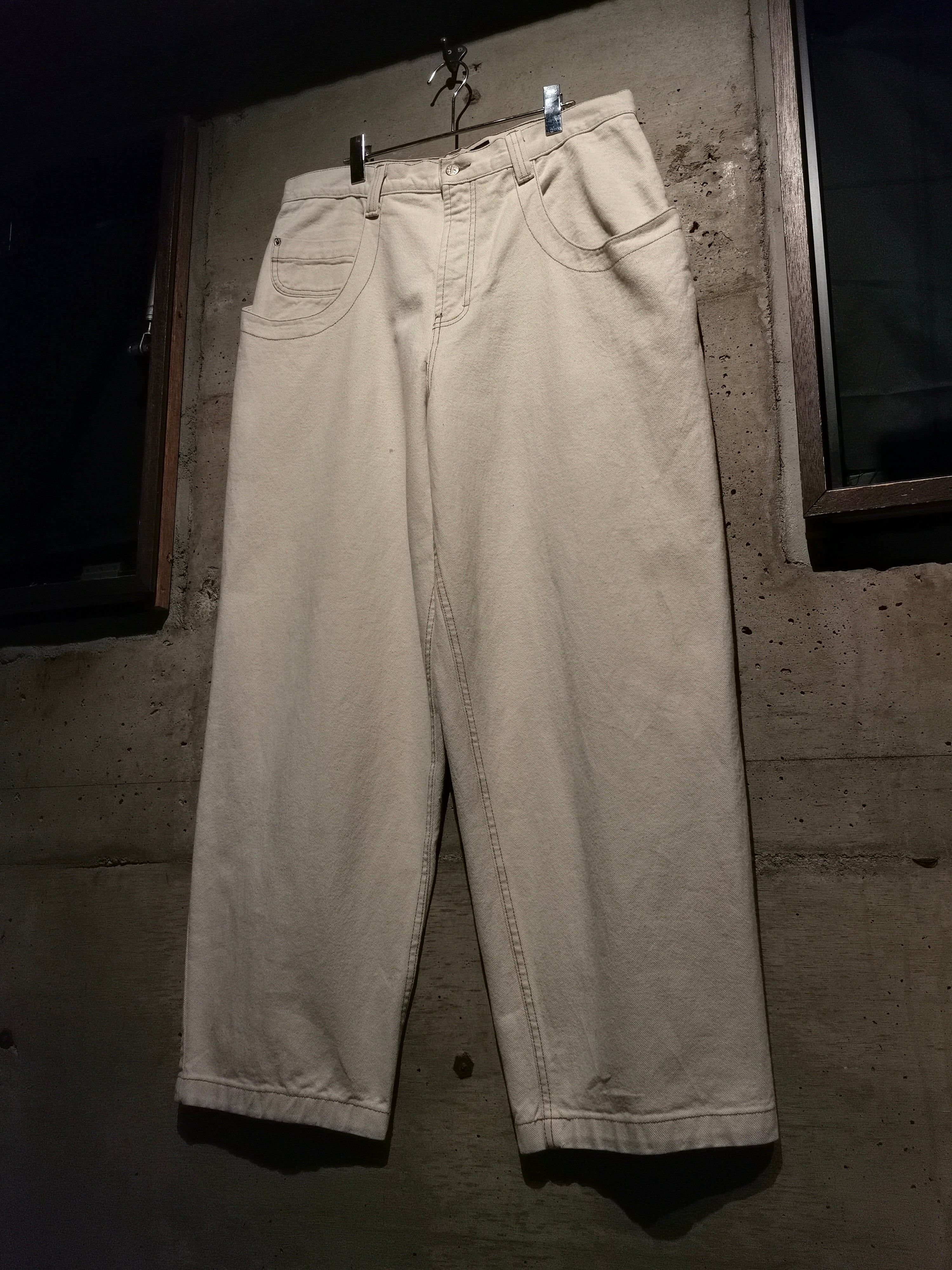 フロントにはスラッシュポケットに、カルチャーを感じられる深めのバックポケット。デニムの質感と38×32のワイドなサイジングから生まれる、立体感のあるシルエットに目と心の双方を射抜かれます、、、