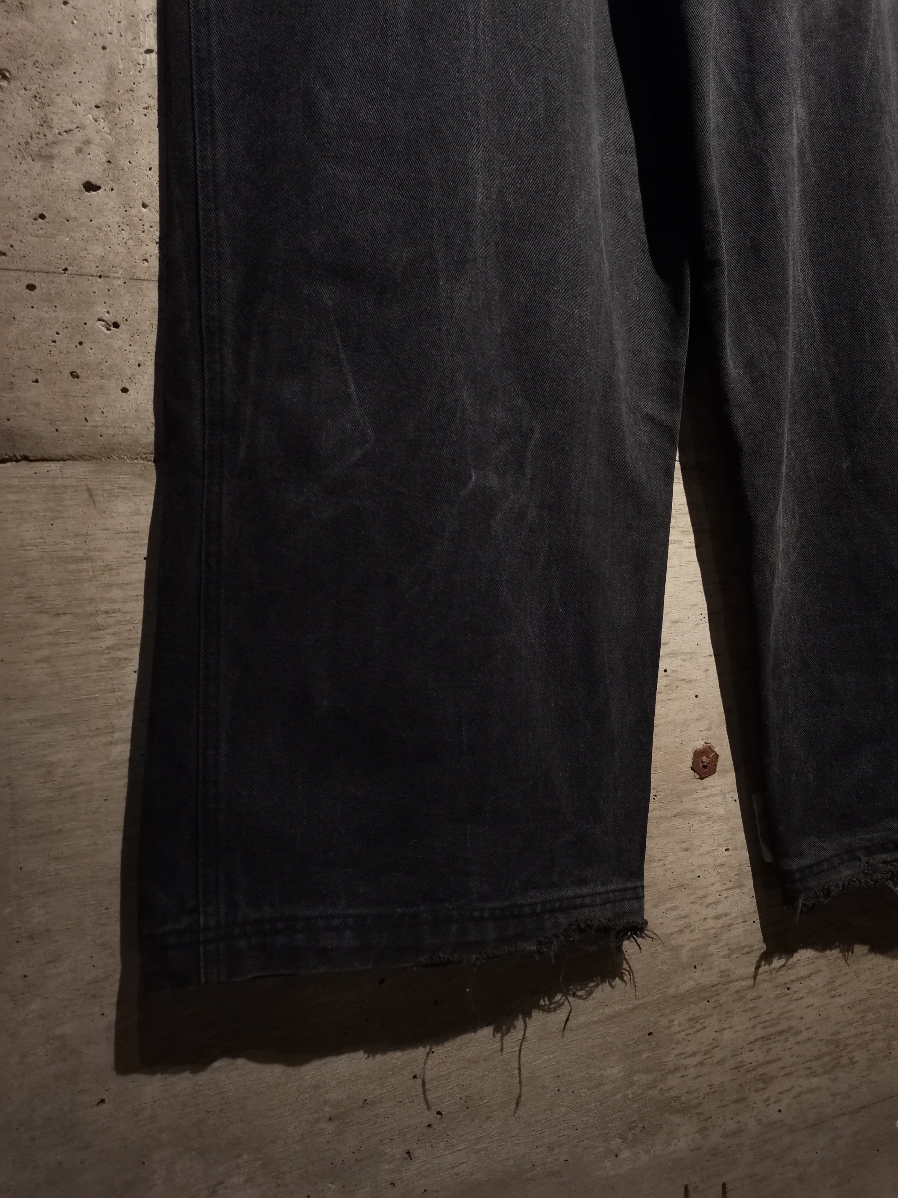 経年変化によってフェードしたブラックデニムのバギーパンツ。