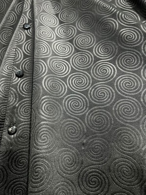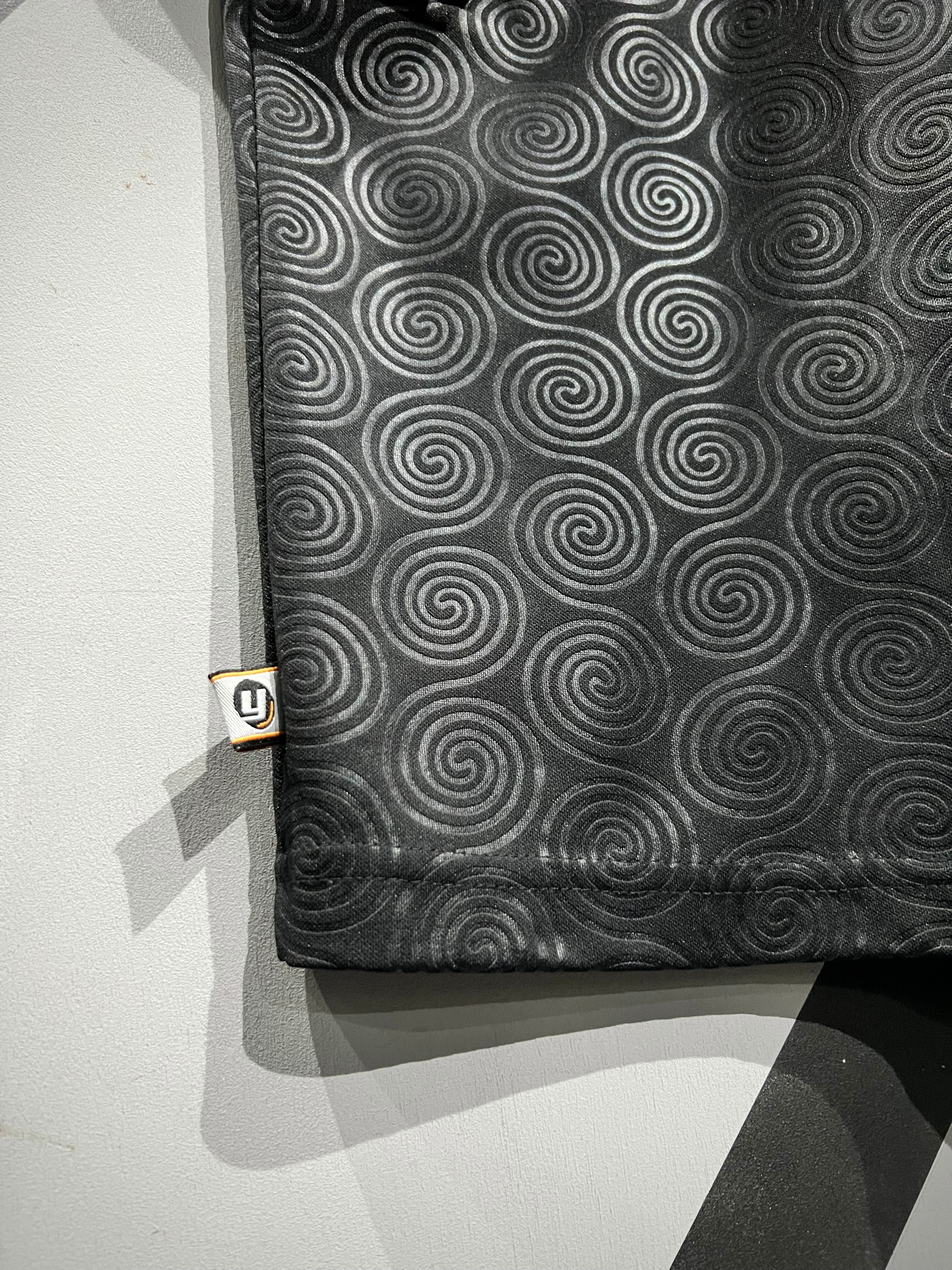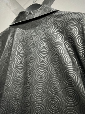 オールブラックながらもボディの質感や立体的に映し出された渦が奥行きのある見栄えを演出。当店らしいモードな雰囲気と高いクオリティを兼ね備えた当店らしい一品。