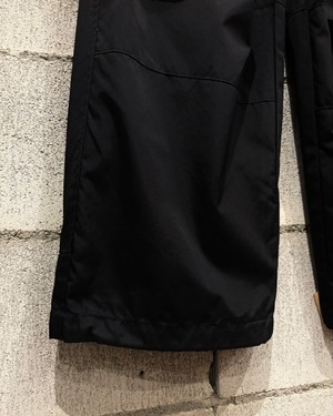 ブラックのボディをベースに、フロントにフラップポケットのギミックを載せたナイロンパンツ。