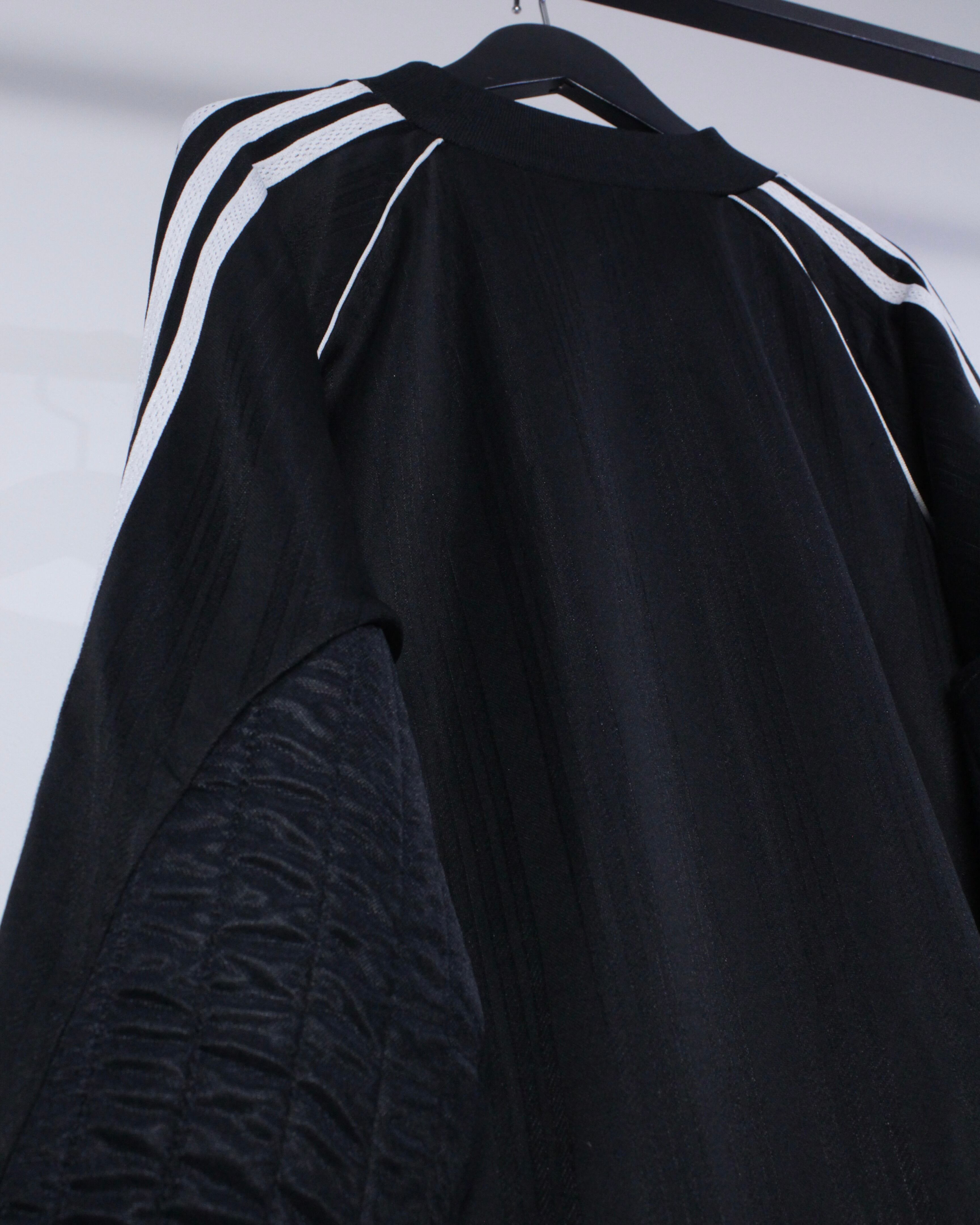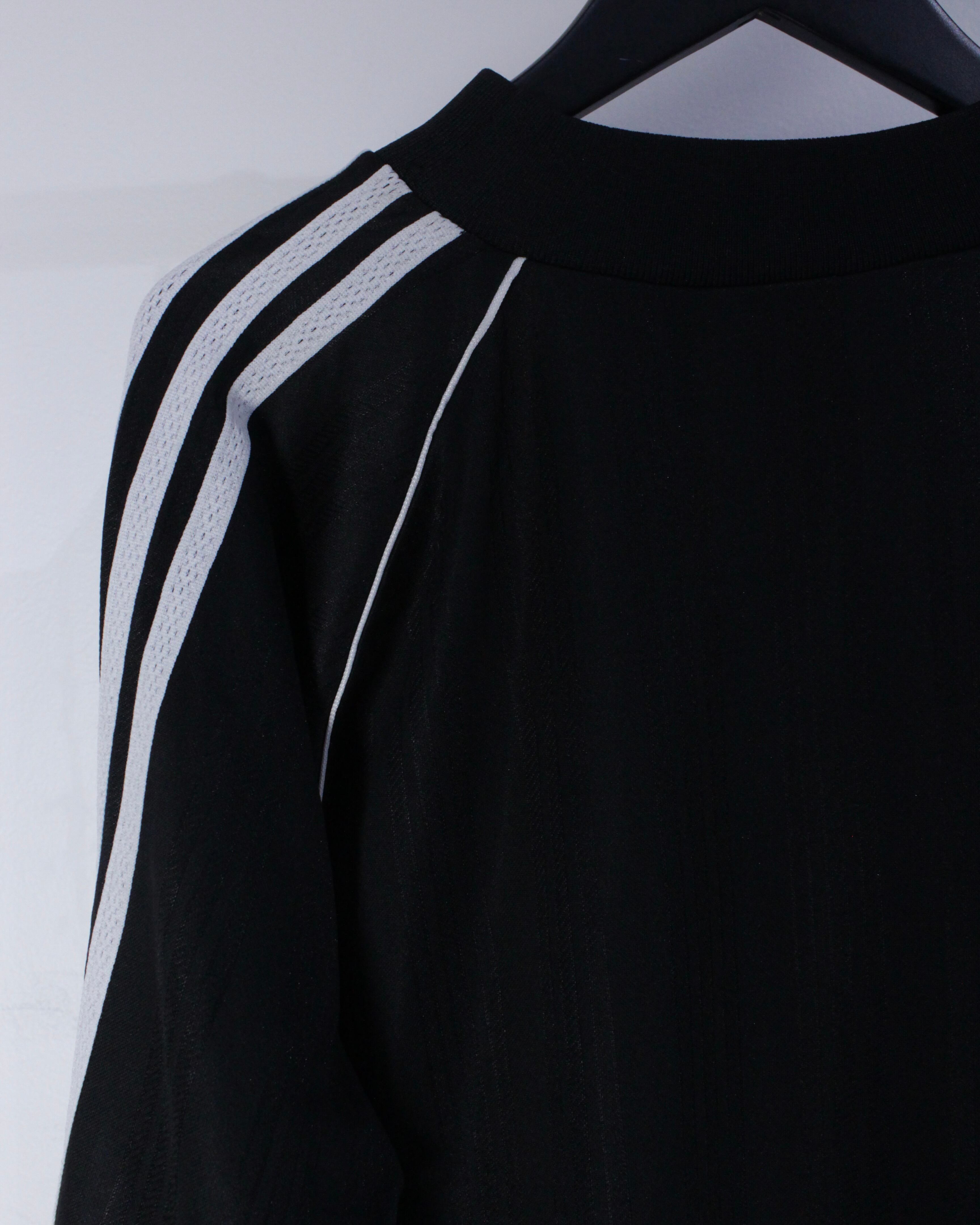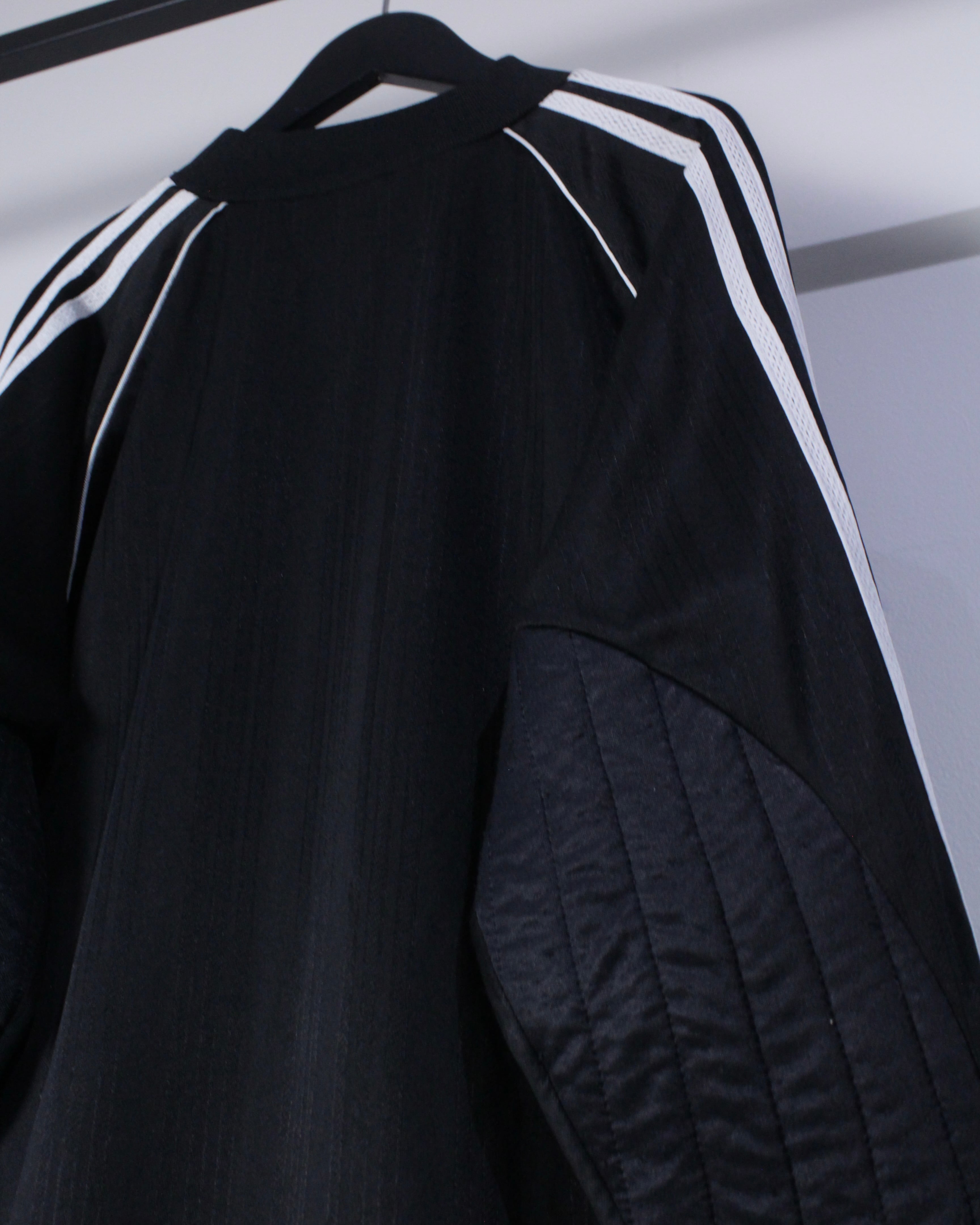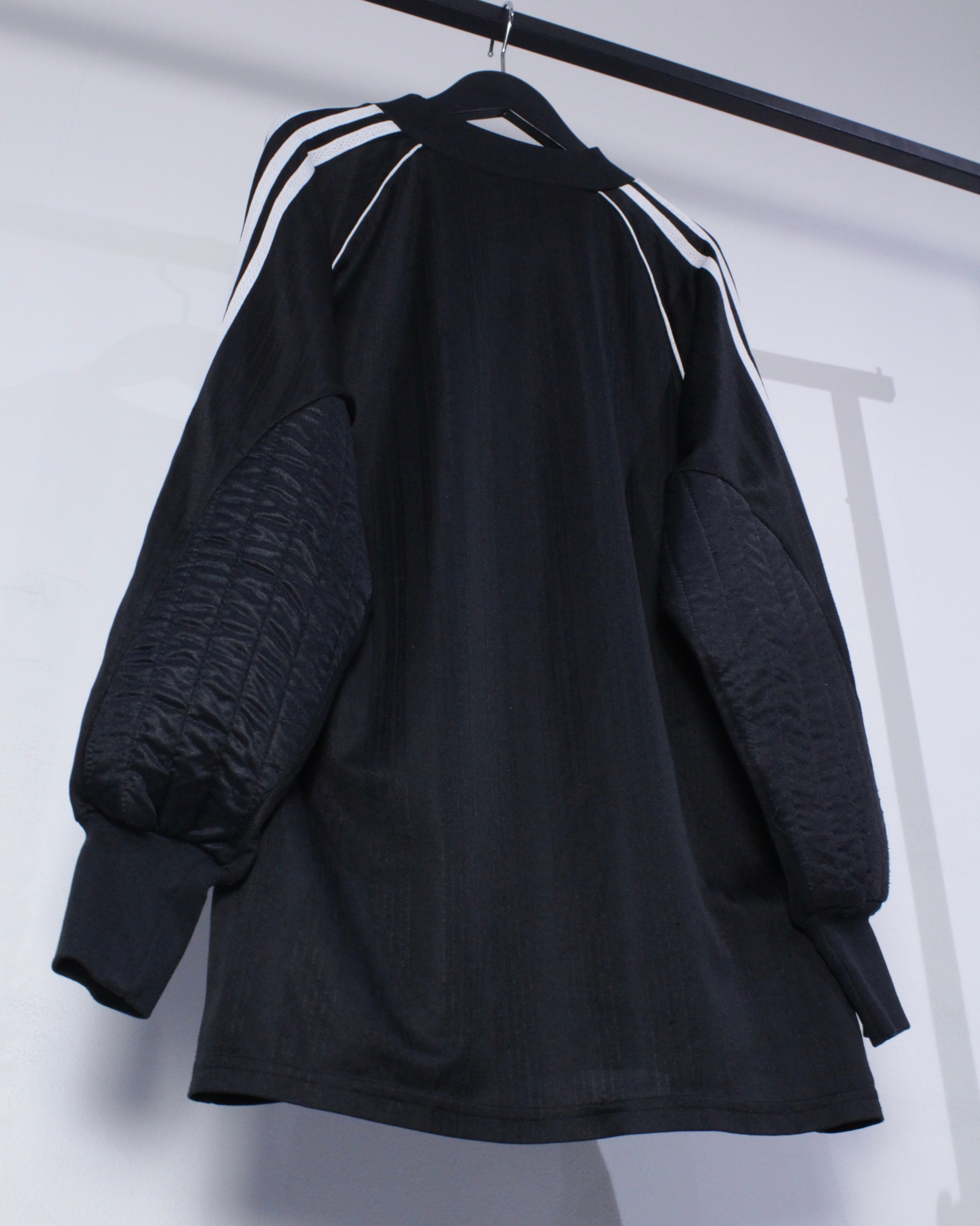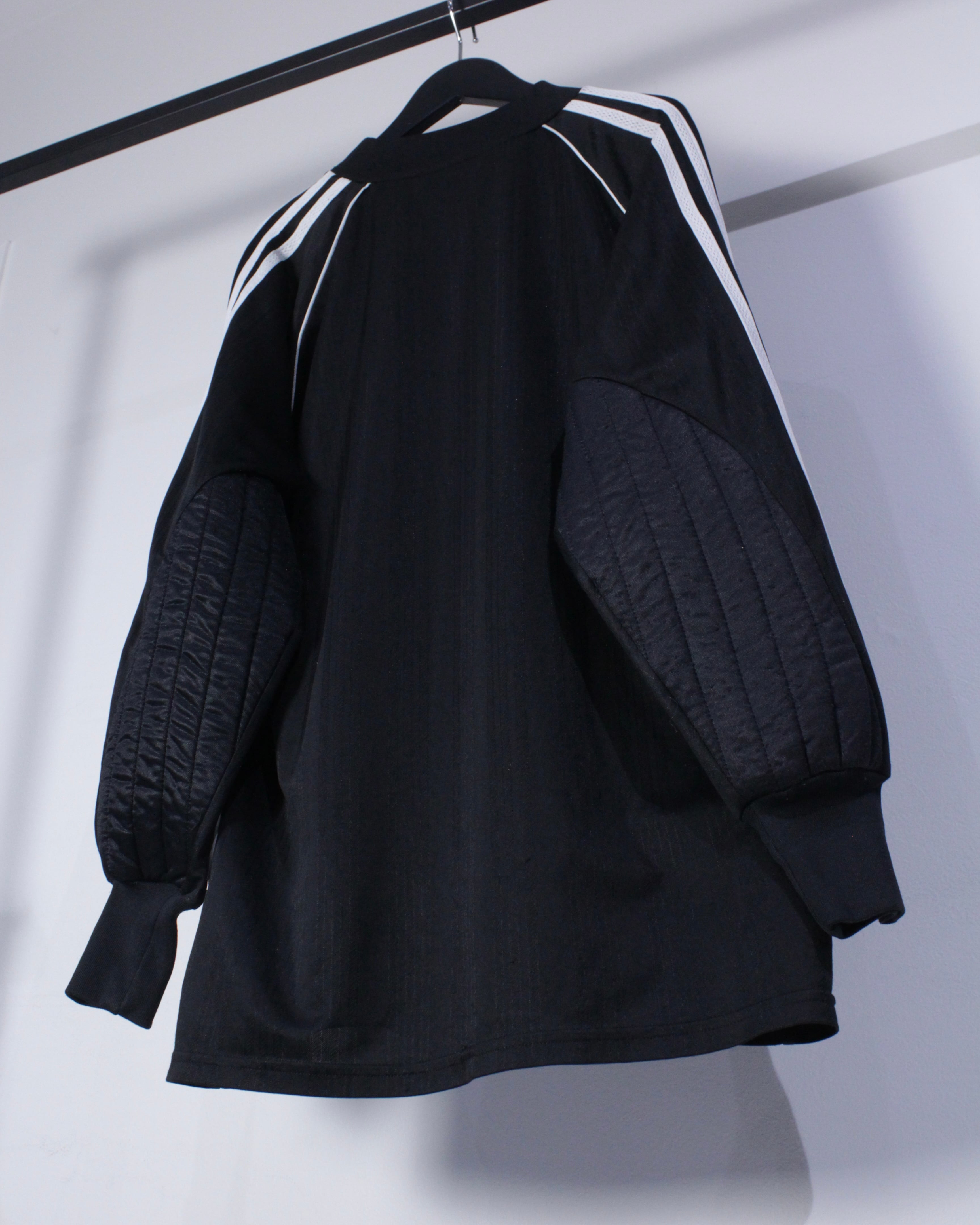 ブラックのボディにはさらに織りで3ストライプスを載せ、光の当たり加減で浮き上がる様な仕上がり。肘にはパッドが備わっており、ゴールキーパーのユニフォームらしい立体感のあるディテールも魅力的ですね。