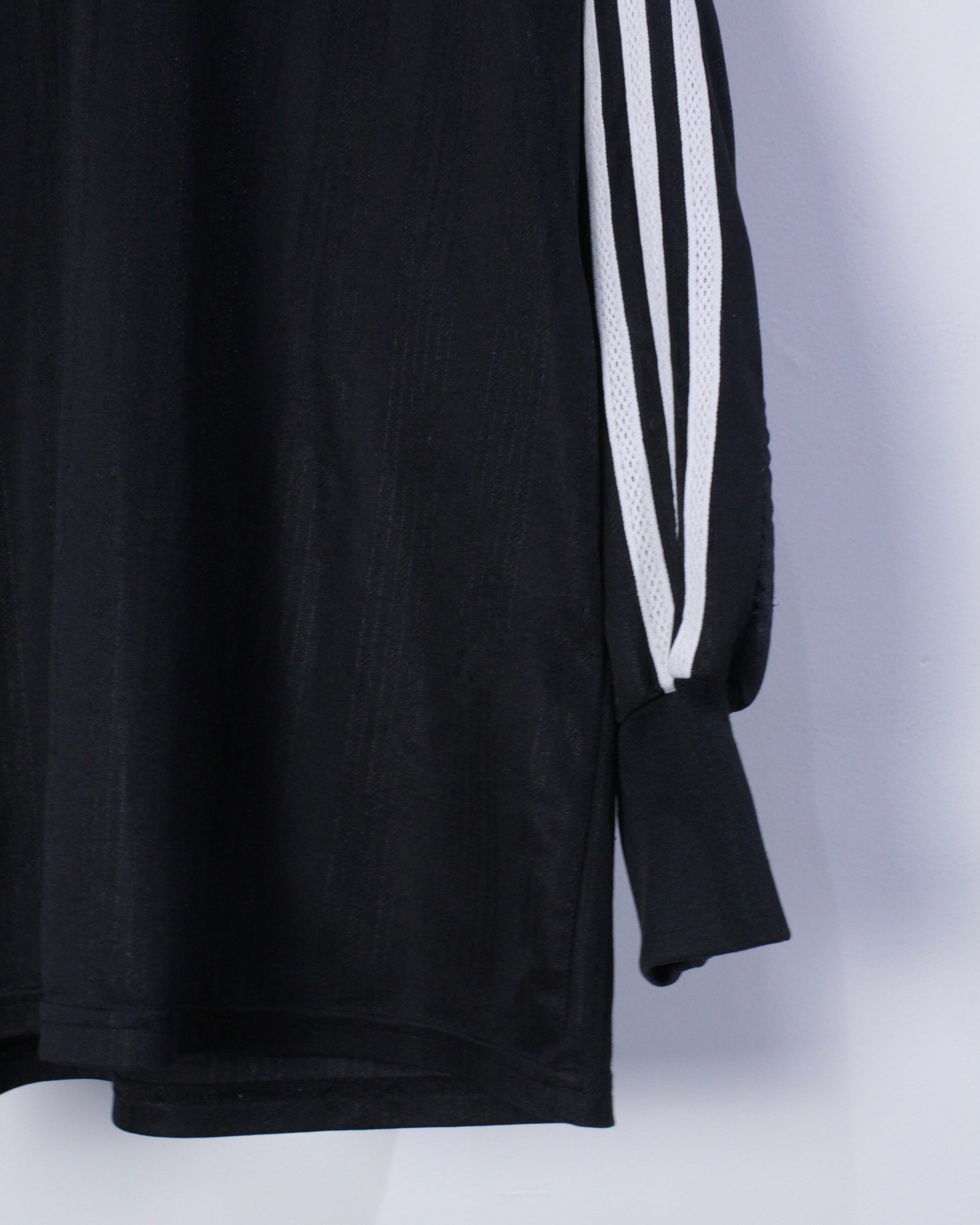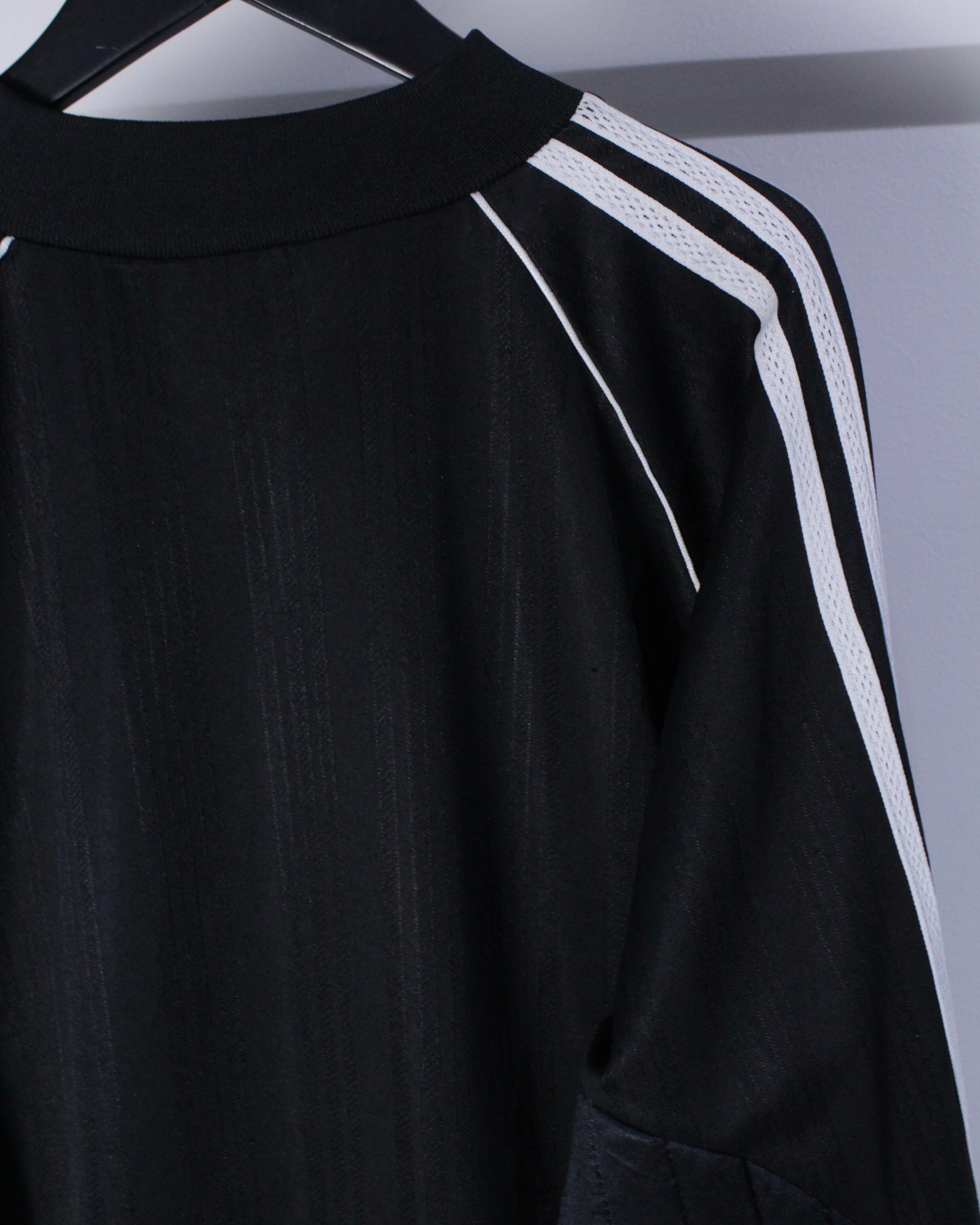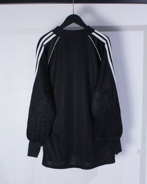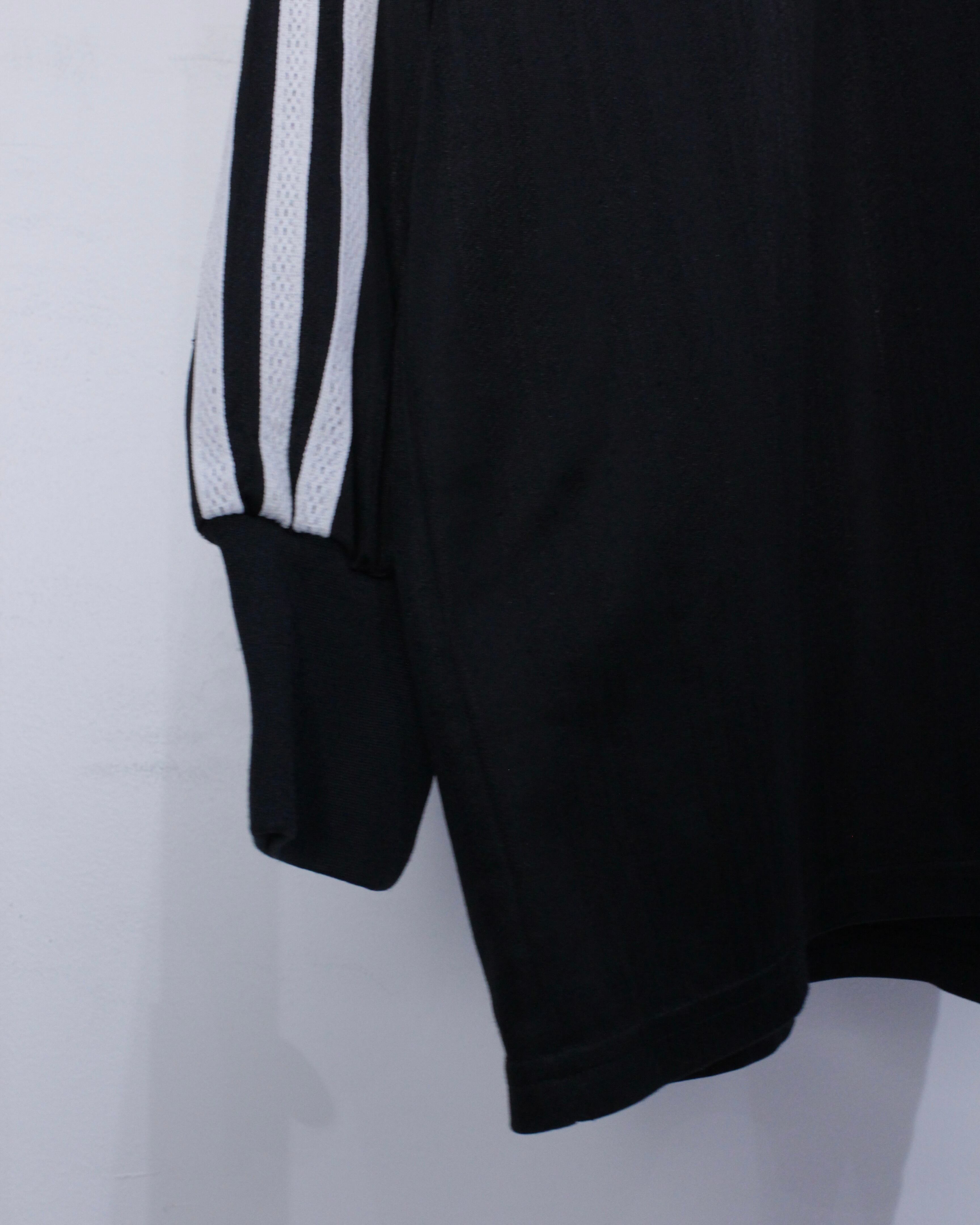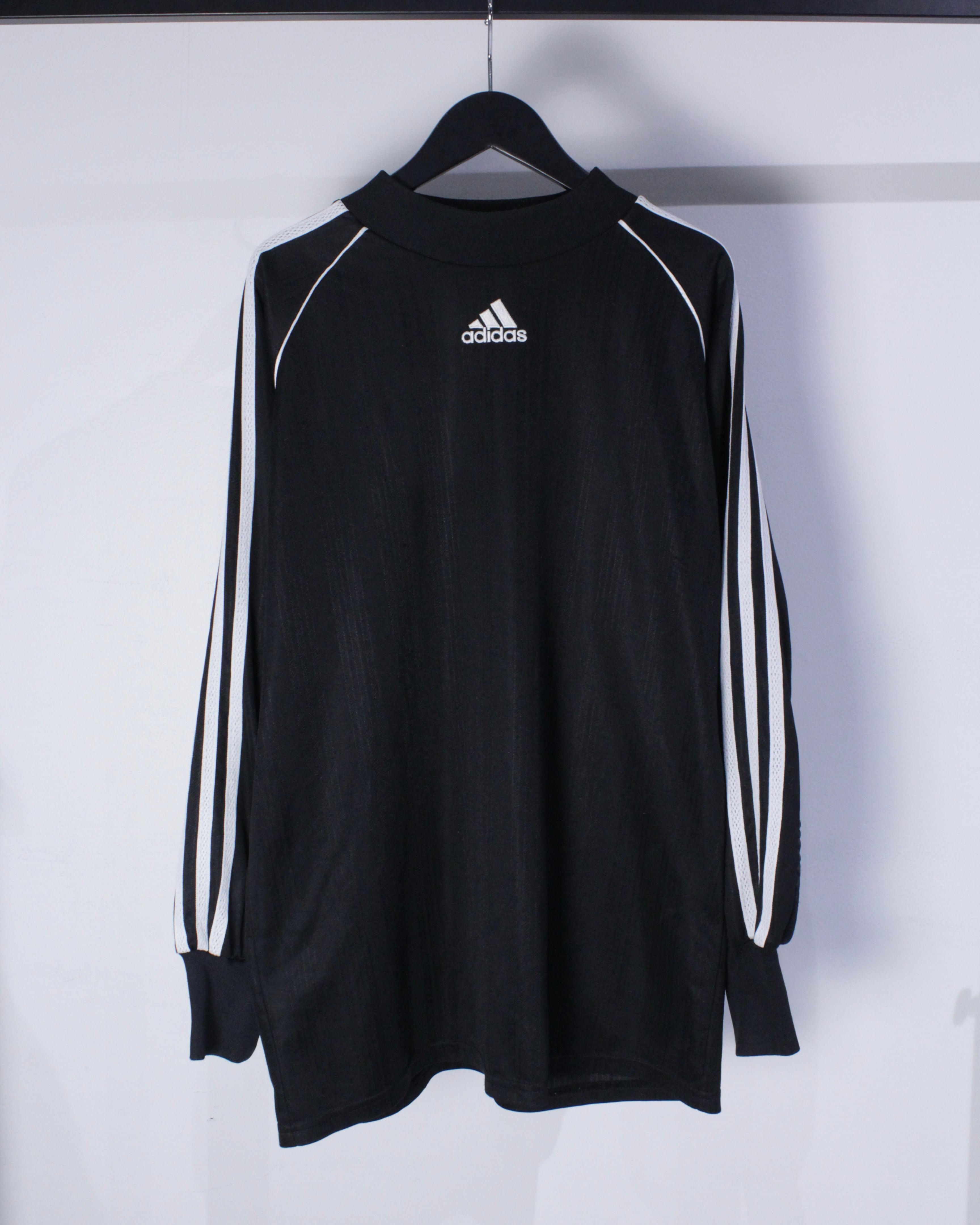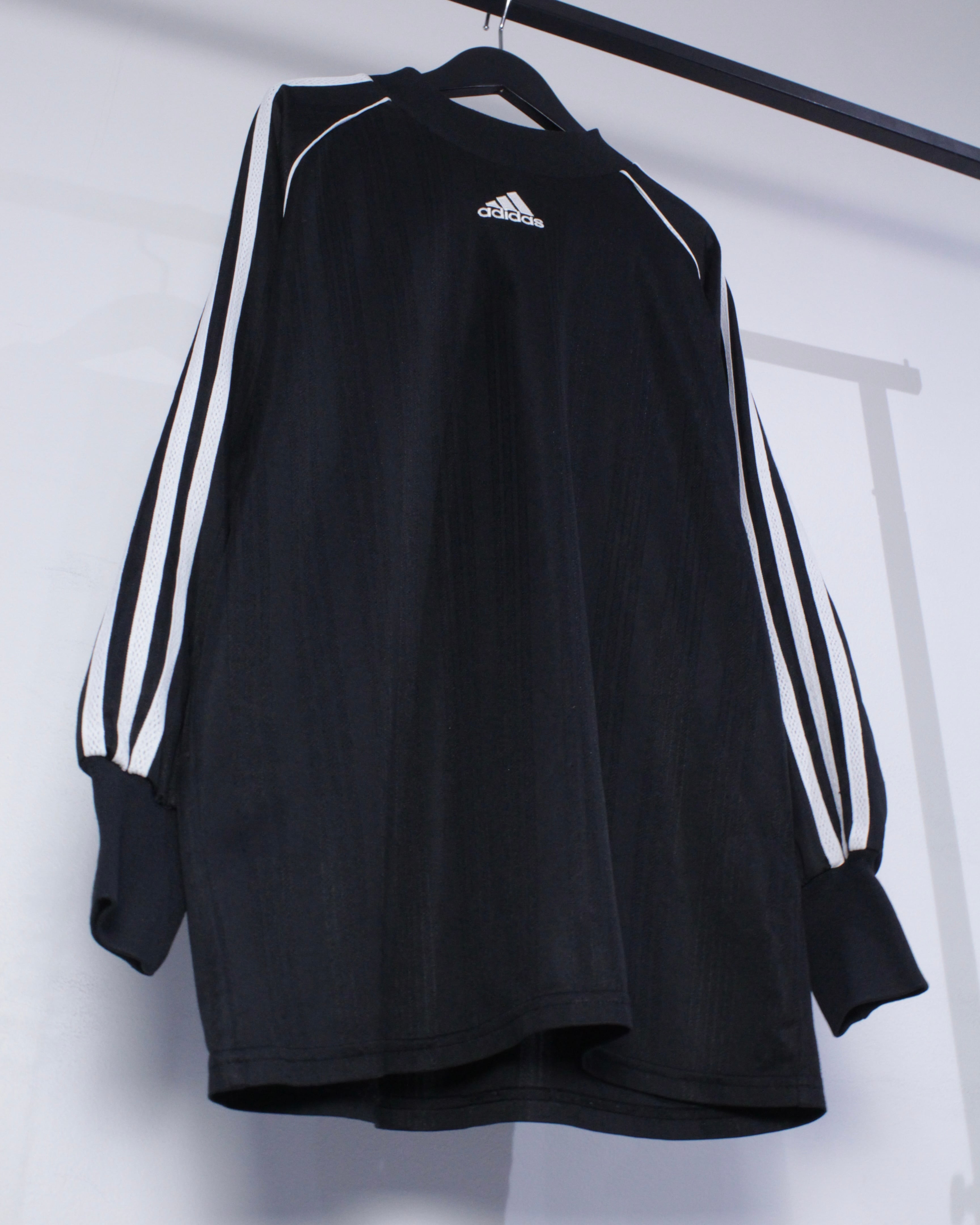 ブラックのボディにはさらに織りで3ストライプスを載せ、光の当たり加減で浮き上がる様な仕上がり。肘にはパッドが備わっており、ゴールキーパーのユニフォームらしい立体感のあるディテールも魅力的ですね。