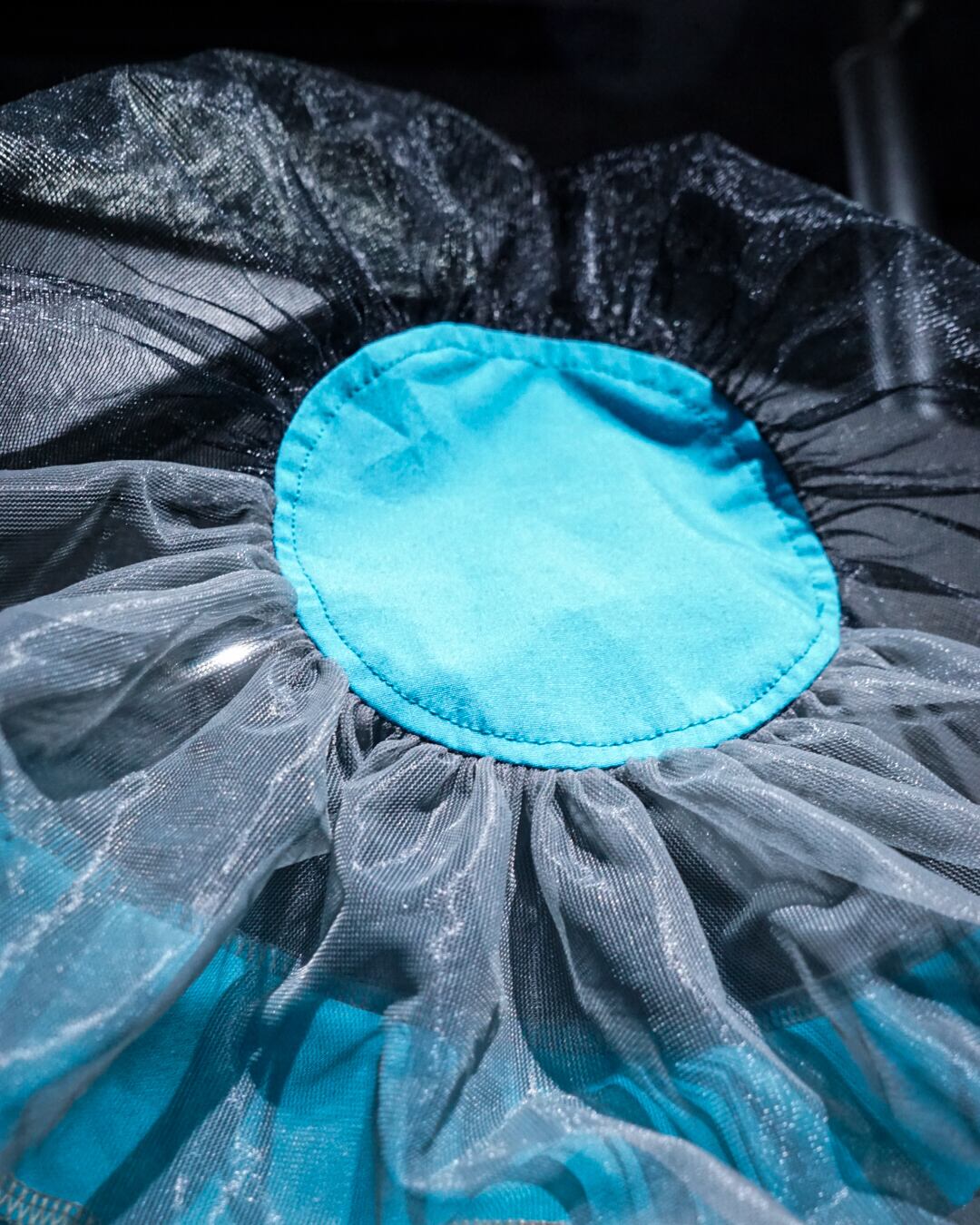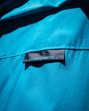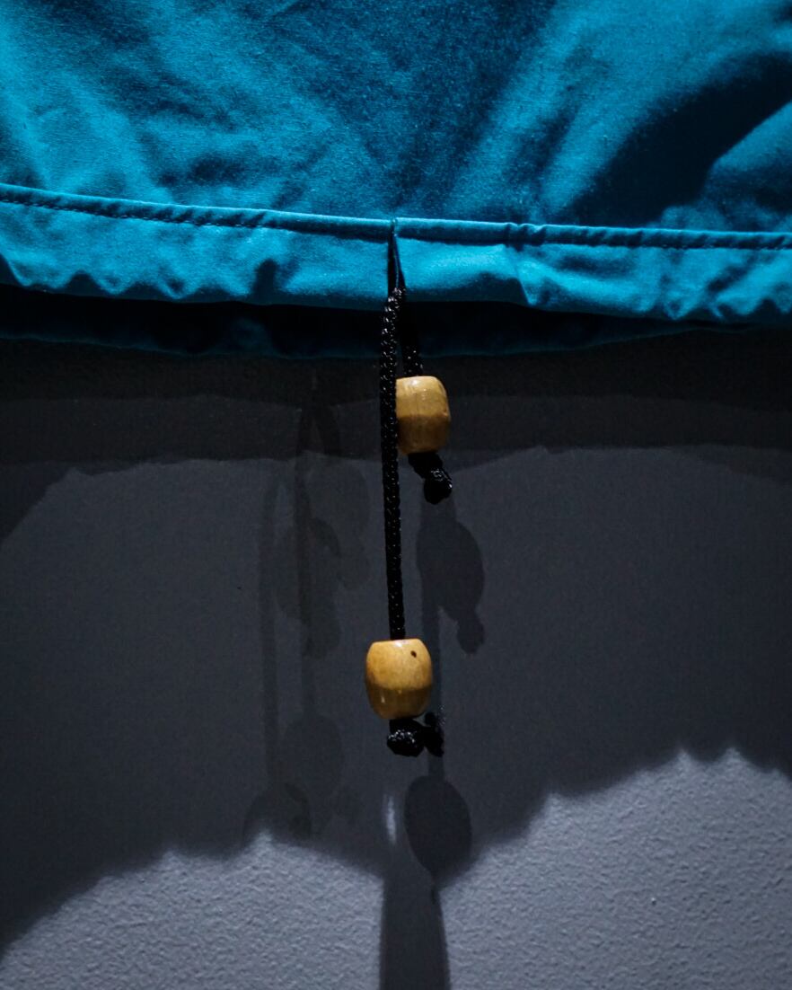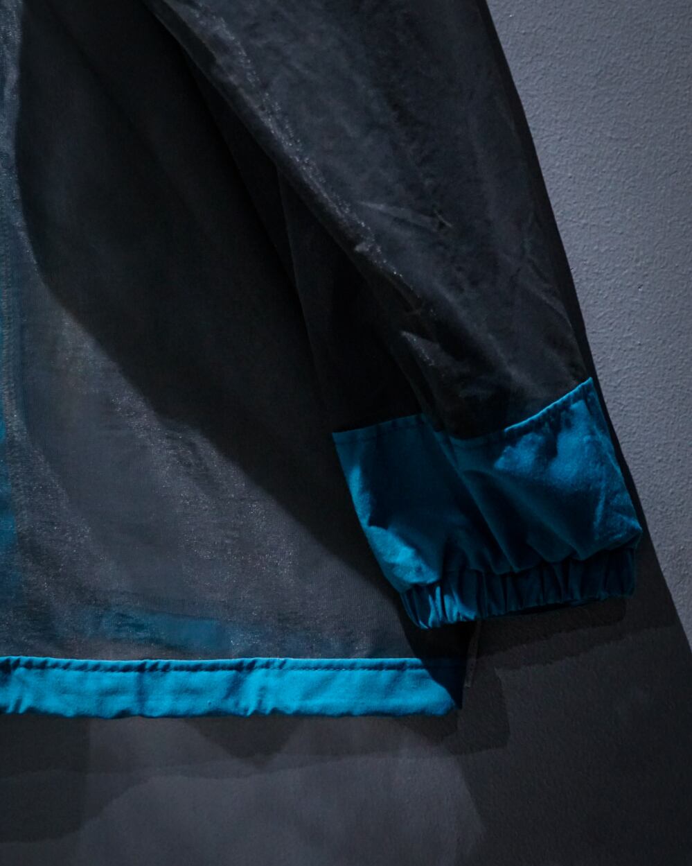 ハリのあるライトブルーのボディをベースに、各所がメッシュ素材に切り替えられ、そこにフラップポケットが取り付けられたレアカラーのバグジャケット。