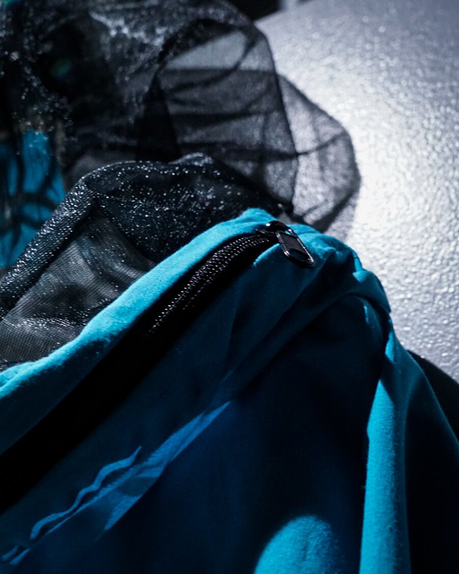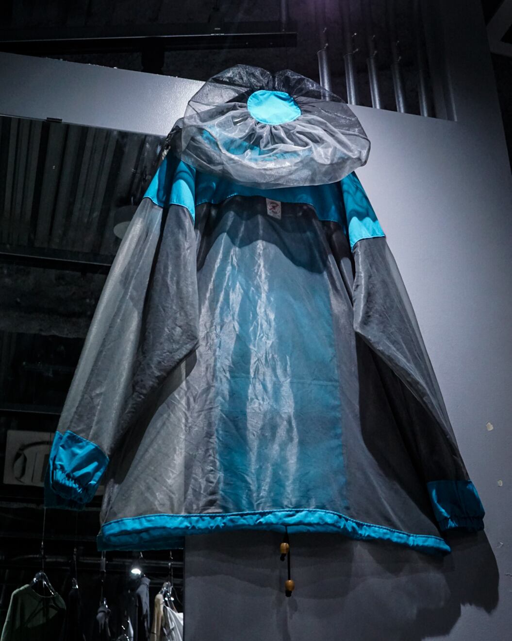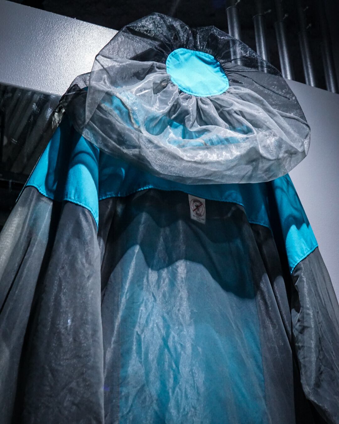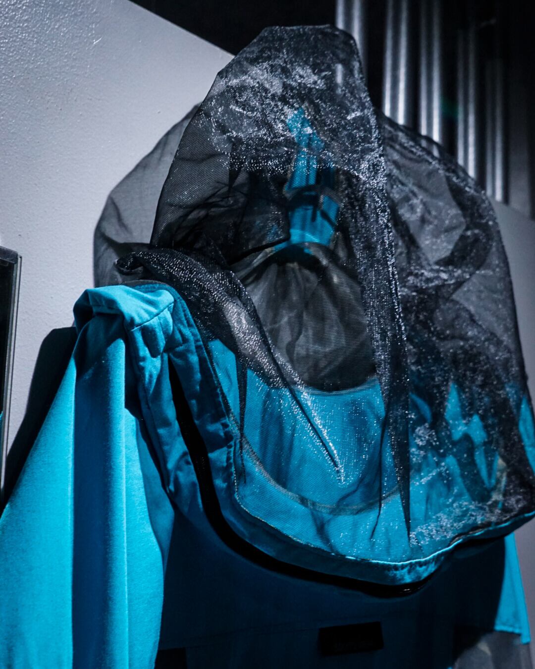 トレッキングや害虫駆除の為に使用される為、被った状態での作業を前提としたフードが施され、この状態で街を歩いていたらまず三度見はしてしまう程の迫力あるデザイン。