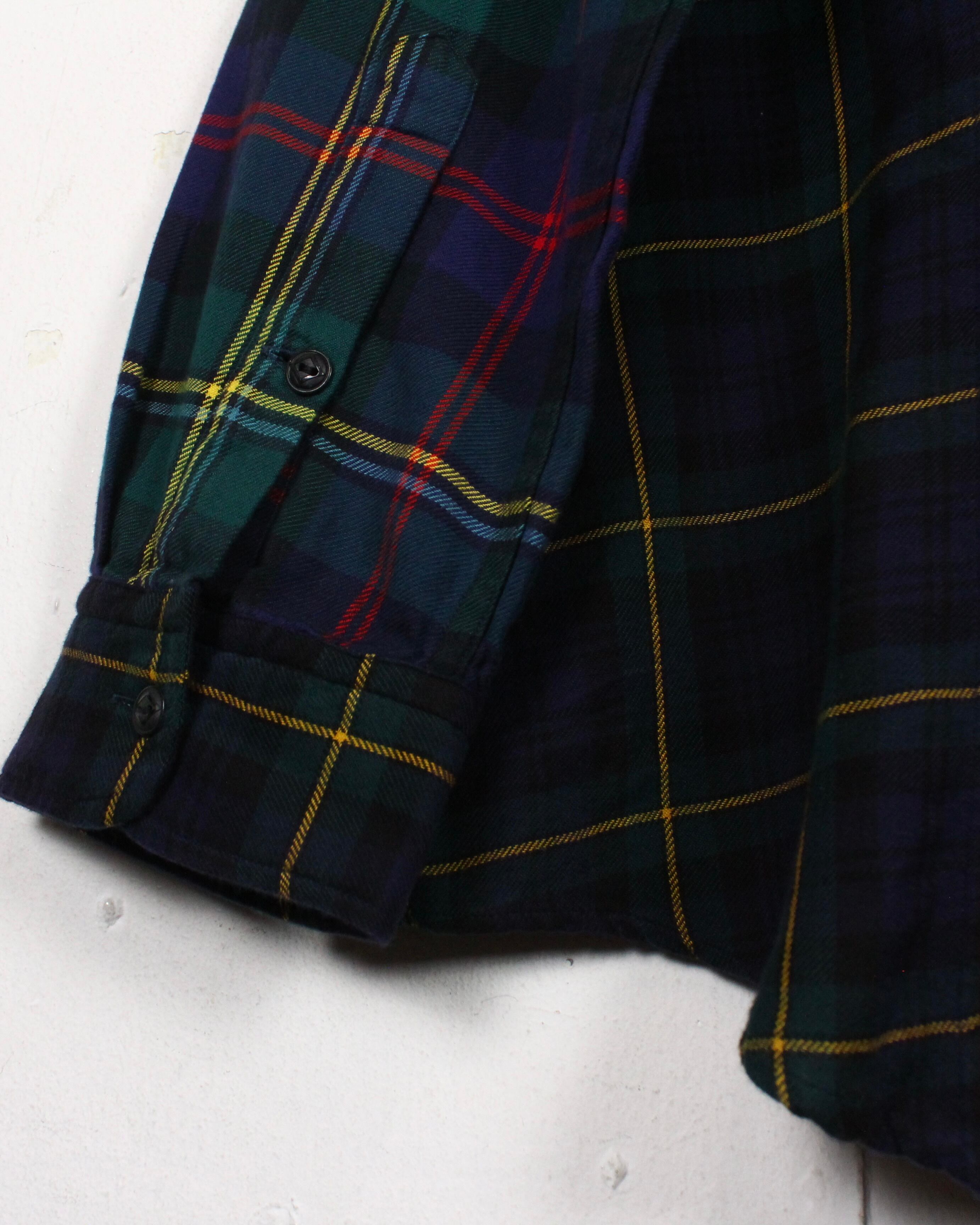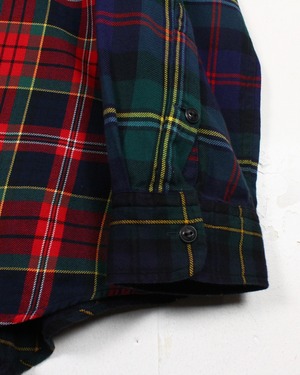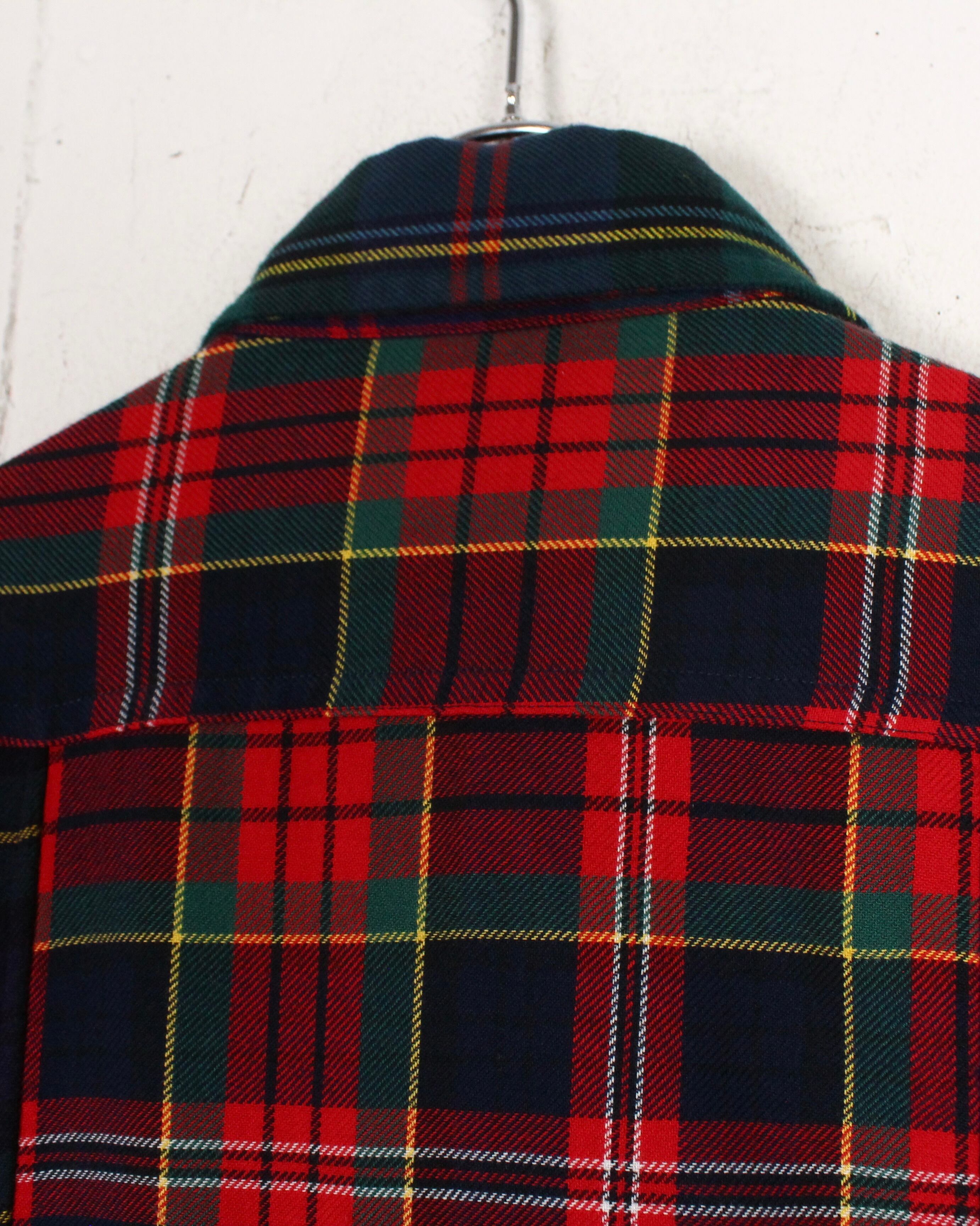 様々なカラーリング、パターンのチェック柄を切り替えたチェックシャツ。