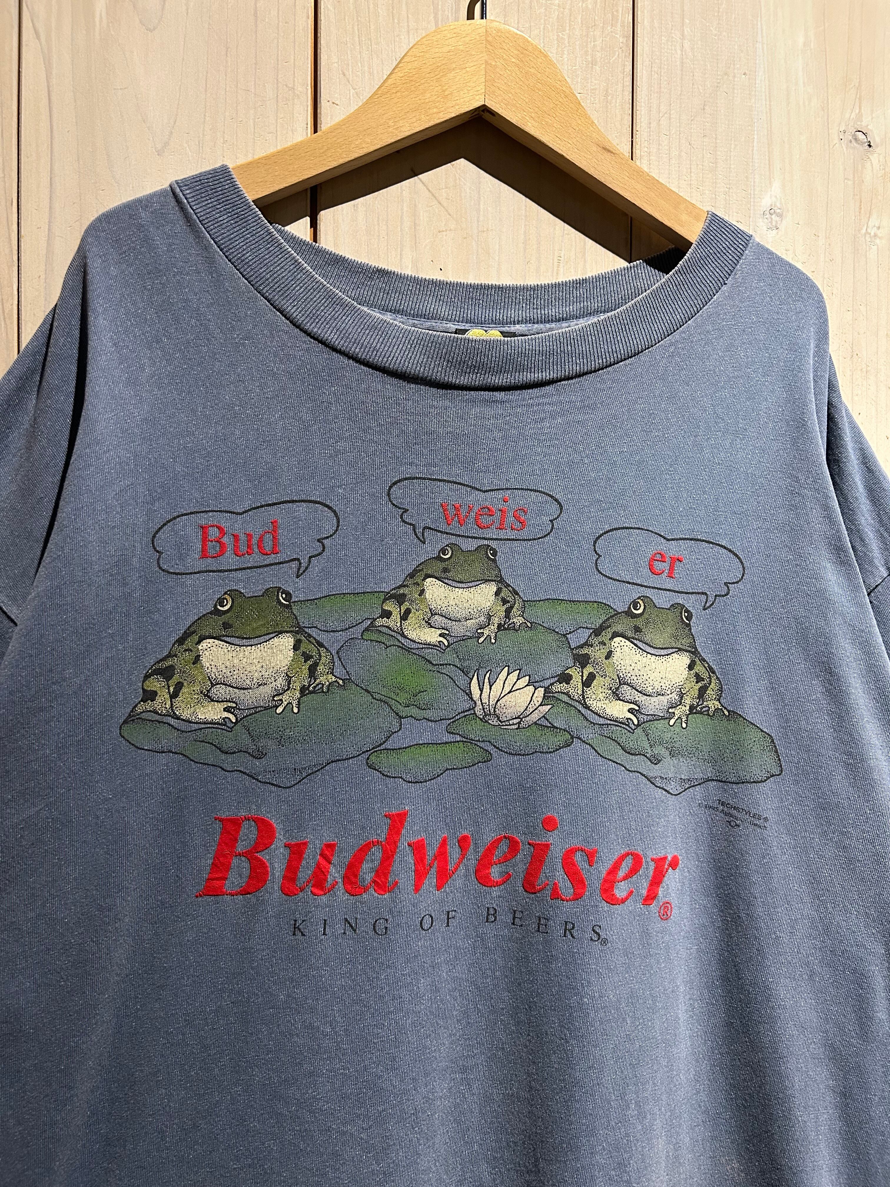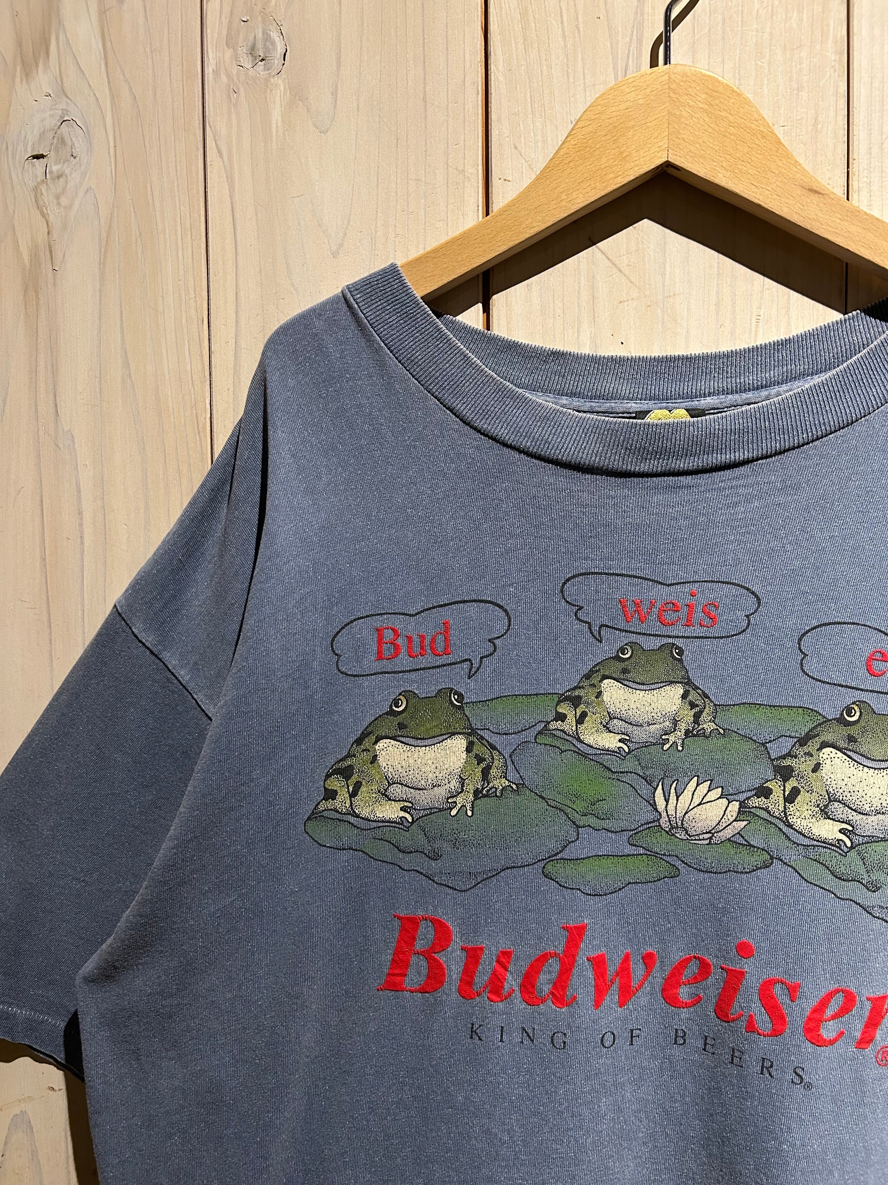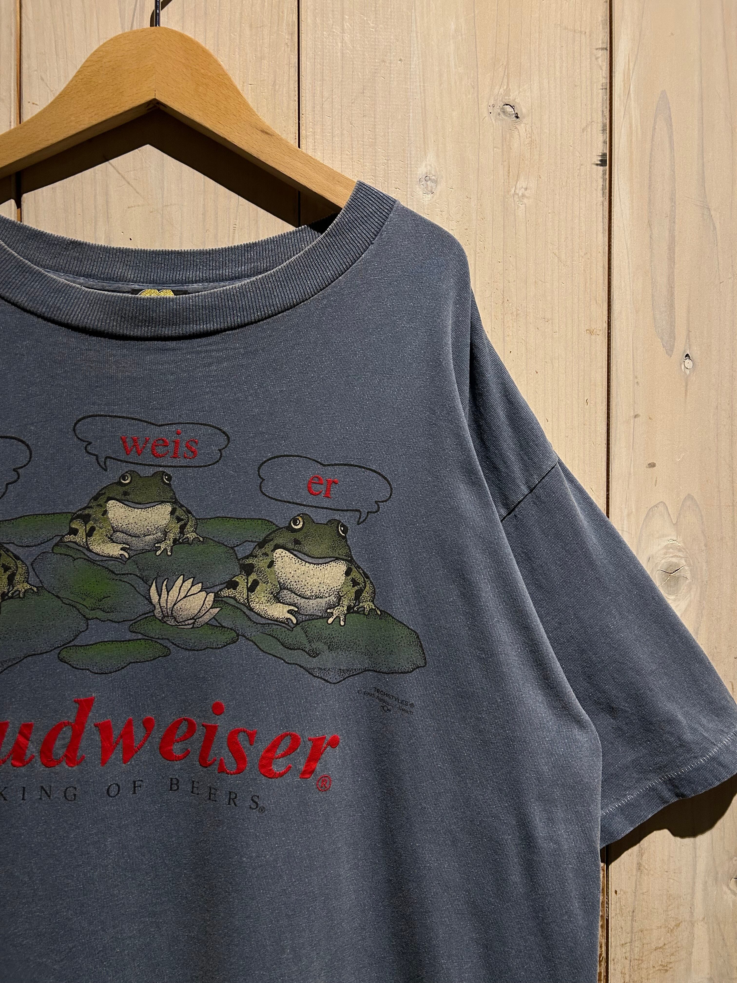 タバコや酒といった嗜好品系のヴィンテージTシャツの中でも、Budweiserのカエルシリーズは特に人気が高く、サイズ、デザイン、コンディションを併せ持った稀少な1着です。