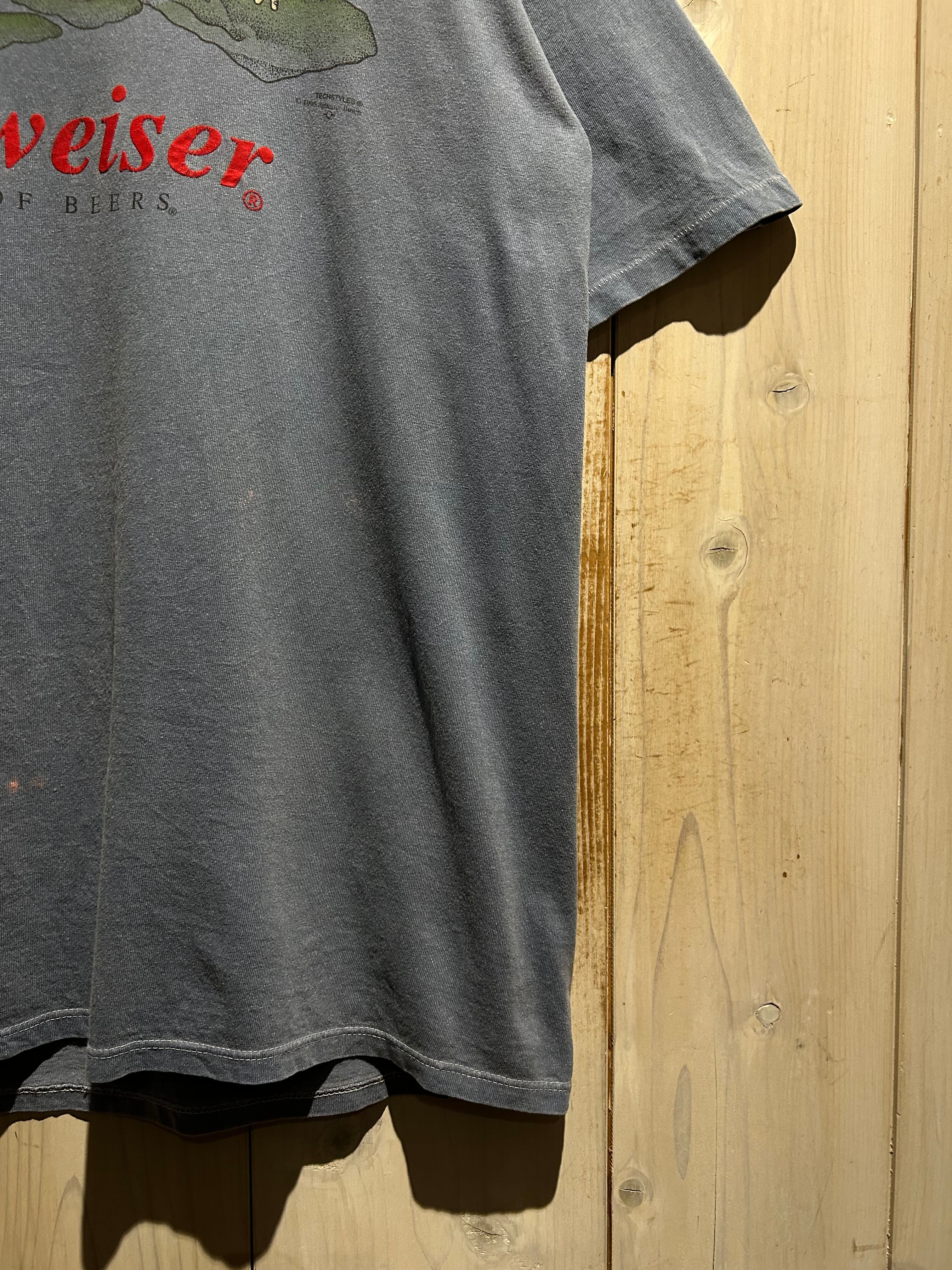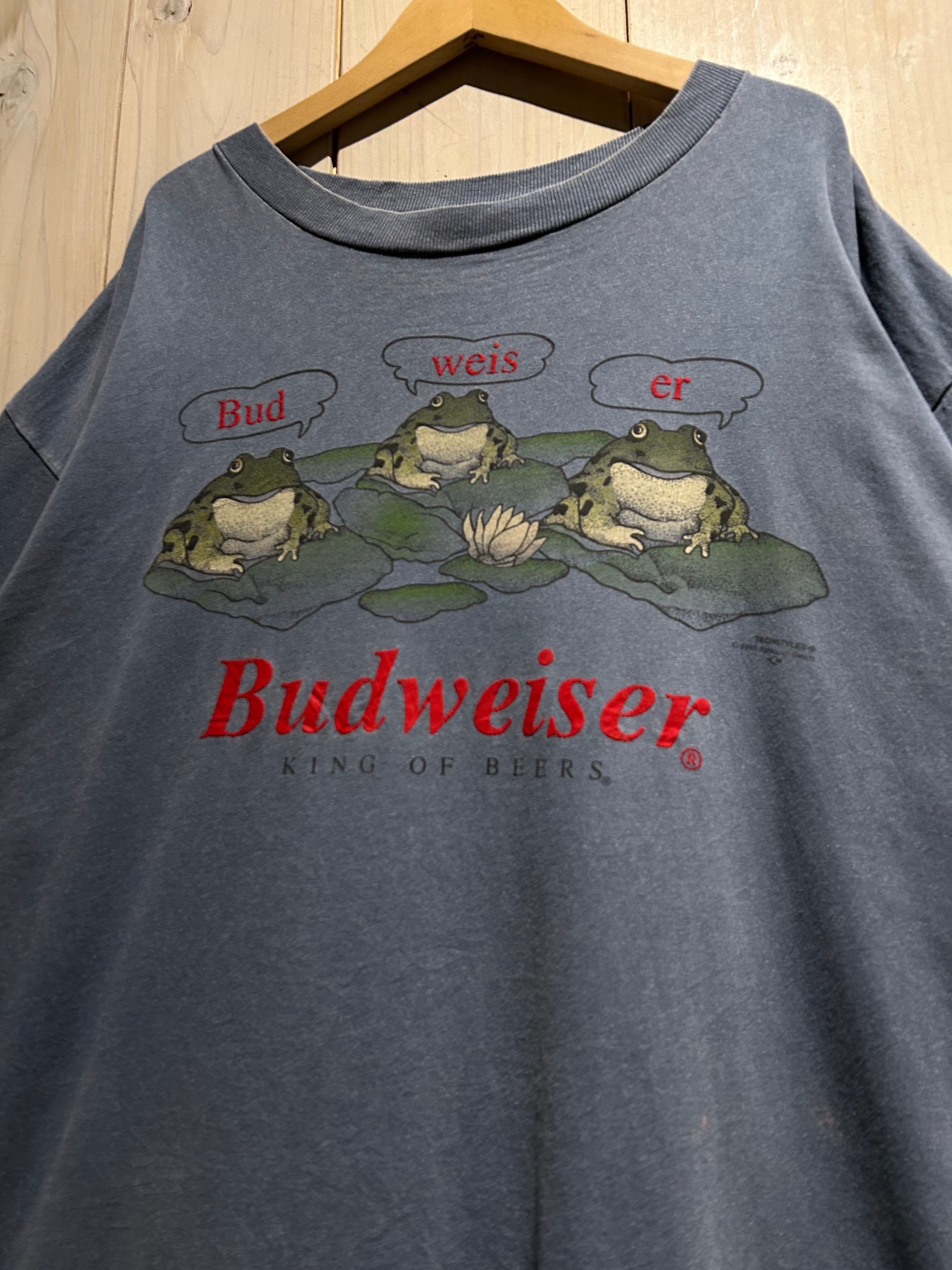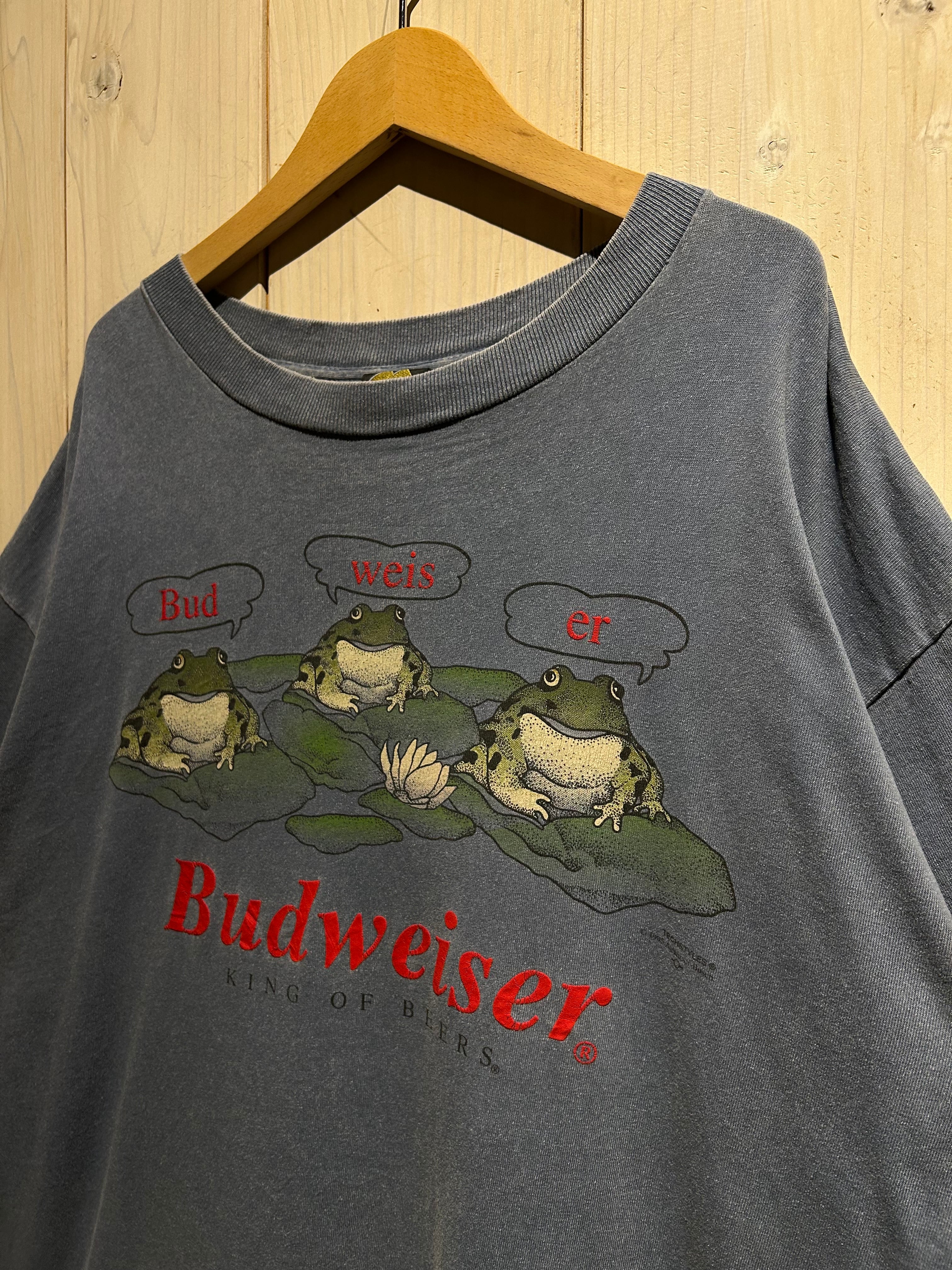 タバコや酒といった嗜好品系のヴィンテージTシャツの中でも、Budweiserのカエルシリーズは特に人気が高く、サイズ、デザイン、コンディションを併せ持った稀少な1着です。