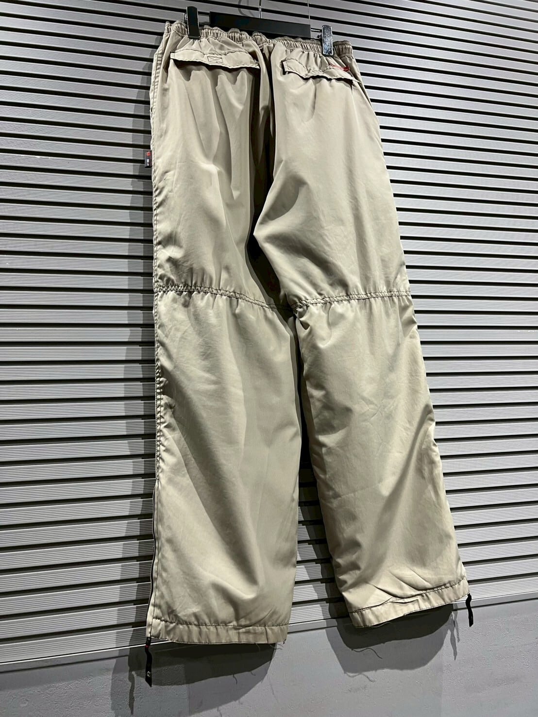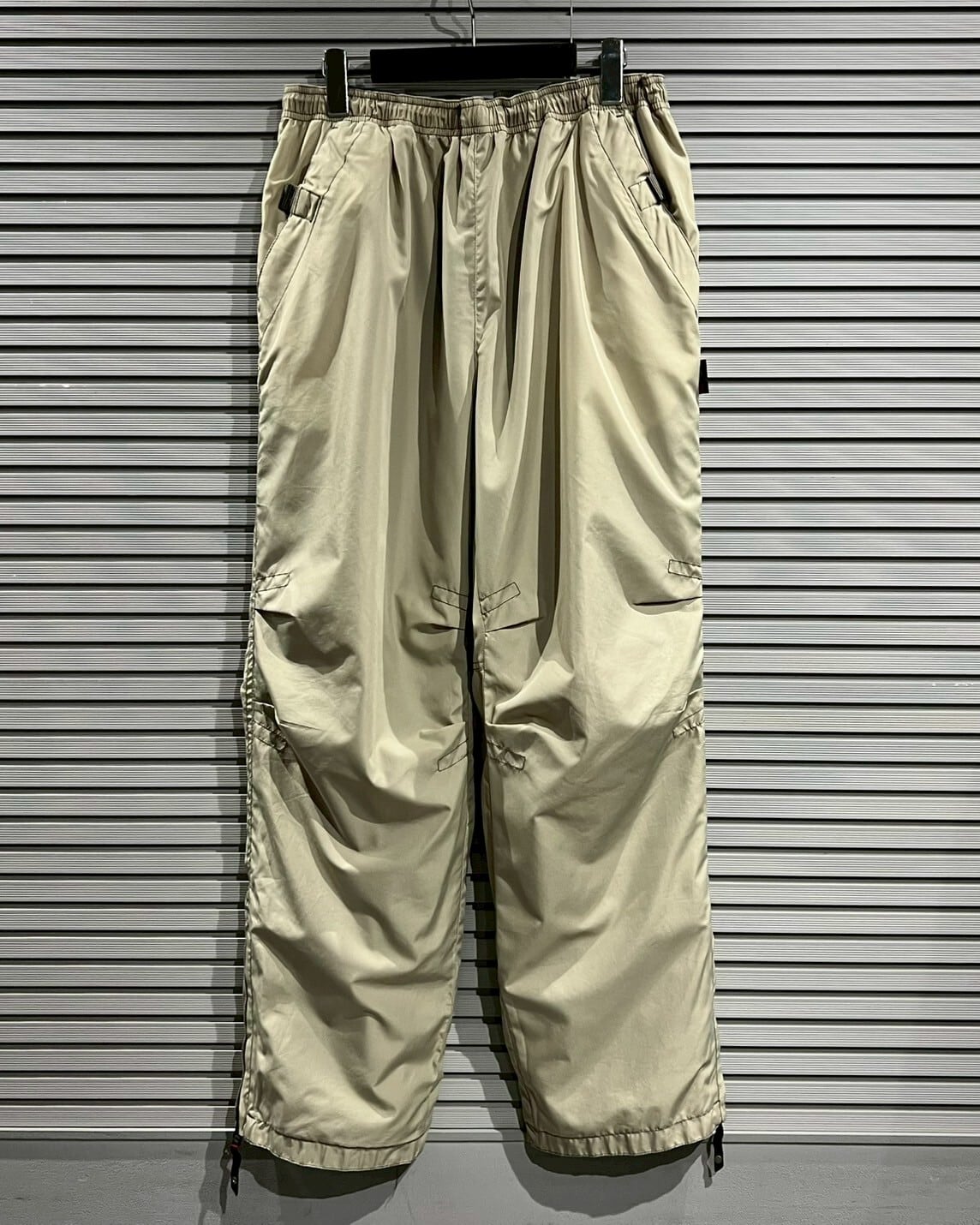 ウエストにはドローコードが備わっており、サイズ感の調節も楽チン。裾はジップが取り付けられているので、開いてあげると靴やスタイルで遊びを効かせることができます。