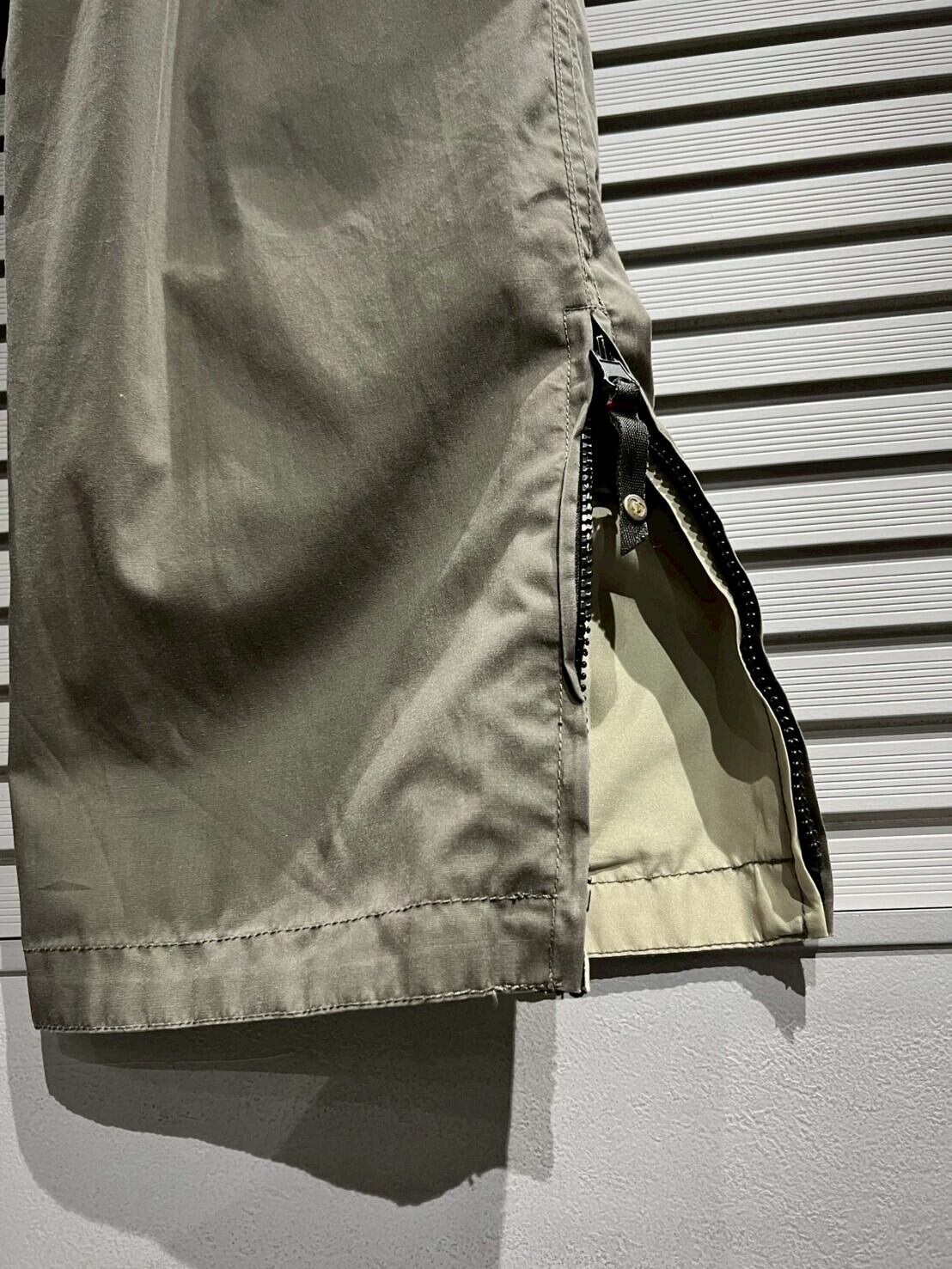 ブラウン面にはボディサイドにジップポケット、ベージュには膝部分にダーツが施され、立体感と機動性を確保。シンプルながら丁寧に作り込まれた、クオリティの高い仕上がり。