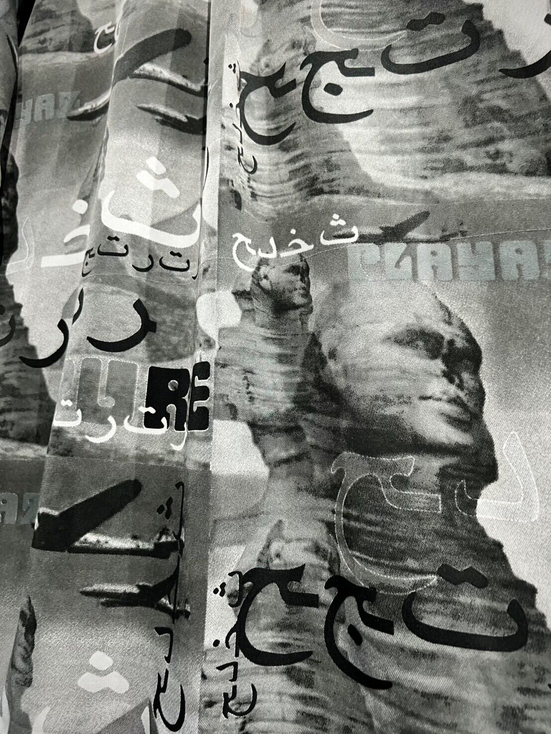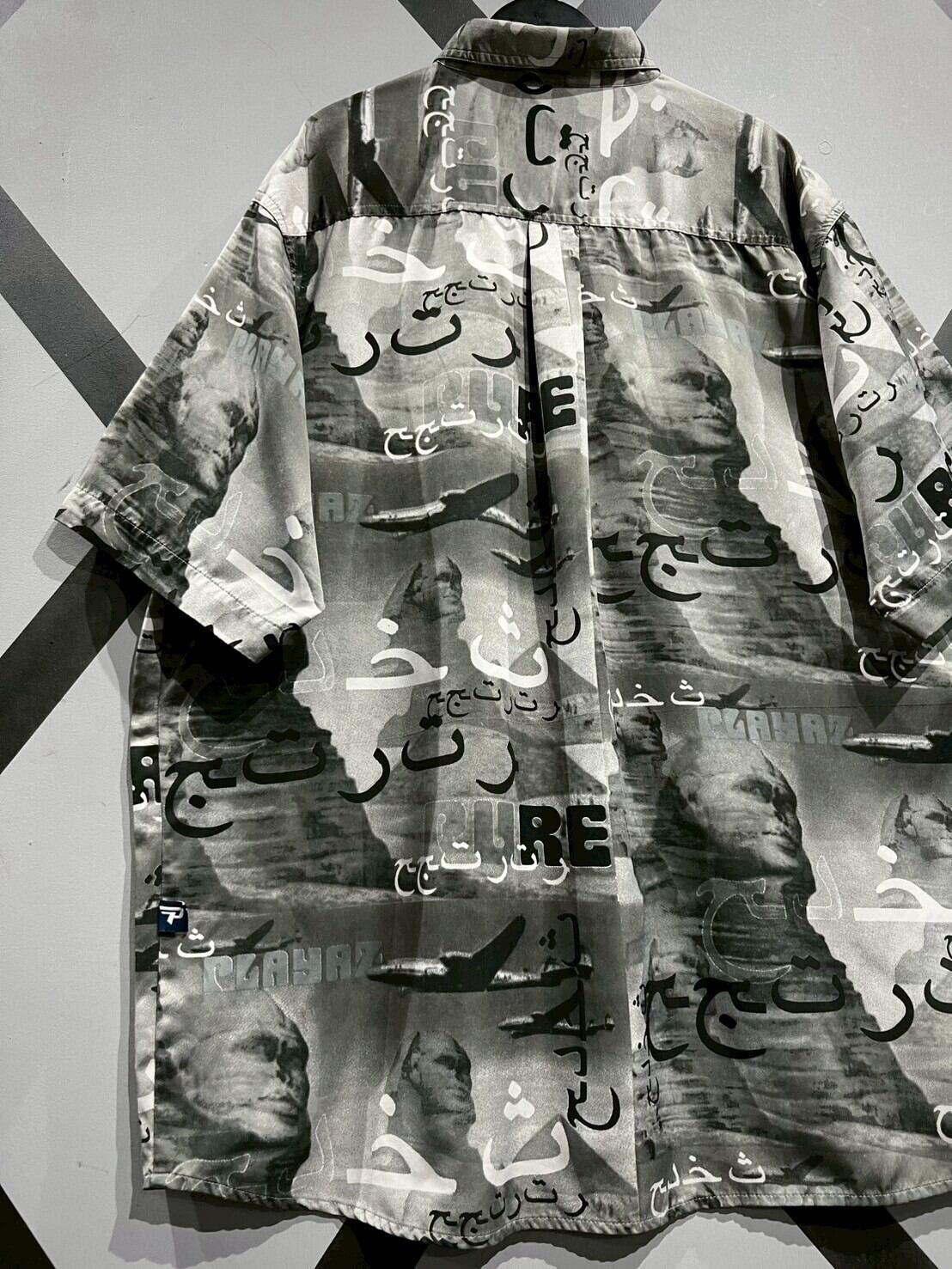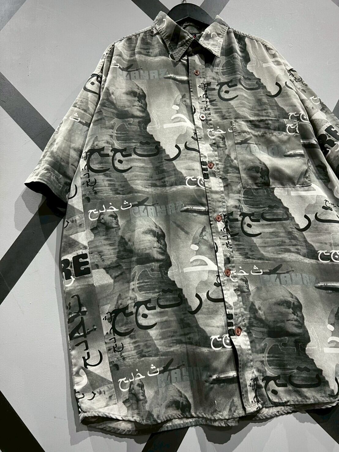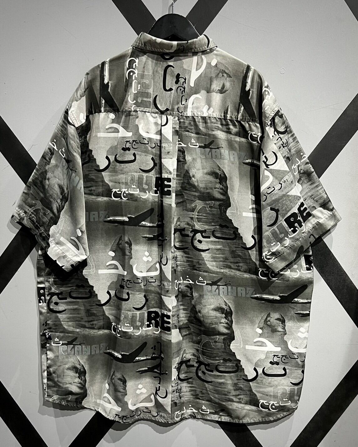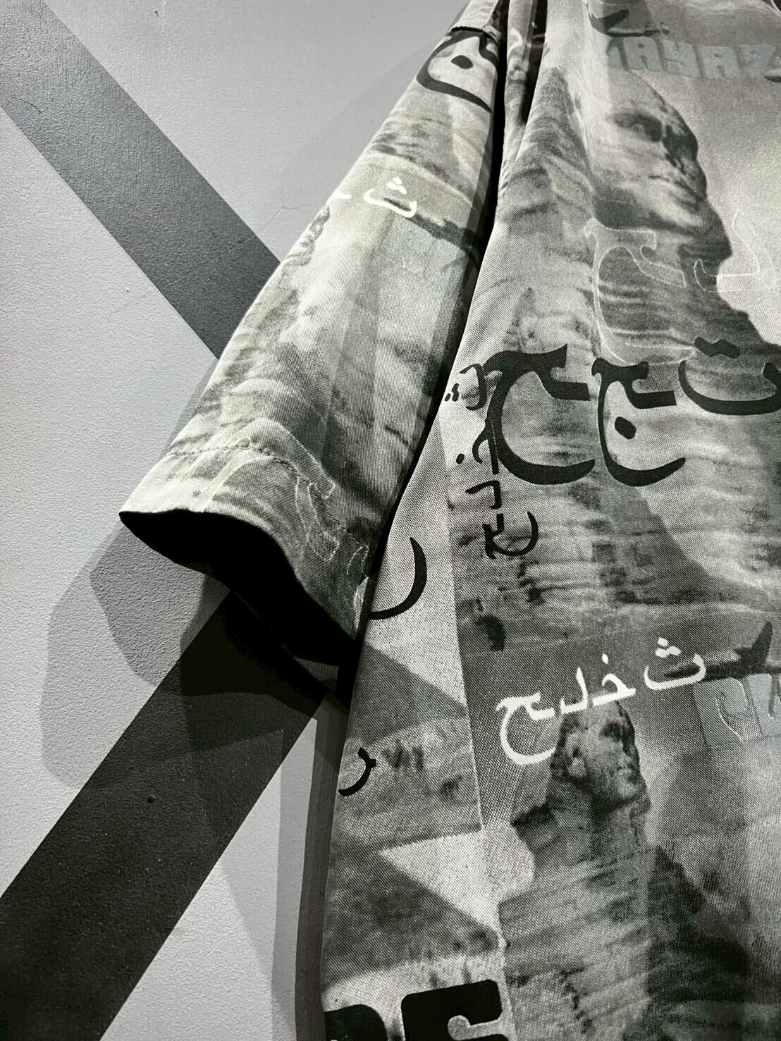 ツルッと滑らかなポリのボディに、スフィンクス、アラビア文字を載せた半袖シャツ。