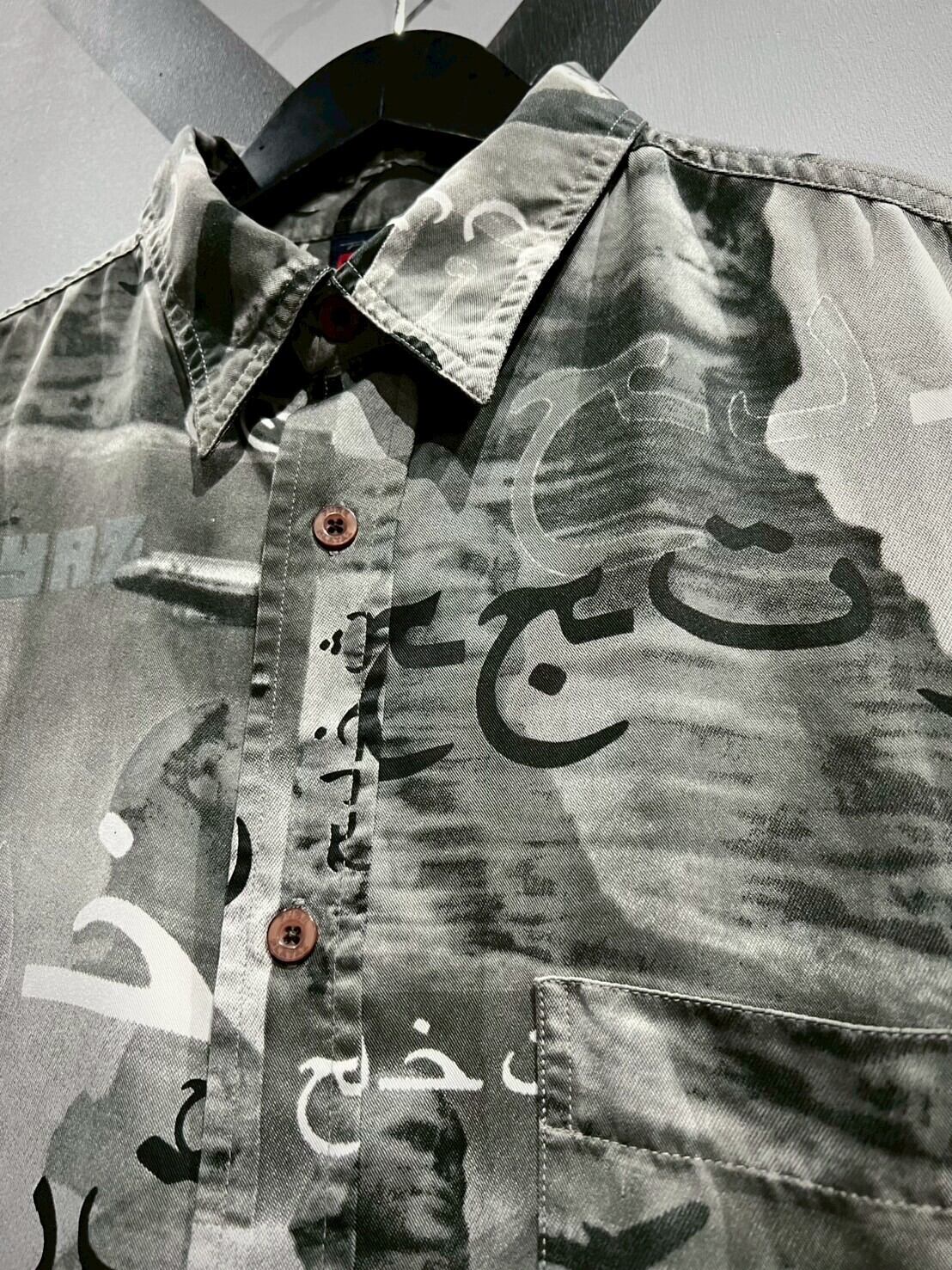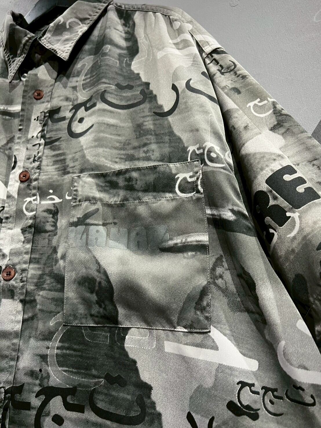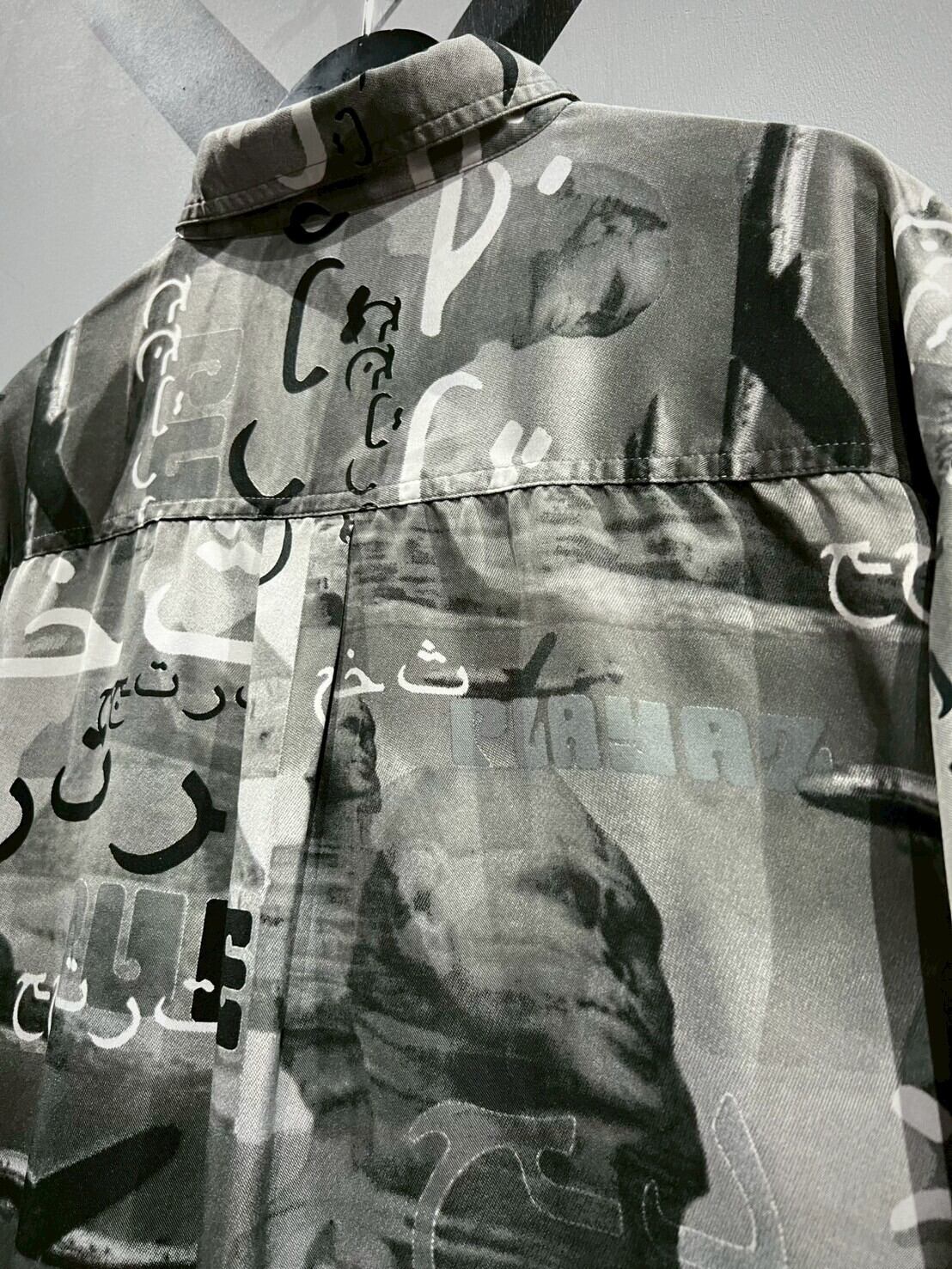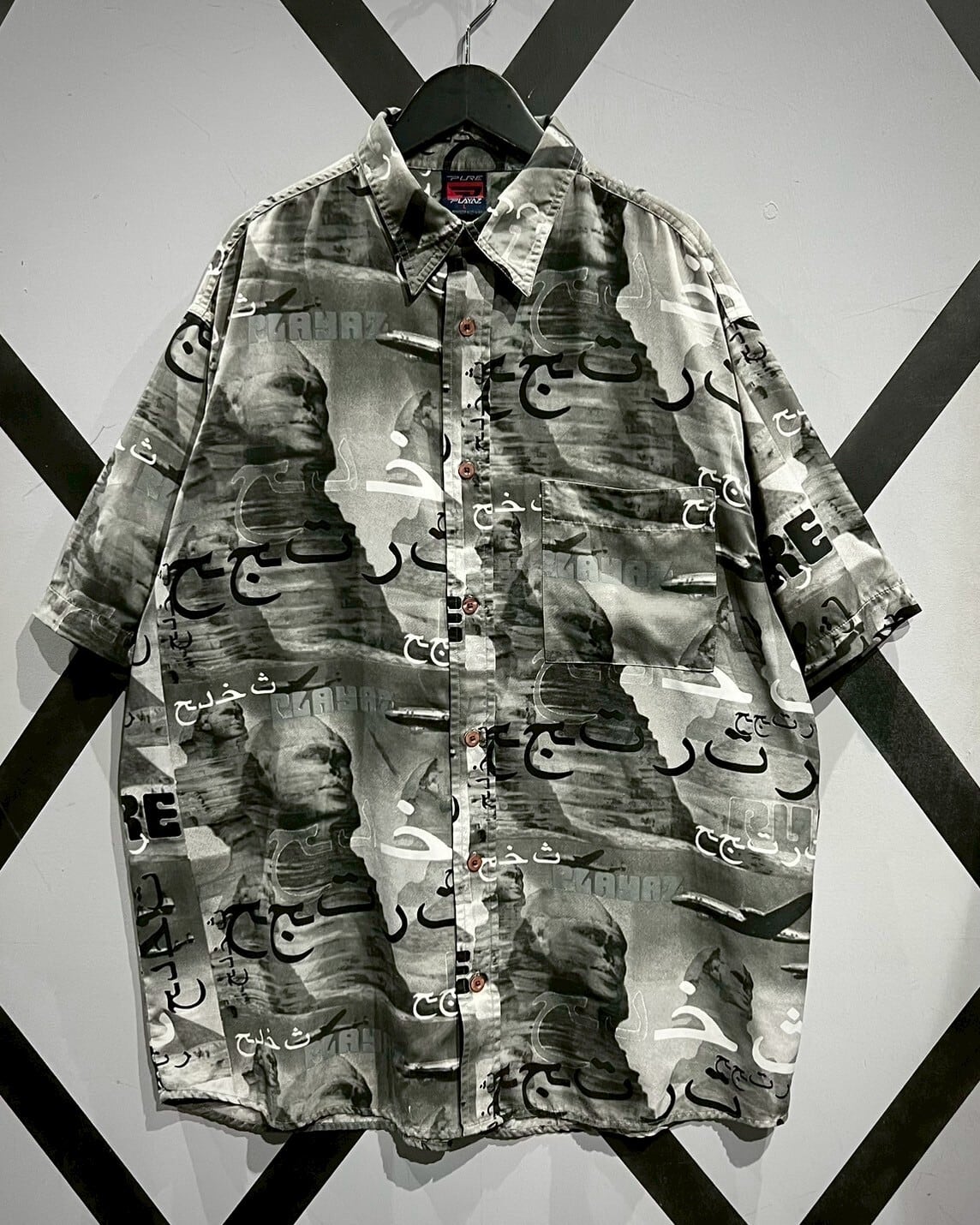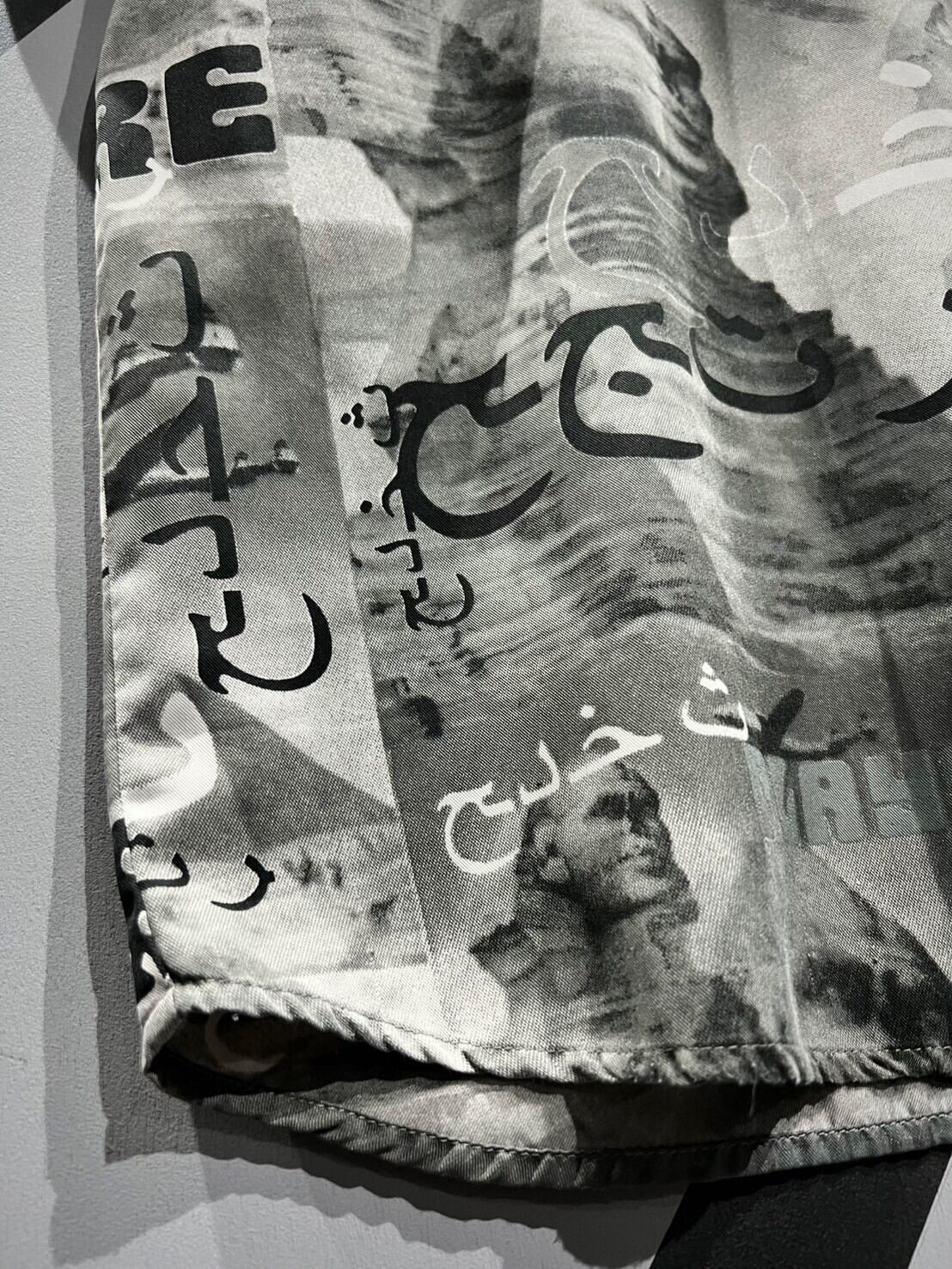 ツルッと滑らかなポリのボディに、スフィンクス、アラビア文字を載せた半袖シャツ。