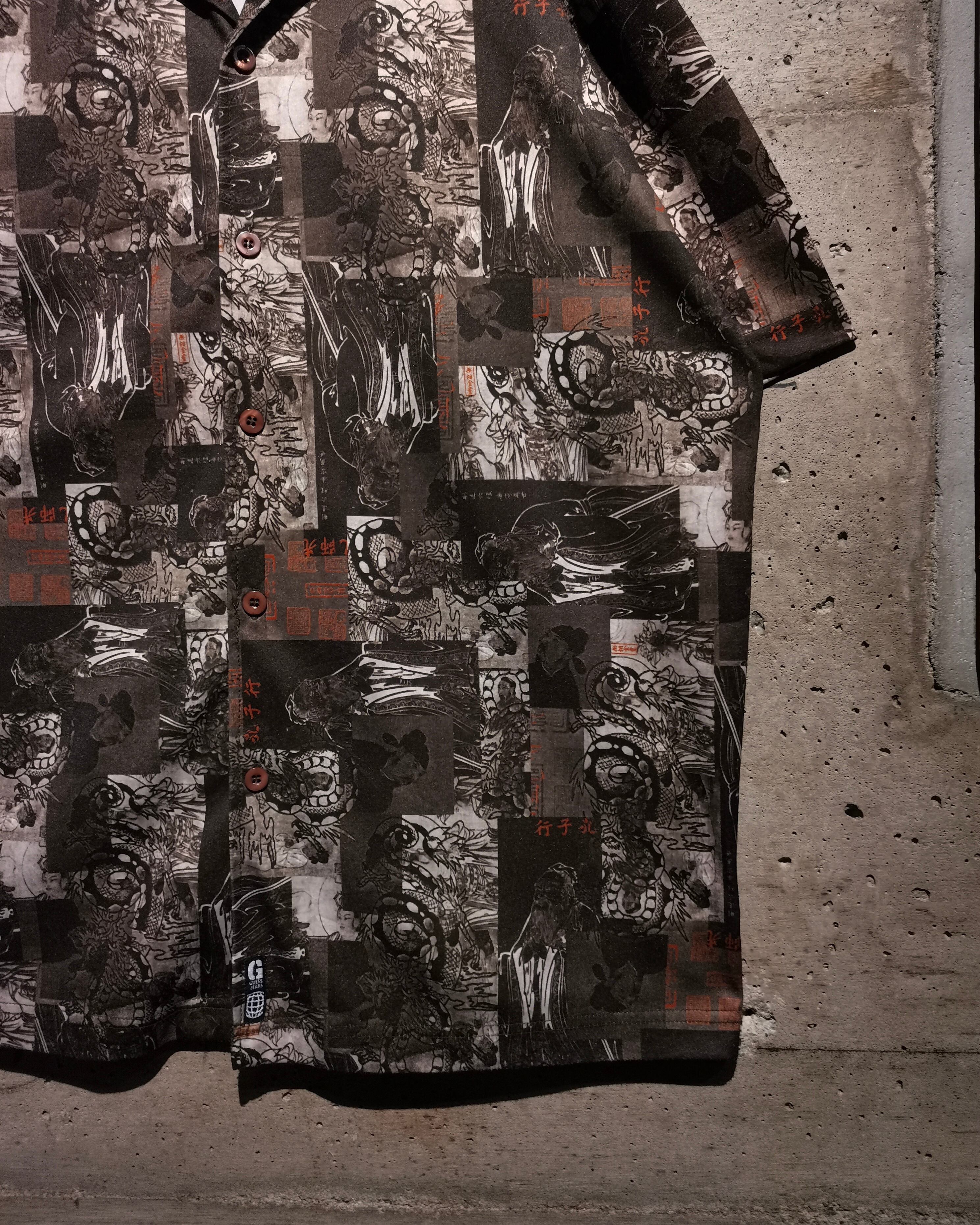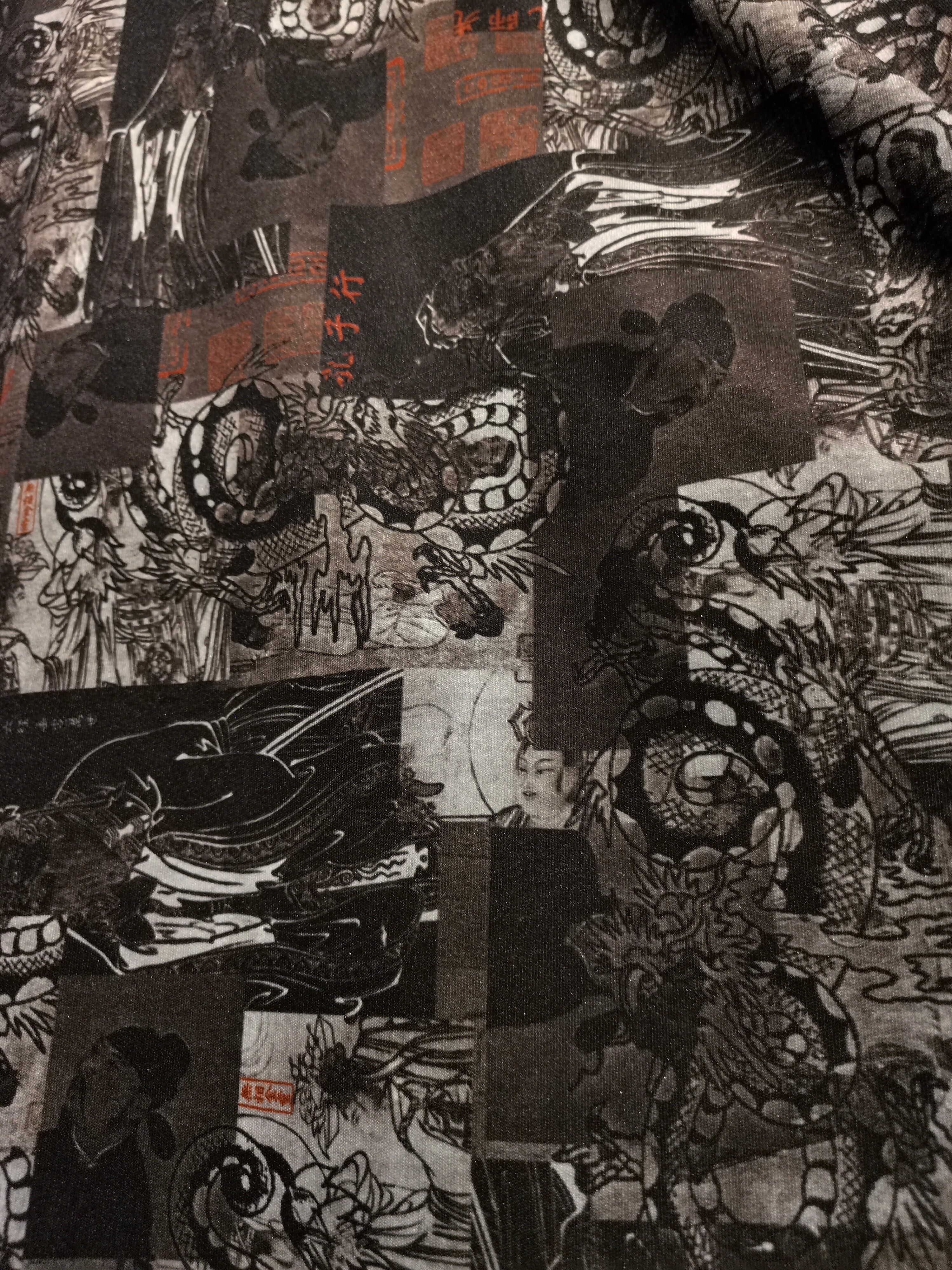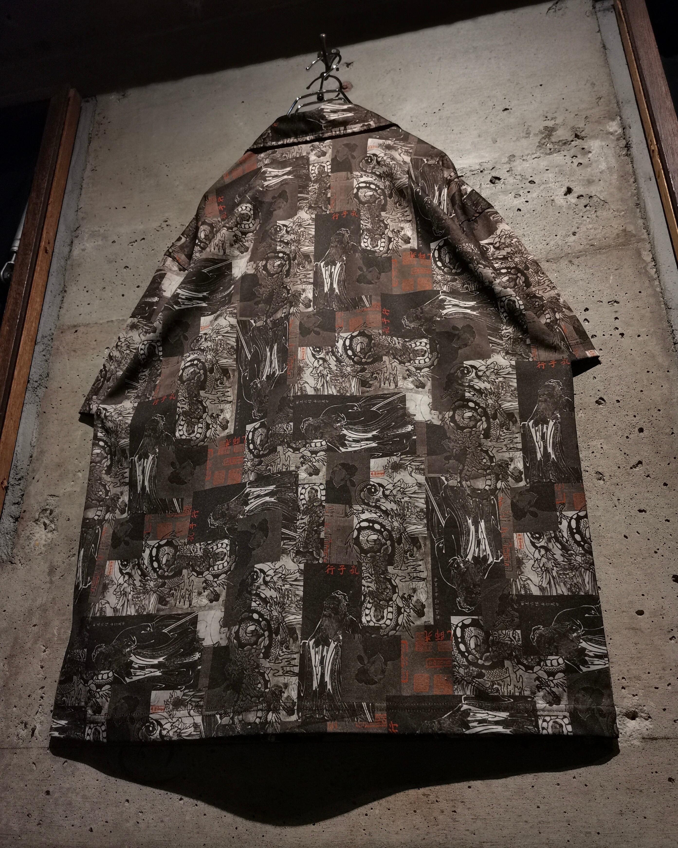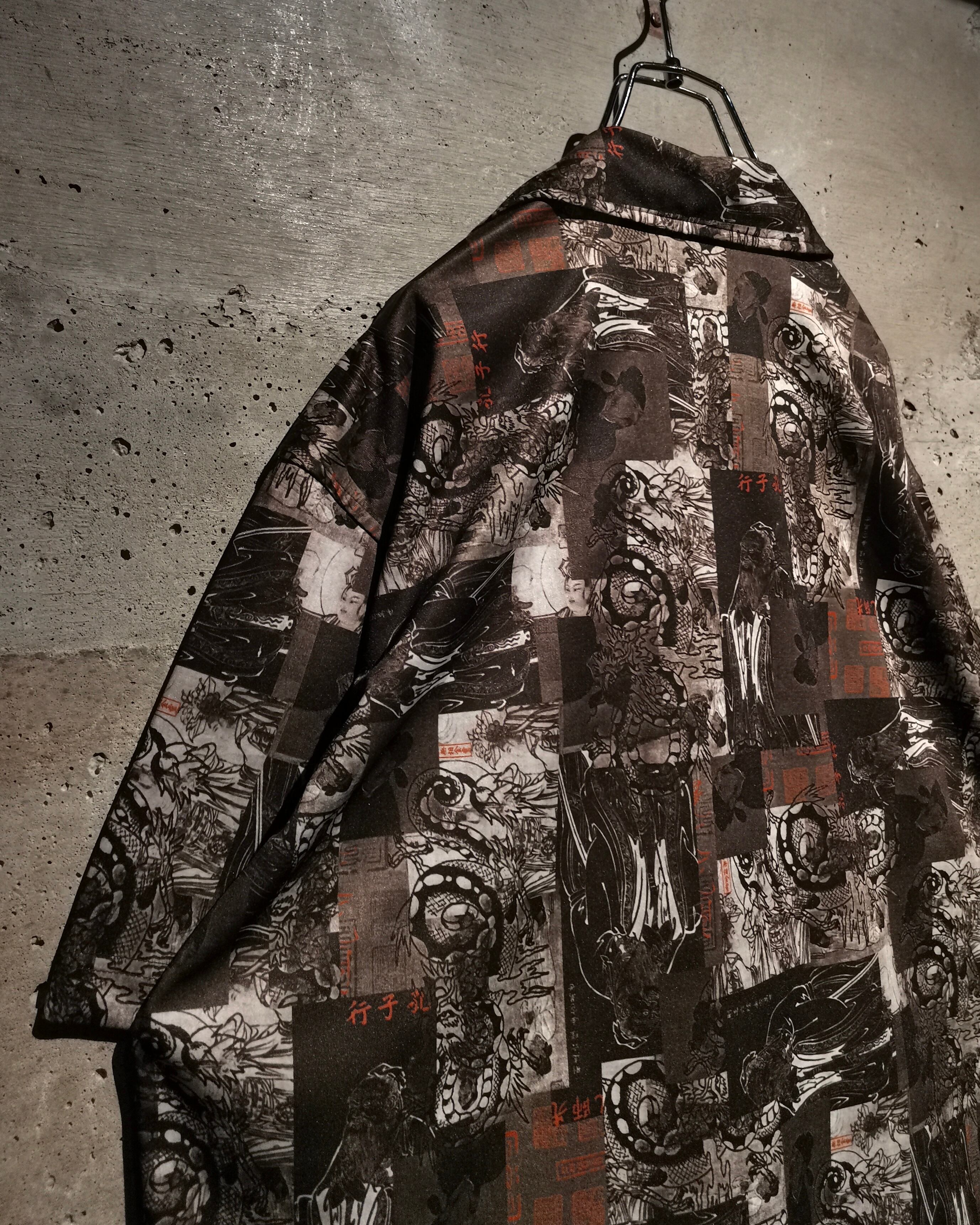 滑らかな質感のボディに、"転写"プリントといった70'sライクな手法で龍や中国の偉人をパッチワーク調に落とし込んだスペシャルな一着。このデザインでOLD Guess Jeansってのが、洋服好きの心を鷲掴みにしてくれますね。