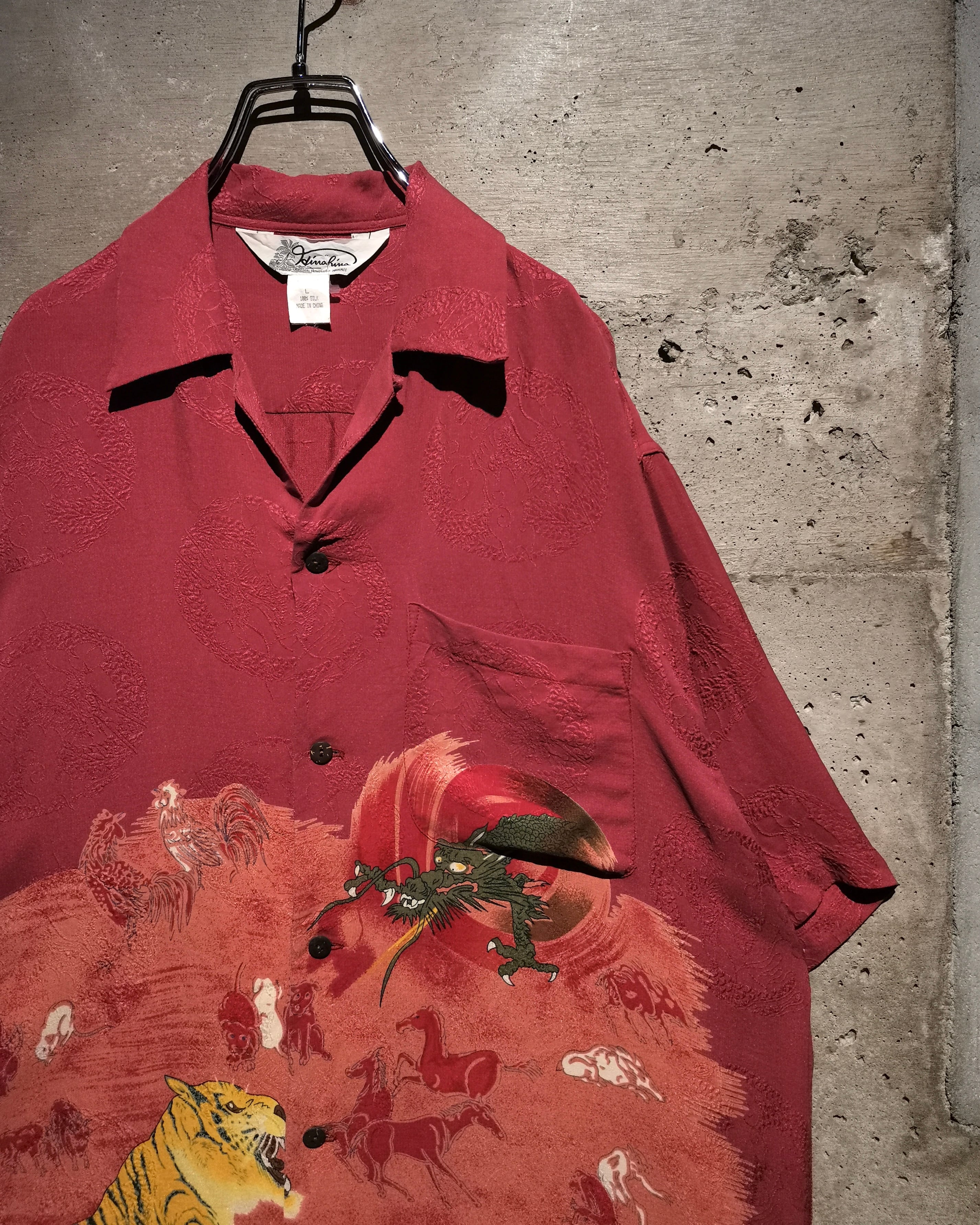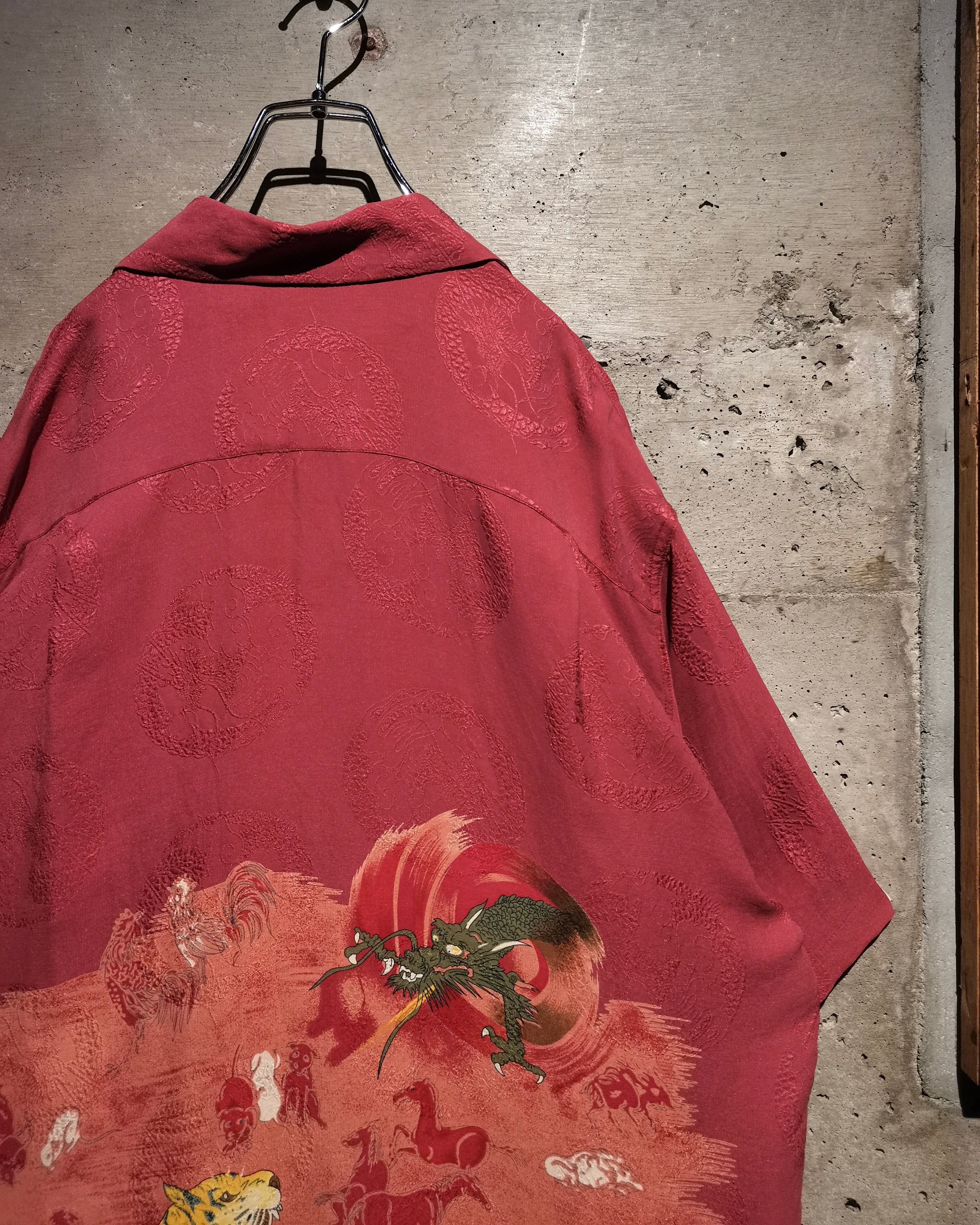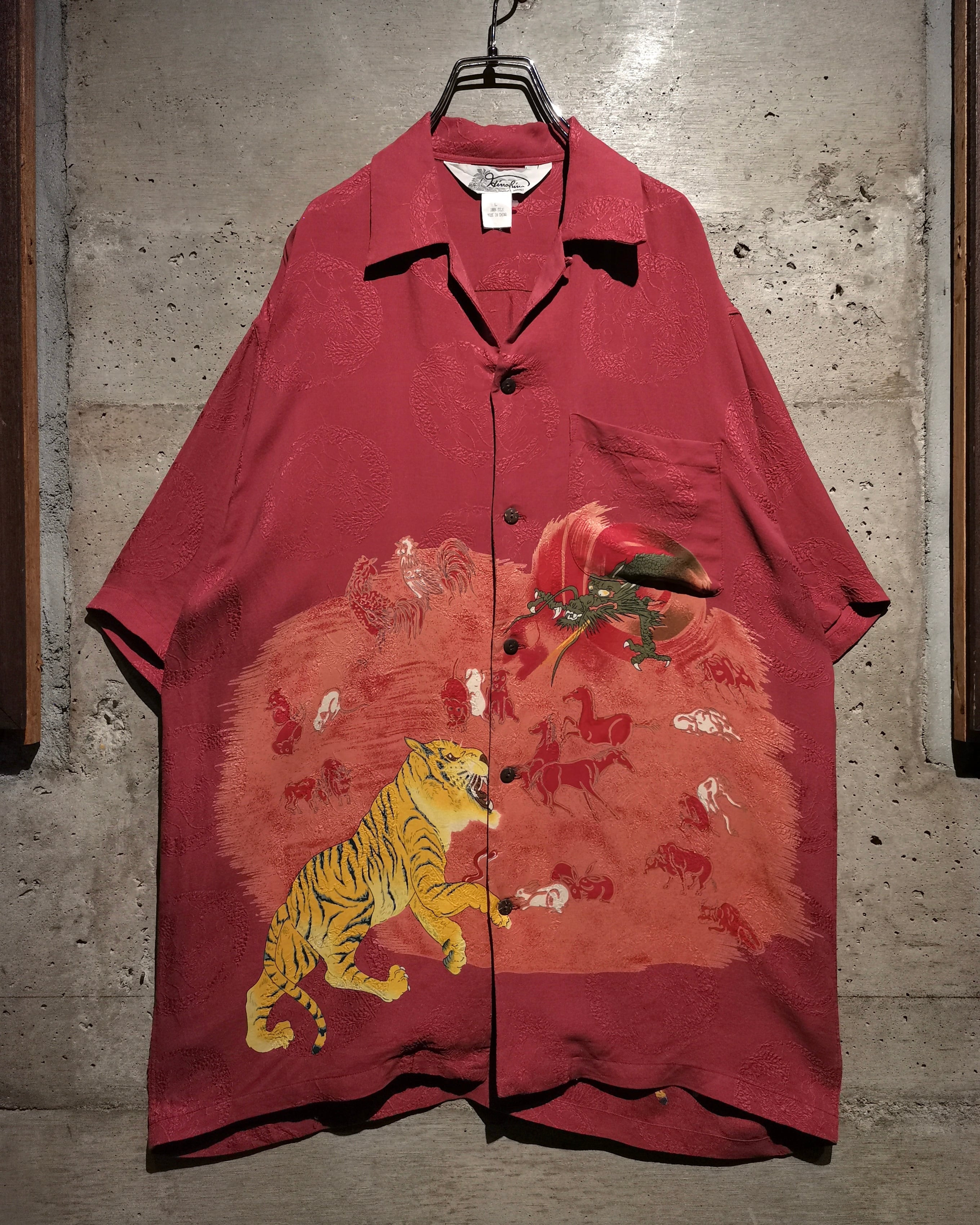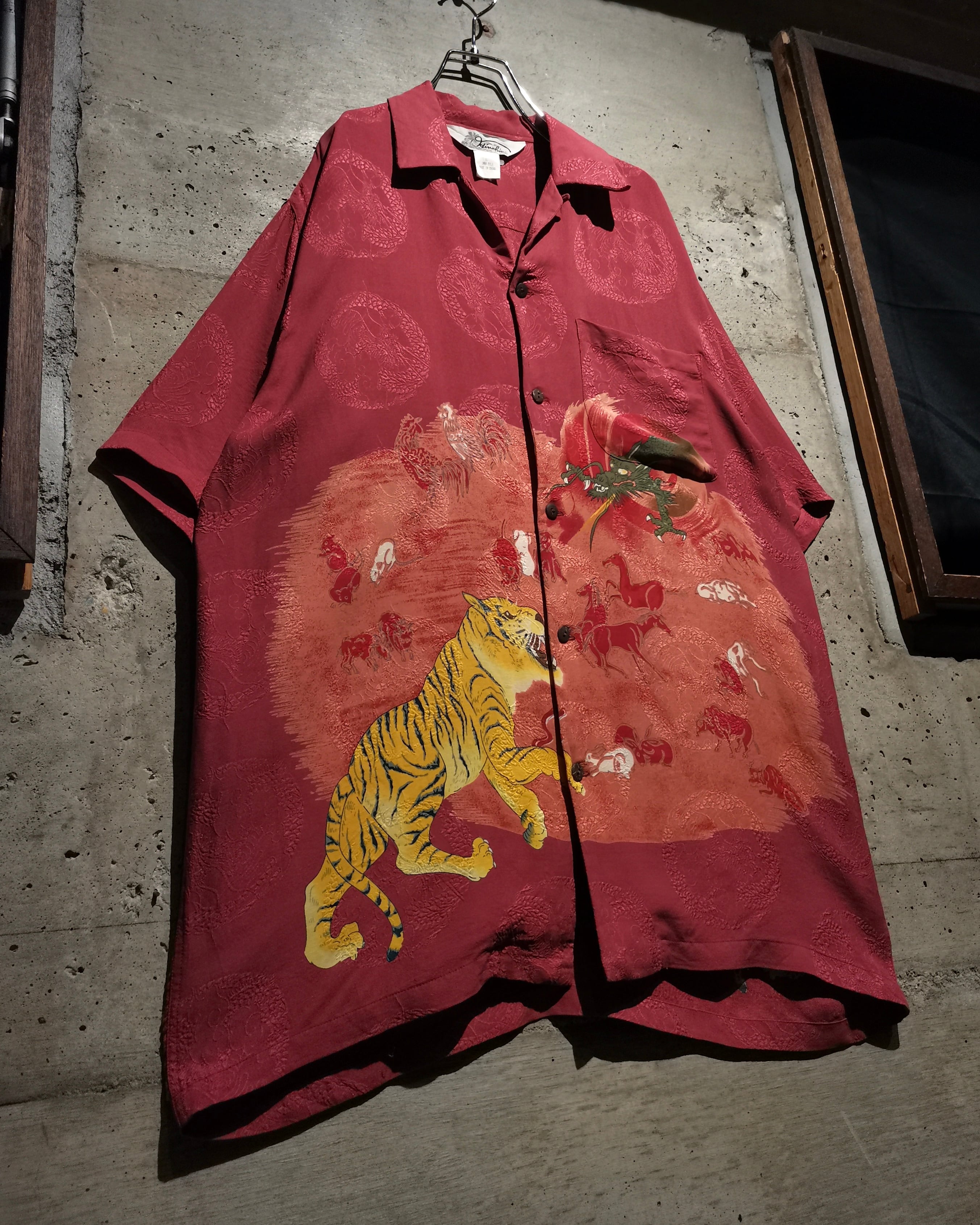 フワッと柔らかな、極上のシルク素材をボディに使用し、虎×龍をメインに、十二支のデザインを載せたアロハシャツ。