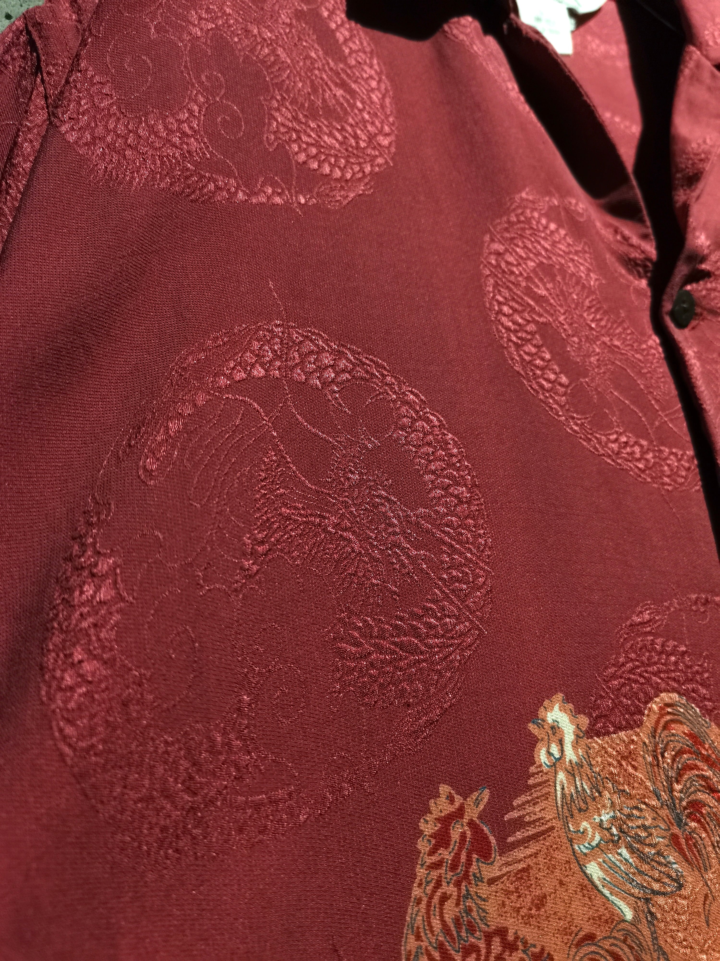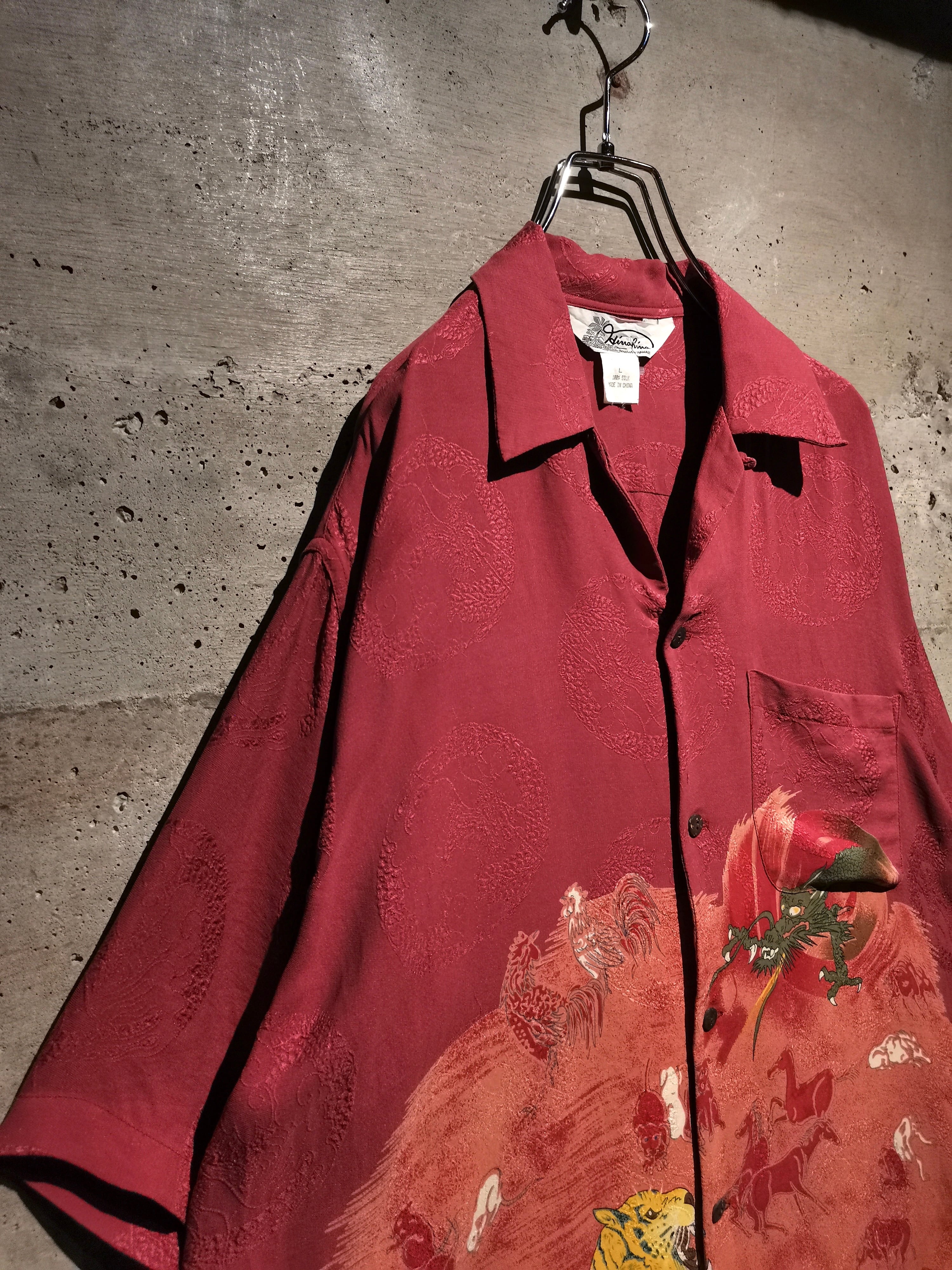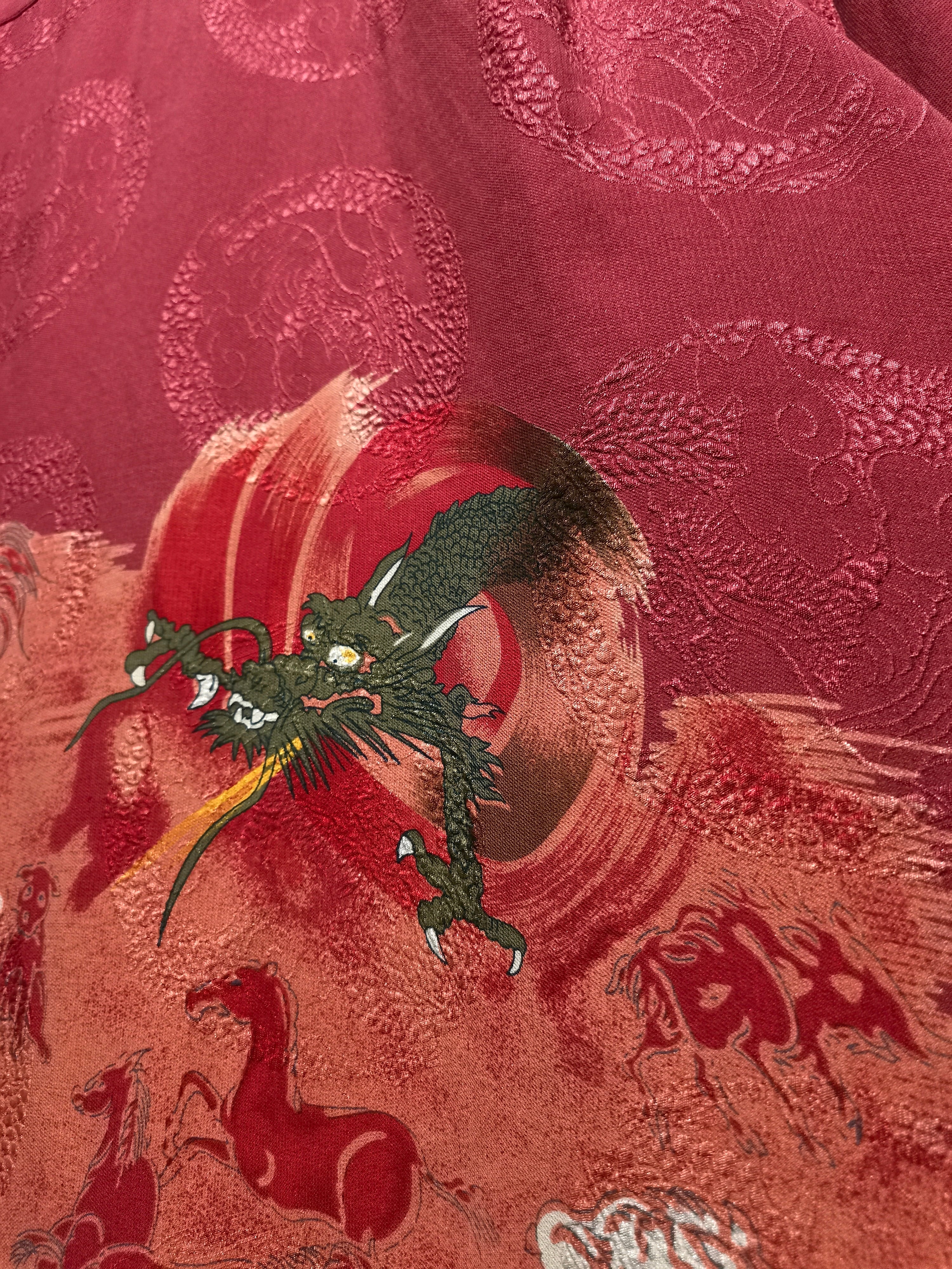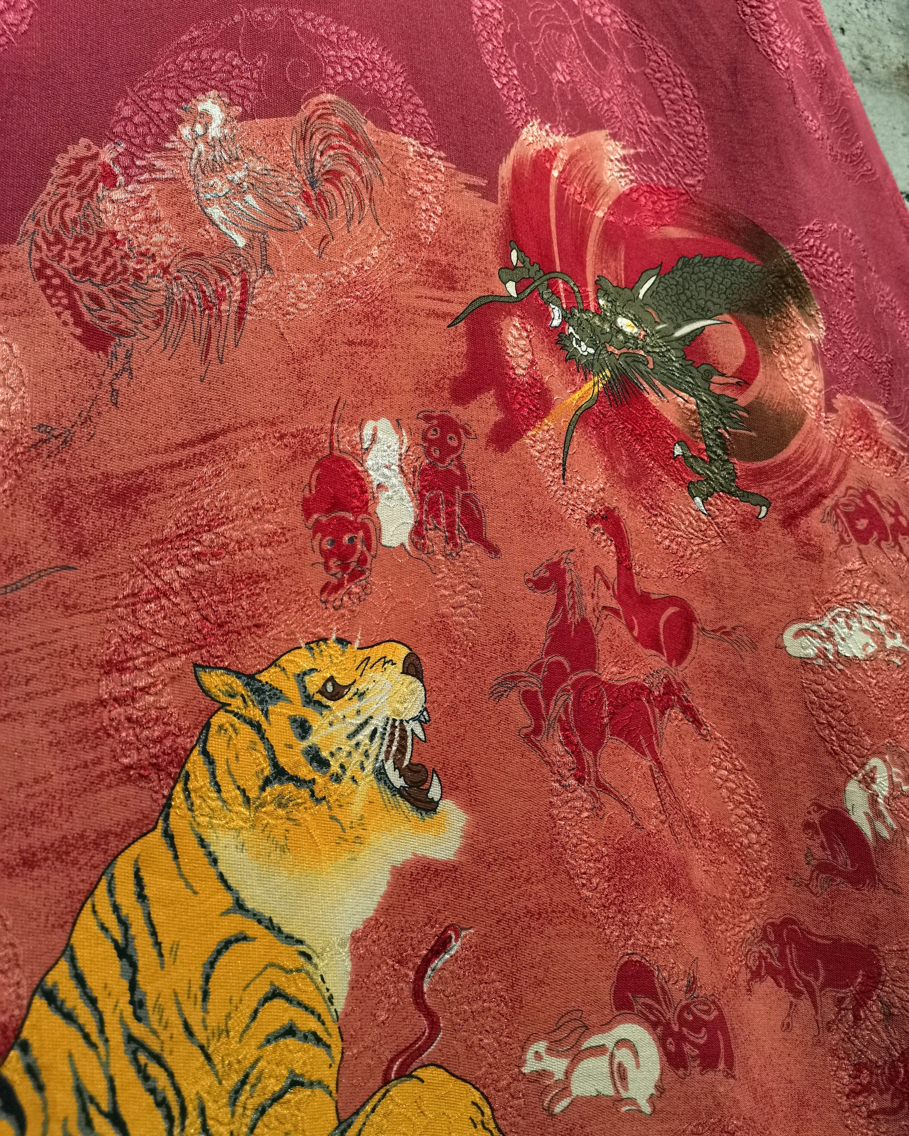 フワッと柔らかな、極上のシルク素材をボディに使用し、虎×龍をメインに、十二支のデザインを載せたアロハシャツ。