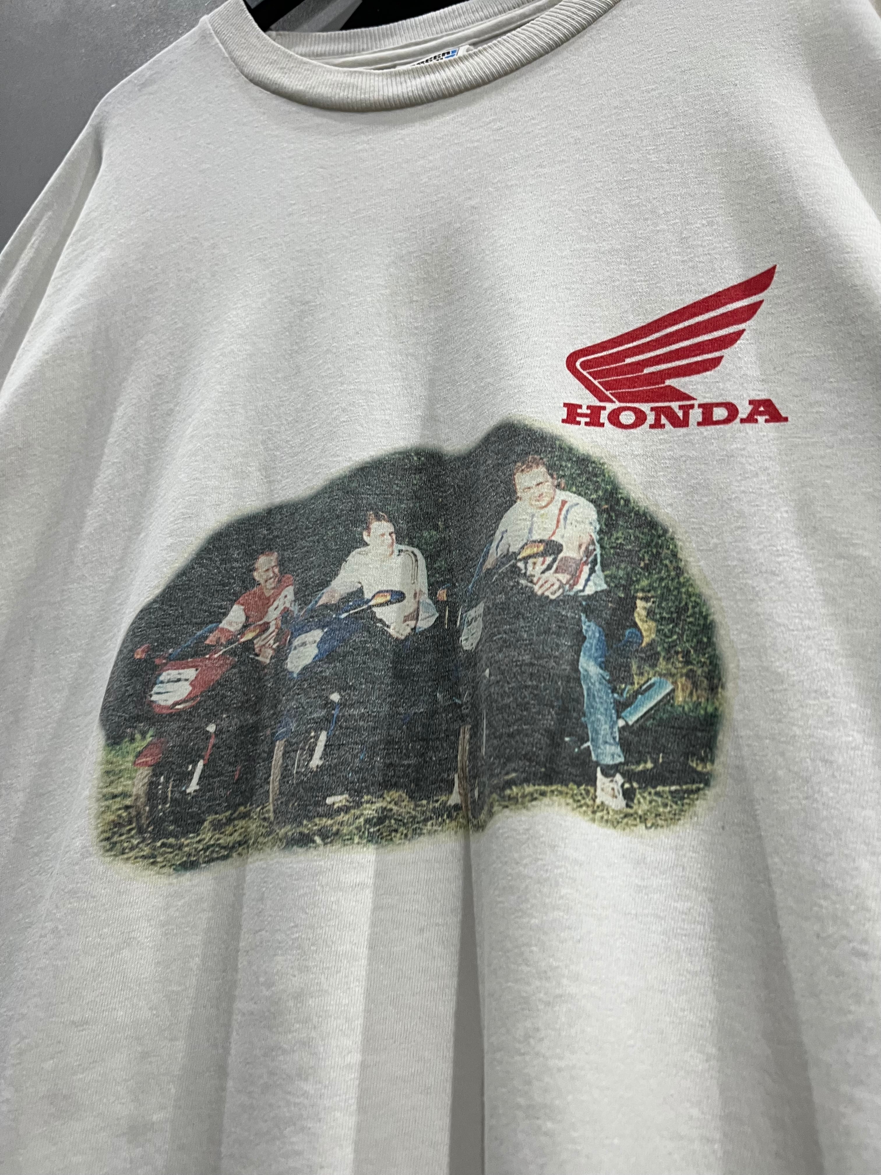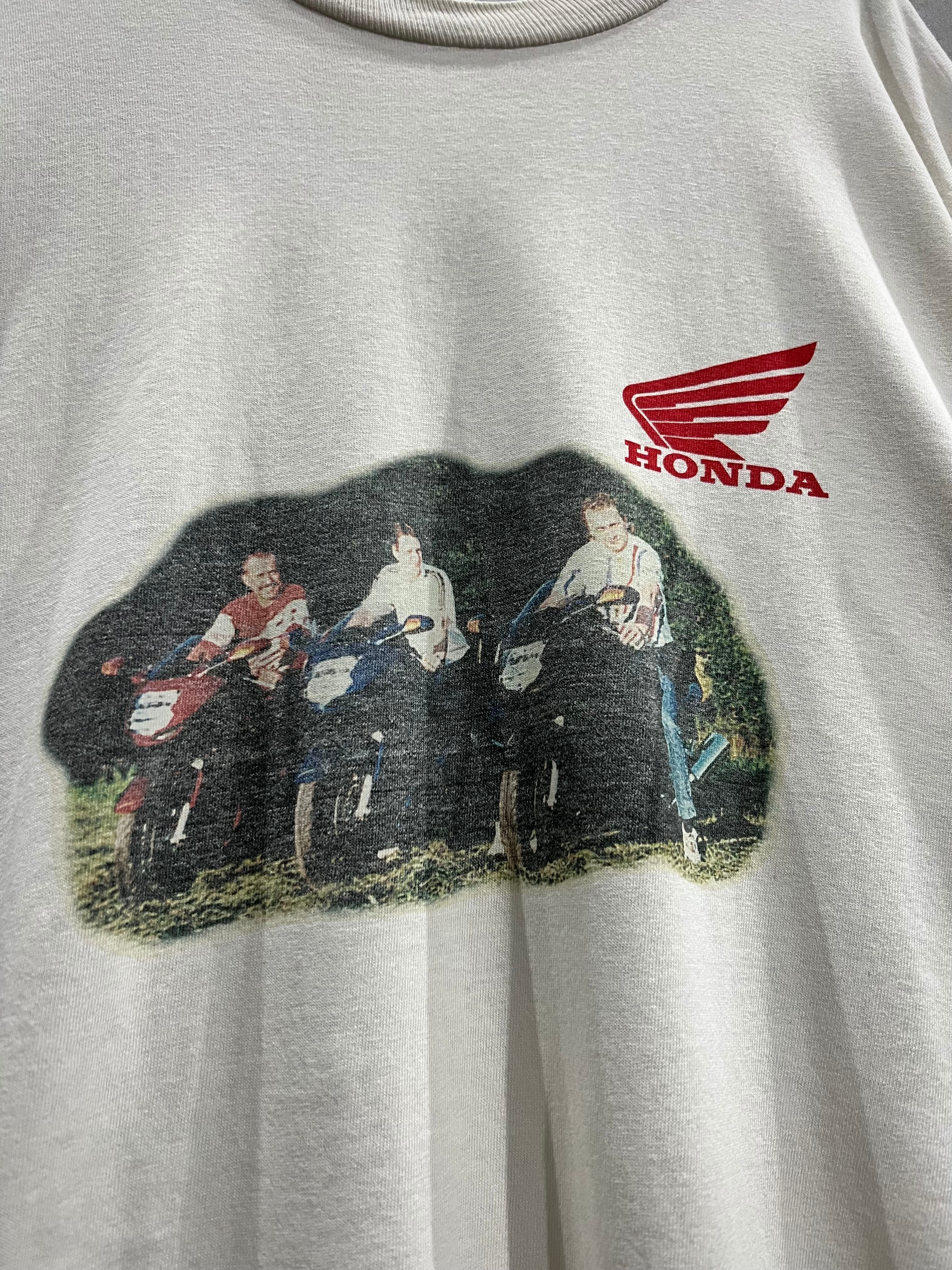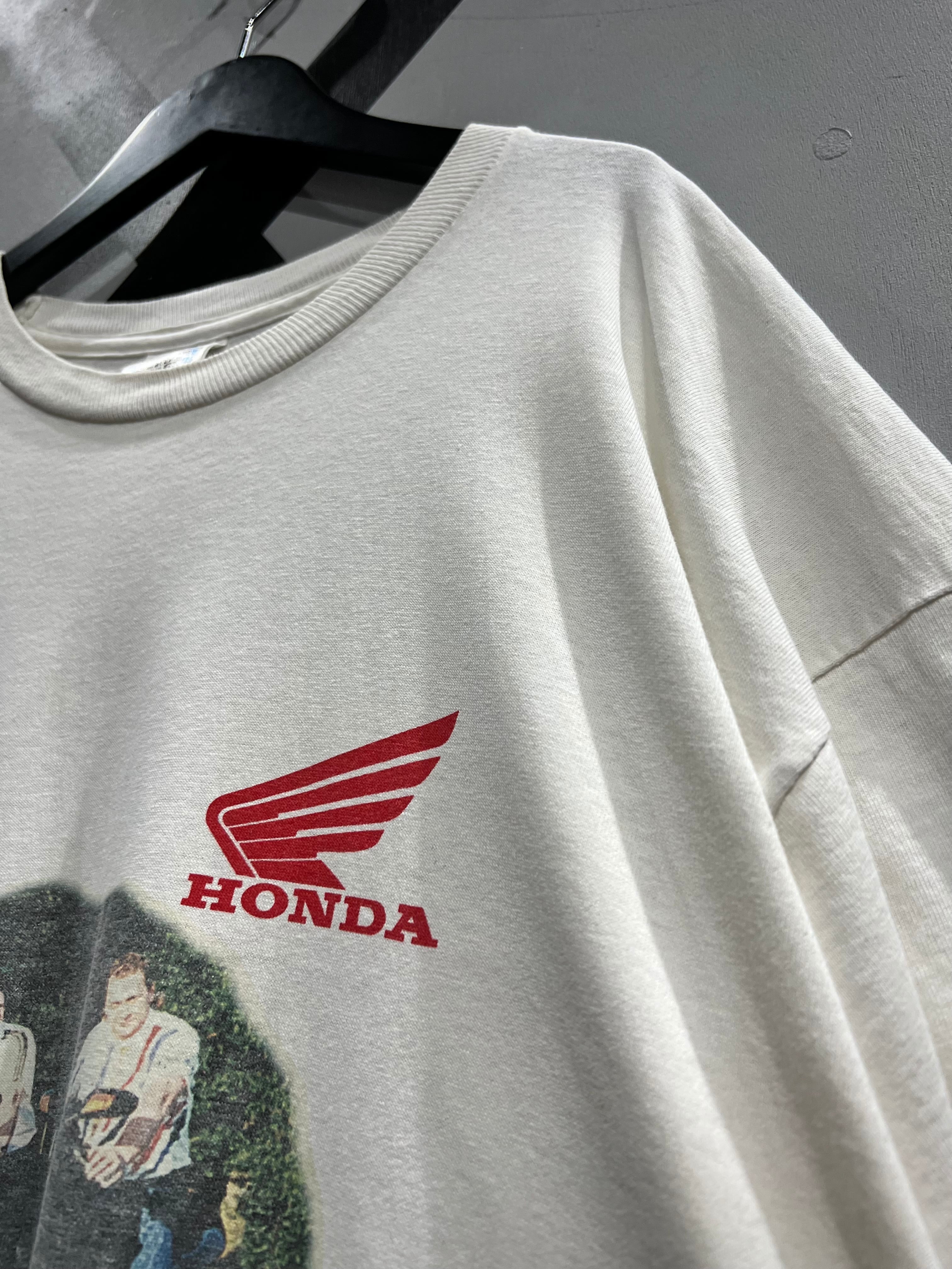 白のボディをベースに、フロントにはロゴマークとCBRを持つ男達、バックにはドカンとCBRの本体が載せられた1着。