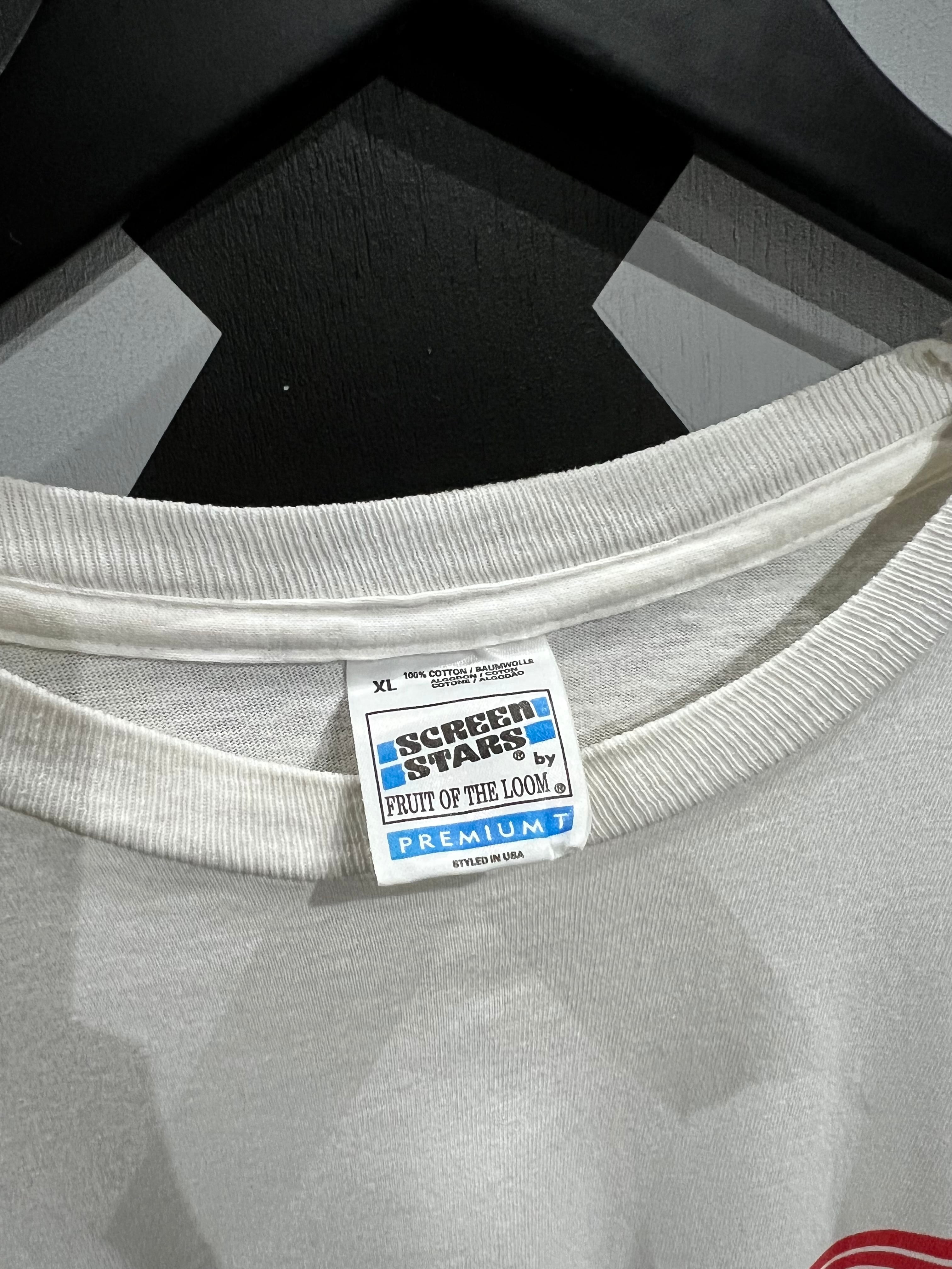 シングルステッチの90's、XL表記のルーズなサイジング。バックカルチャーを踏まえたバイカースタイルのノリにはもちろん、ハイストリートやレトロなスタイリング、スポーティーな合わせにもバチッとハマります。