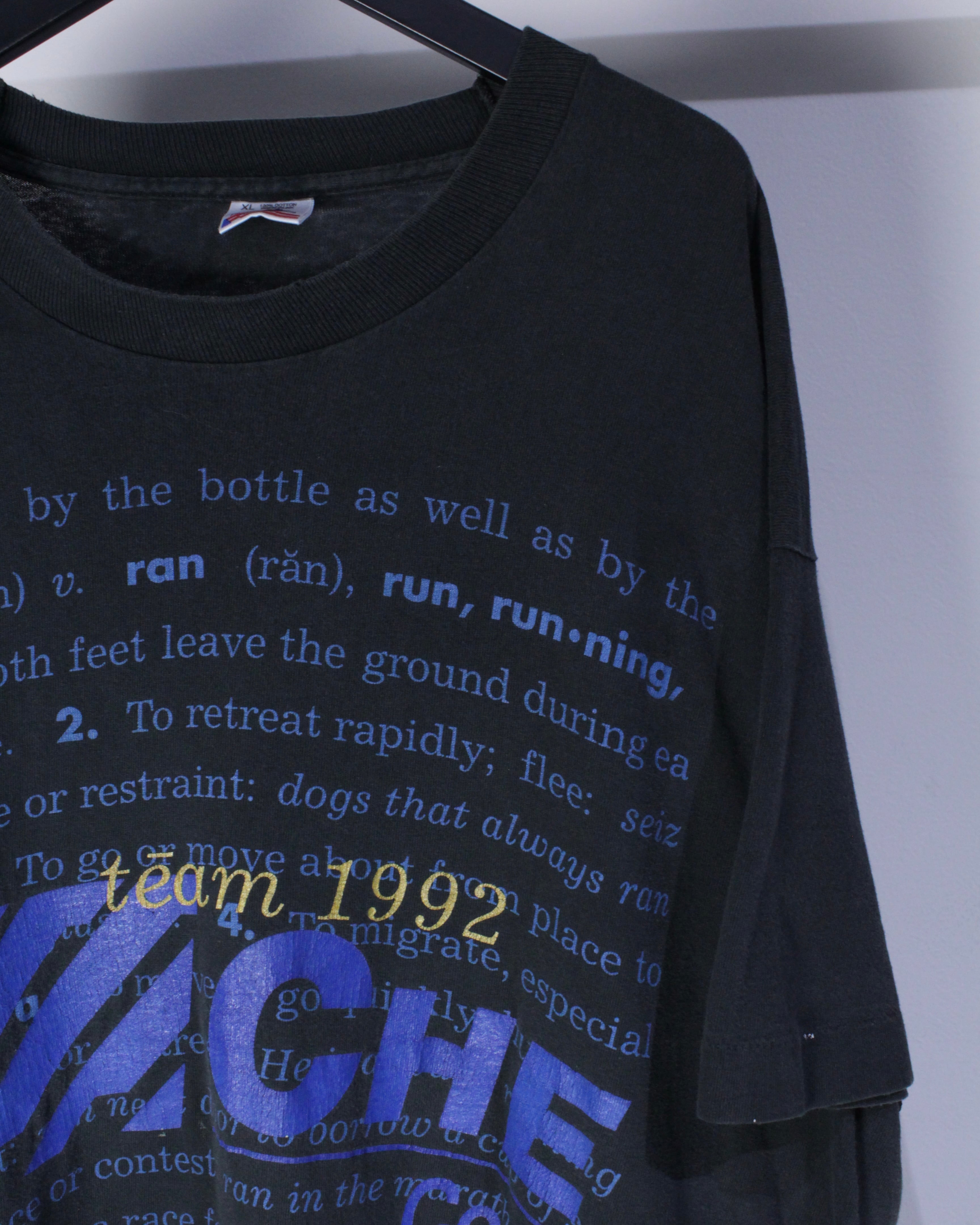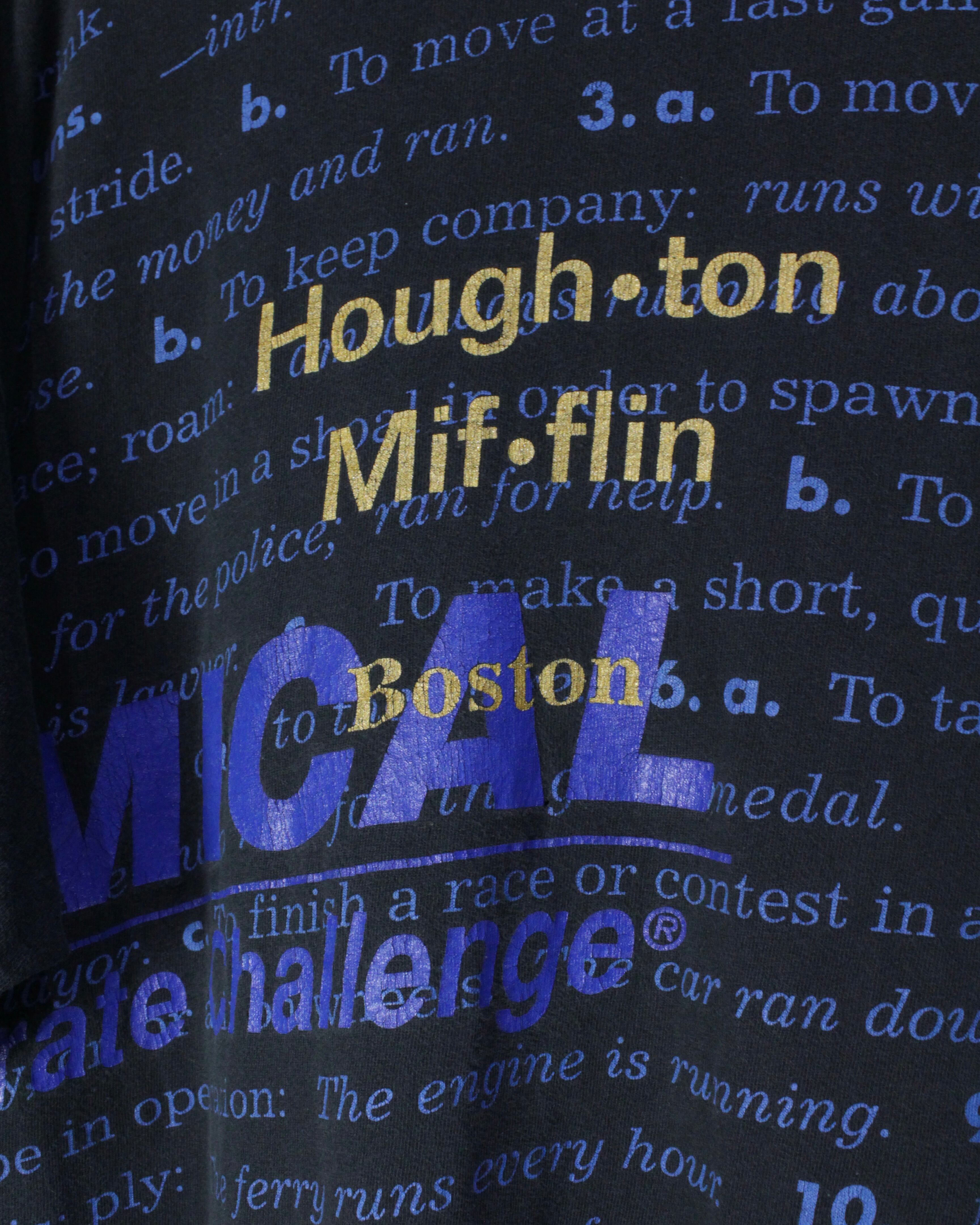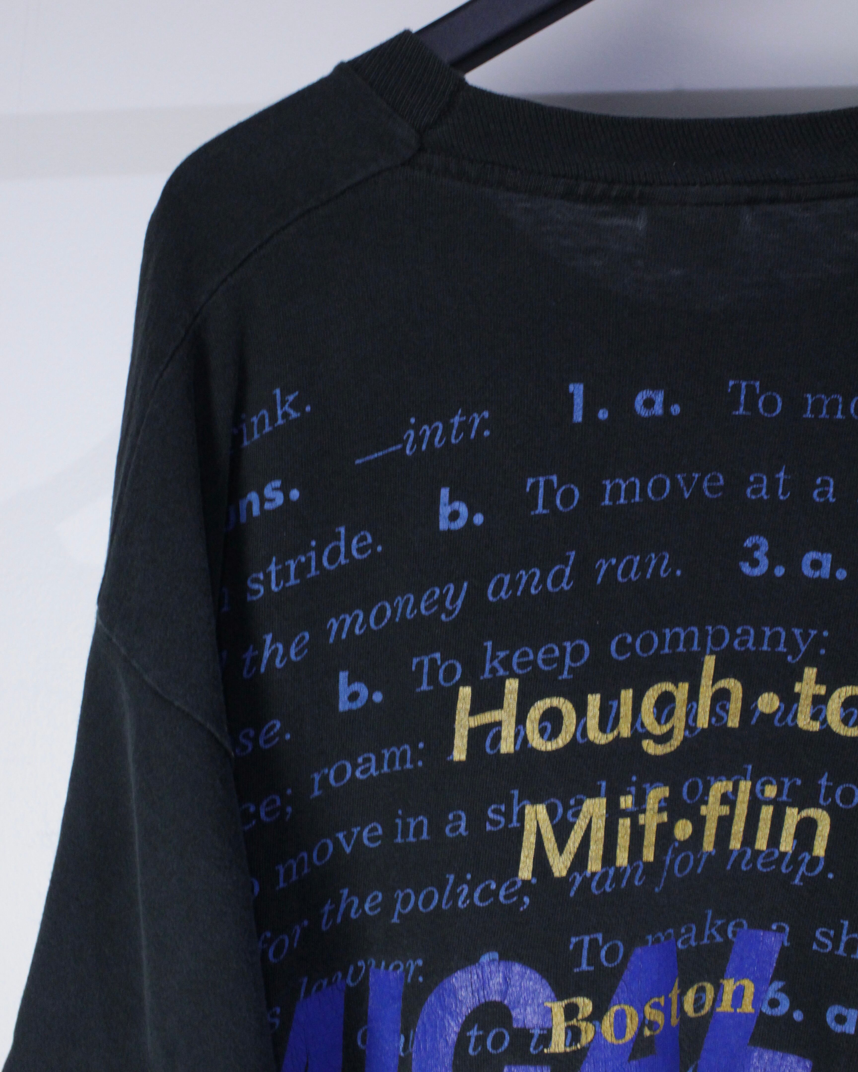 フェードの掛かったブラックのボディに、"Houghton Mifflin"という出版社、そこに辞書のようなレタリングデザインが載った1着。