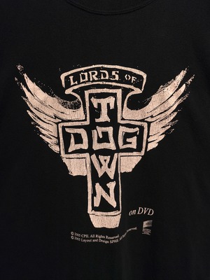 1970年代のアメリカは西海岸に位置するカリフォルニア州ヴェニスビーチ、通称"ドッグタウン"を舞台とした映画"LORDS OF DOGTOWN"のTシャツ。