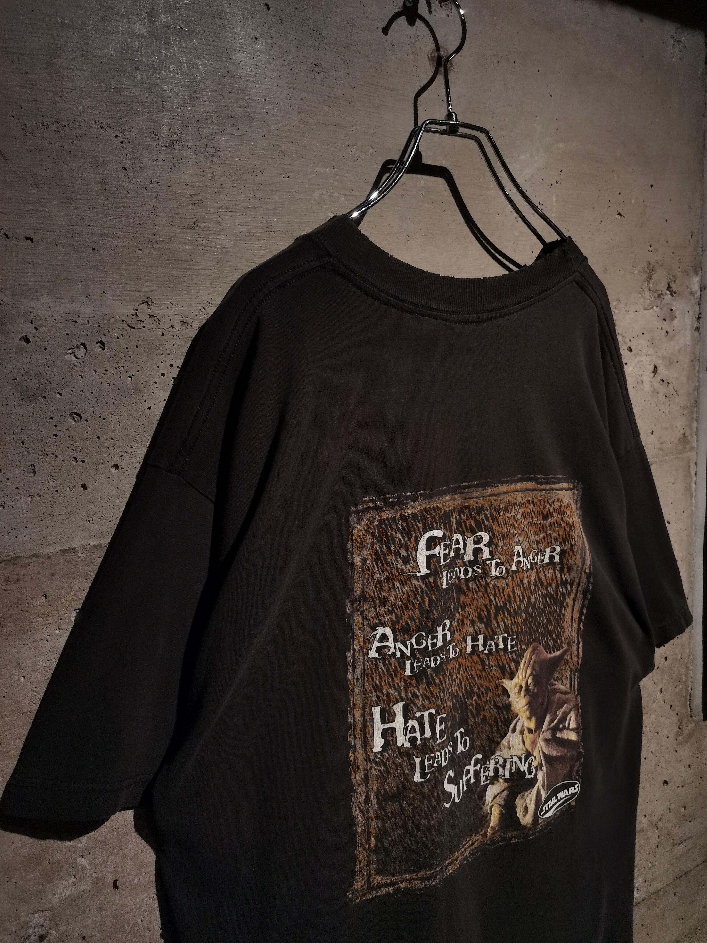 ヨーダがアナキン・スカイウォーカーに教えた、有名な教えである「恐れは怒りへ、怒りは憎しみへ、憎しみは苦痛へ」といった名言をプリントした前後共にGOODなデザイン。