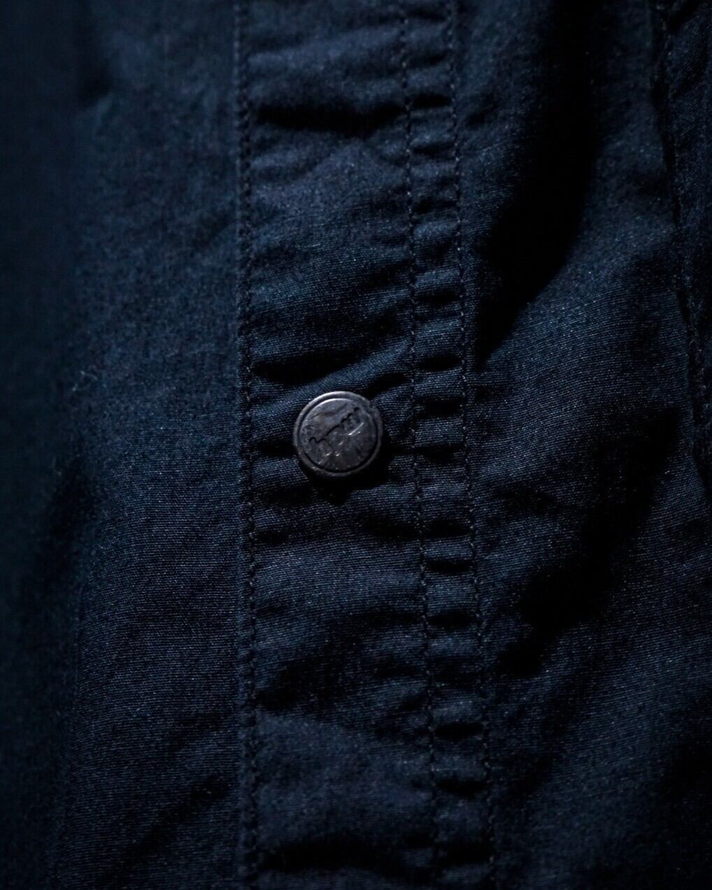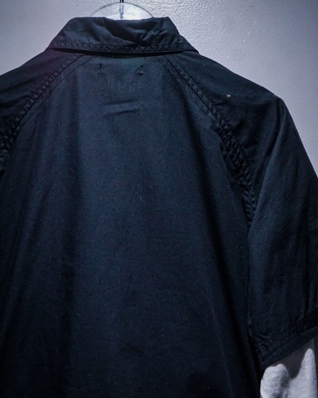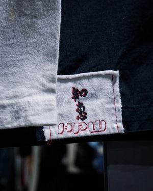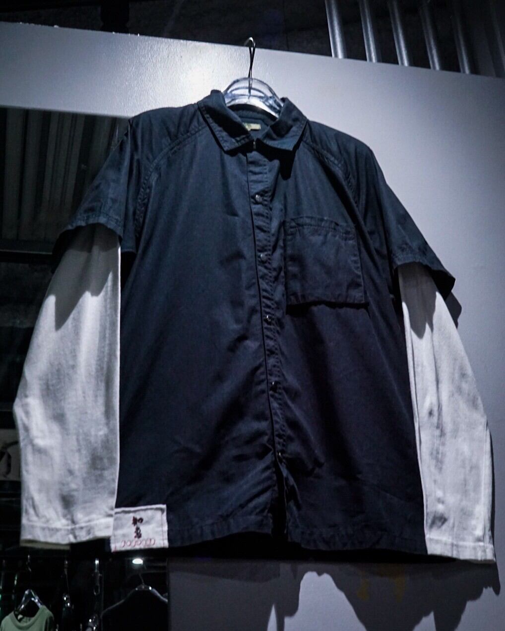 半袖シャツにロンTレイヤードといった、カルチャーを感じられるデザインが超洒落てる。右裾付近の漢字が載せられたブランドロゴワッペンのアクセントも◎