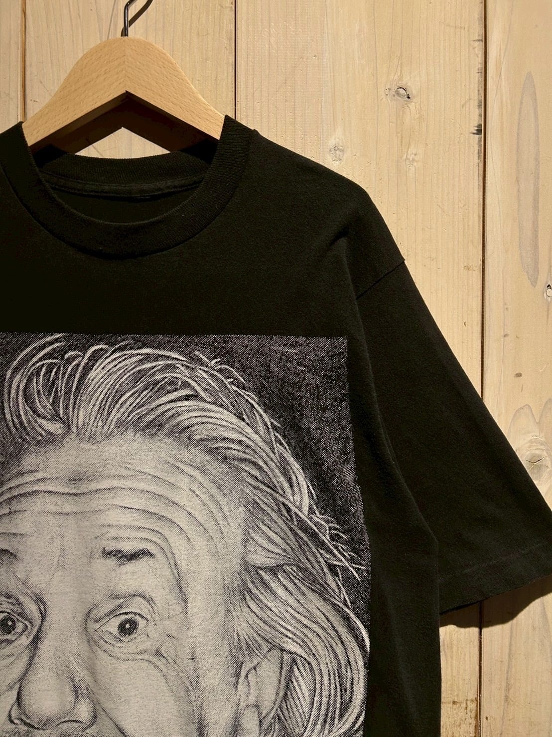 人物モノはヴィンテージTシャツでも人気所ですが、特にアインシュタインはお探しの方も多く、昨今高騰化も見られるジャンル。その中でもオーバーにプリントされたデザインが洒落てます。